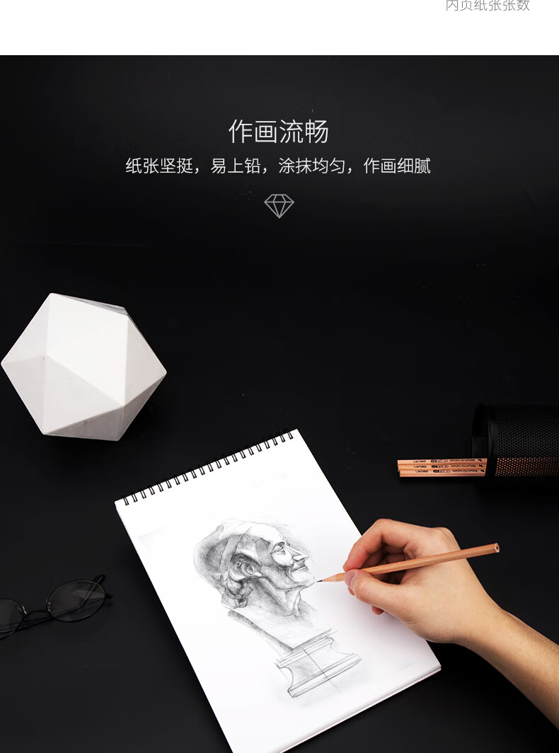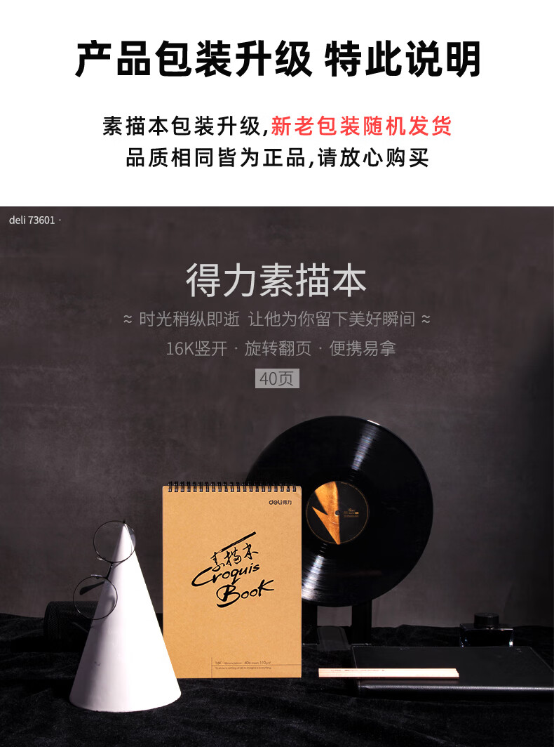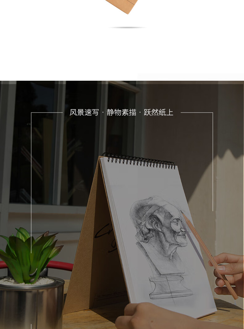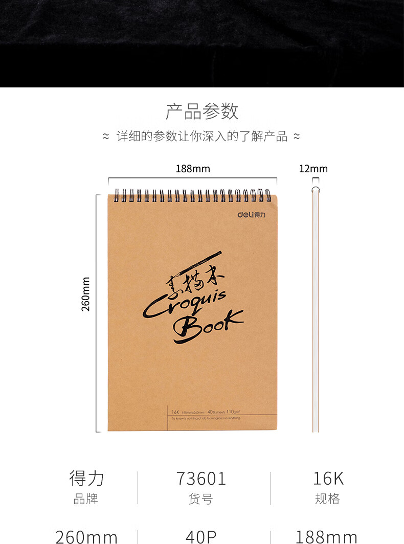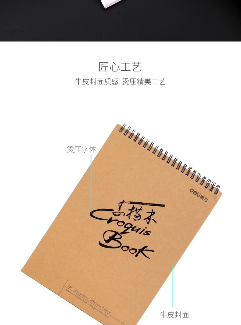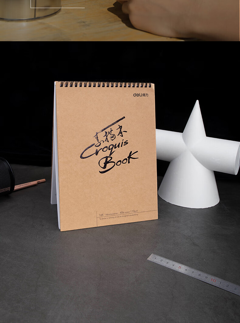 得力(deli)16K40张牛皮纸竖翻画材绘画可立美术专用本素描本竖翻空白绘画本73601-S