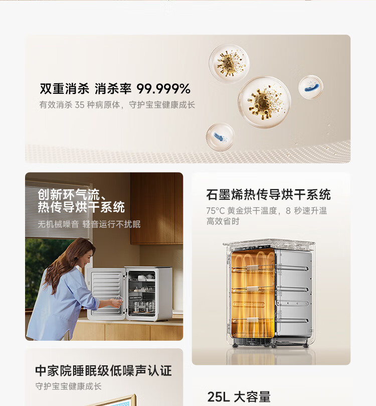 米家小米紫外线婴儿奶瓶消毒柜 25L【卧室静音】烘干消毒二合一