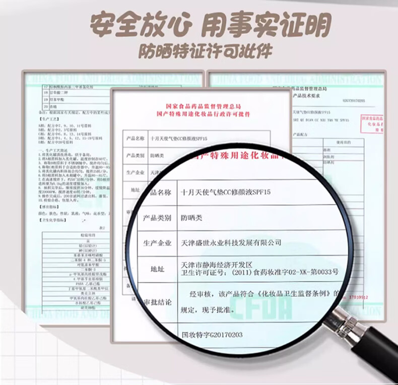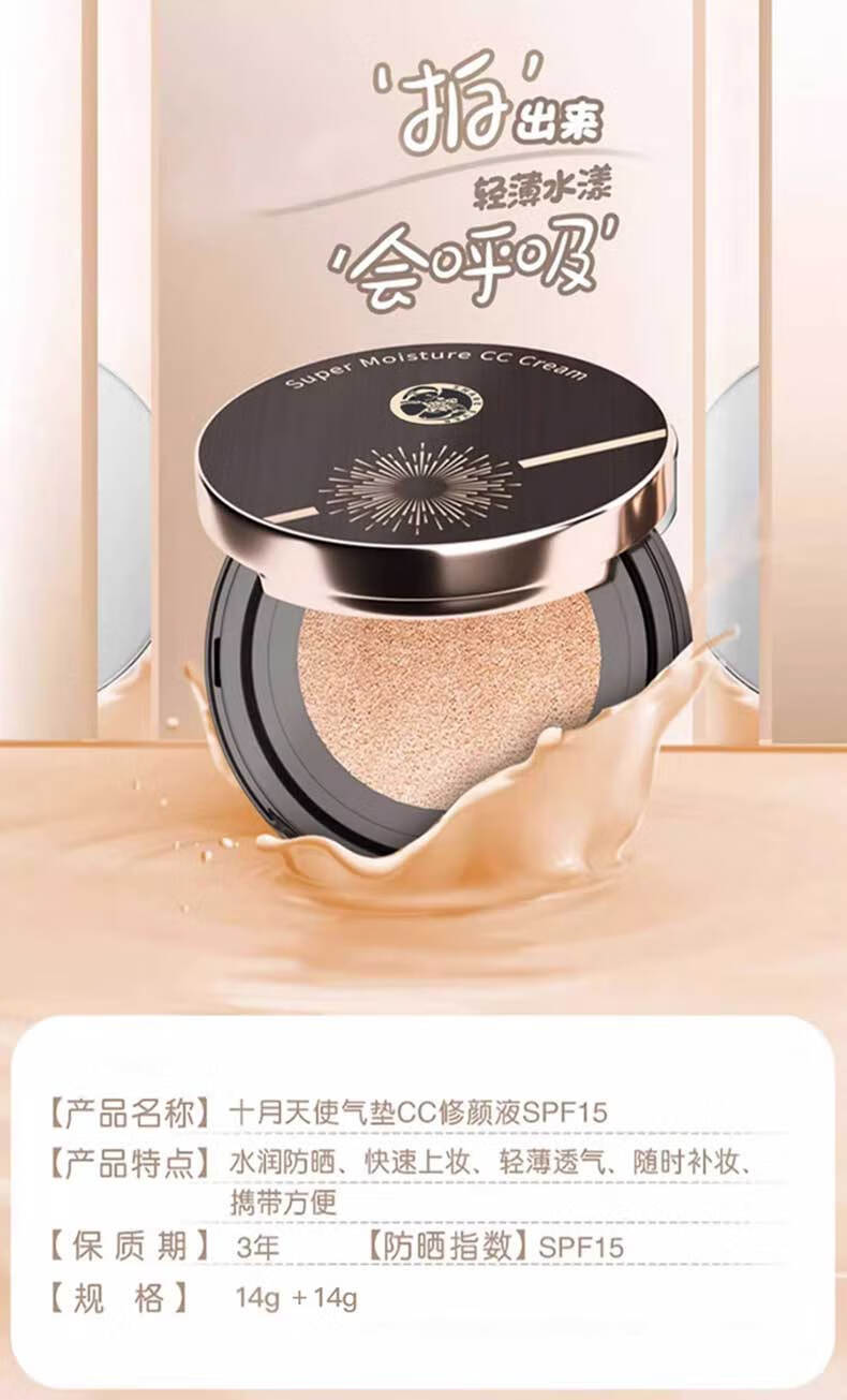 十月天使气垫cc防晒粉底气垫修颜液spf15水润遮瑕不脱妆备孕妇女化妆品