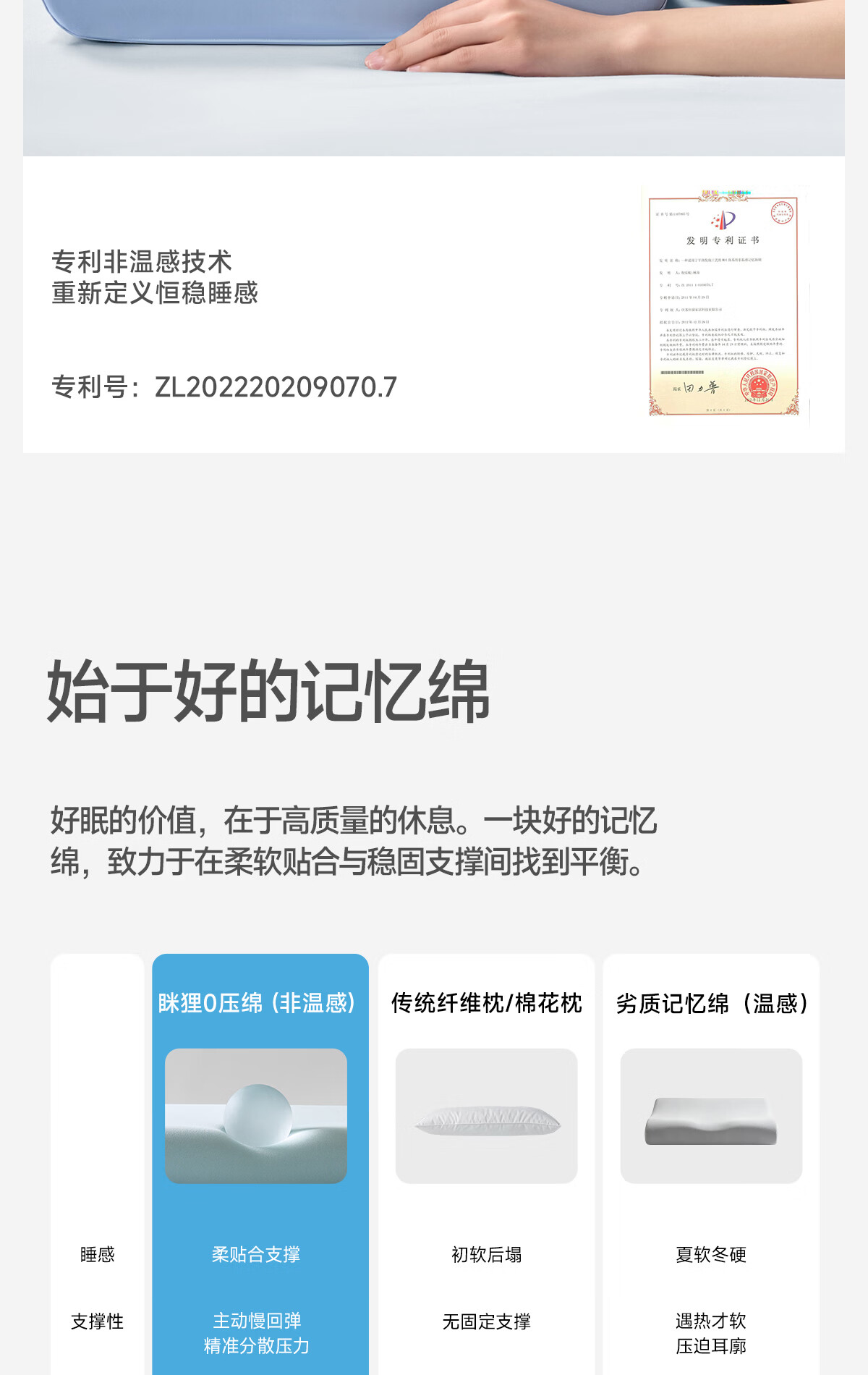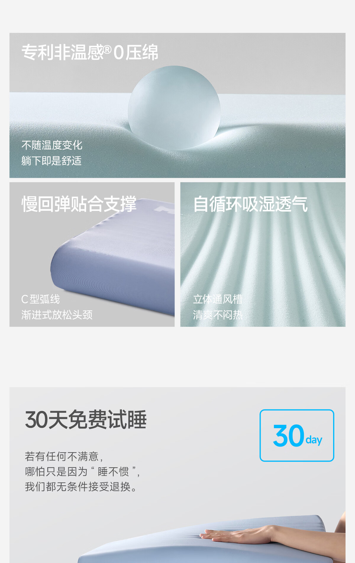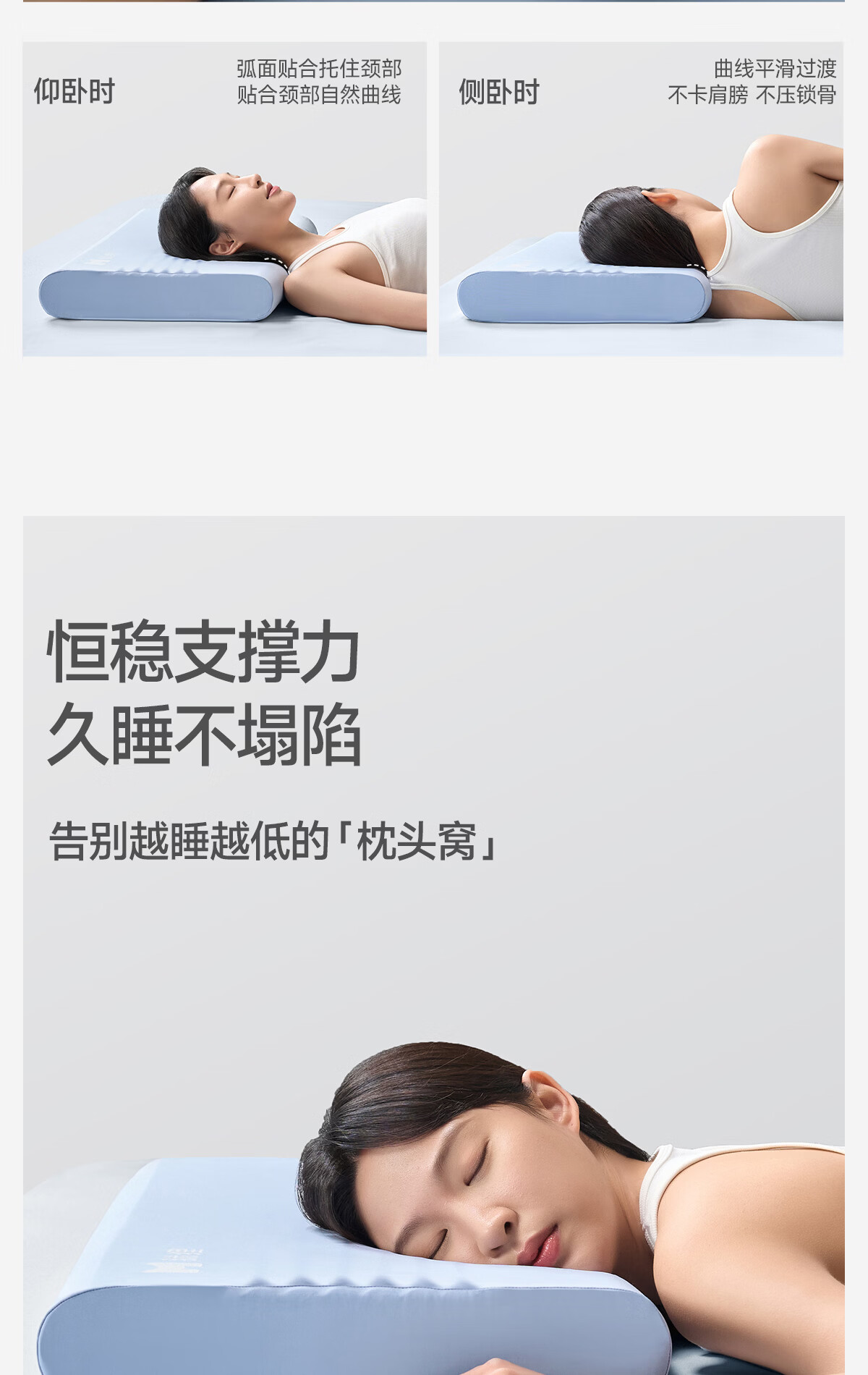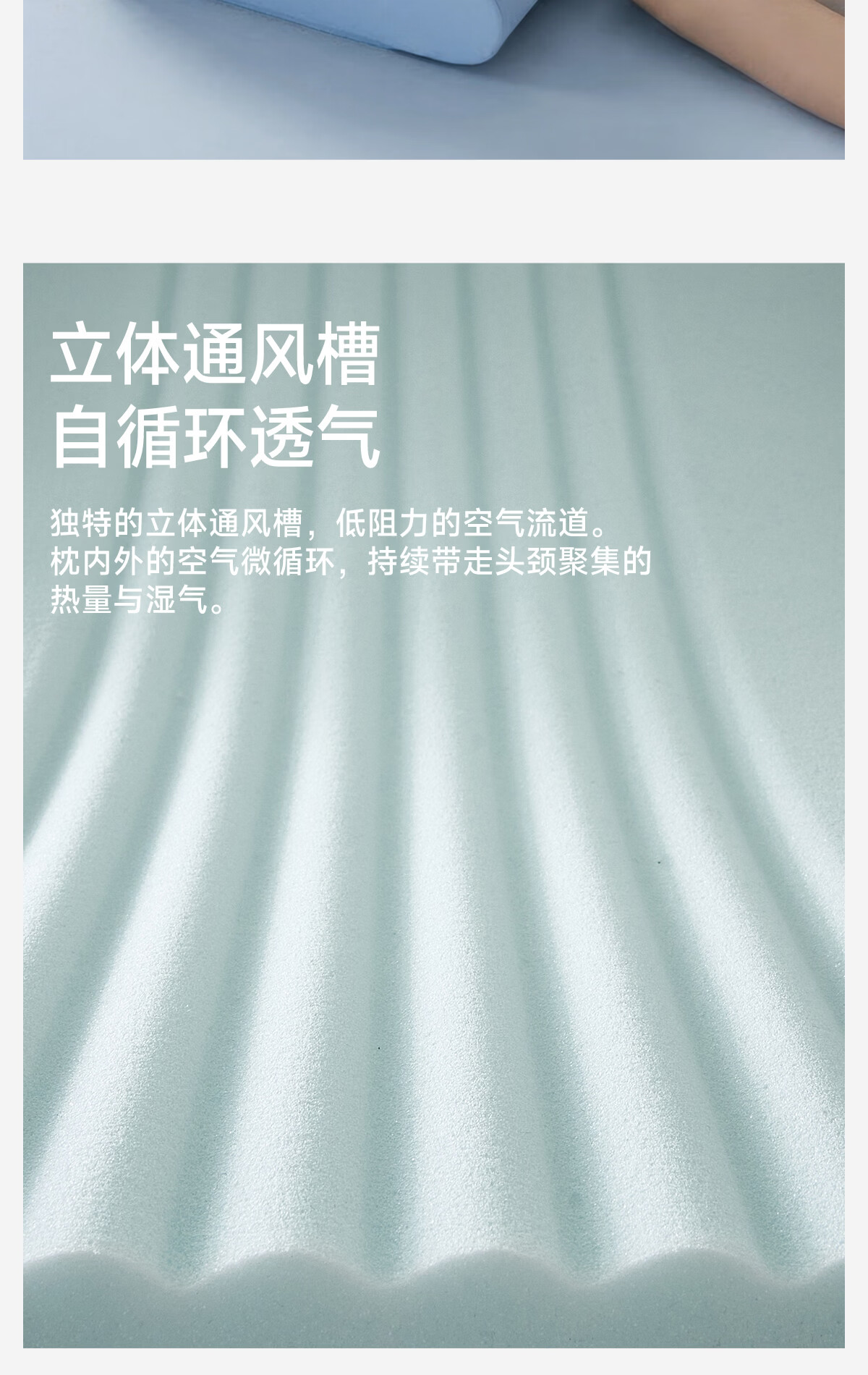 MLILY眯狸枕头护颈枕颈椎枕深度睡眠专用成人学生宿舍记忆棉枕家用枕芯 冰沁蓝 A类 单只 60*40*8cm