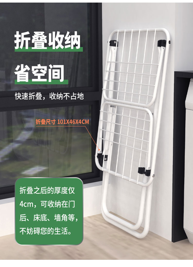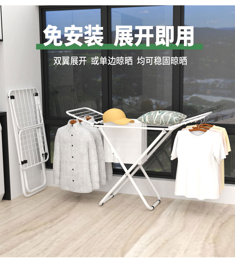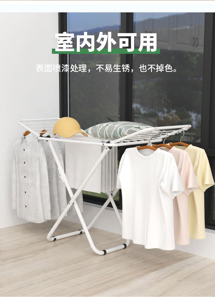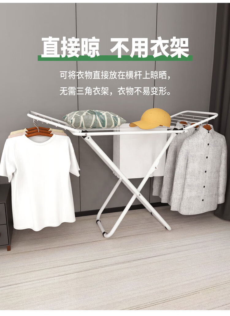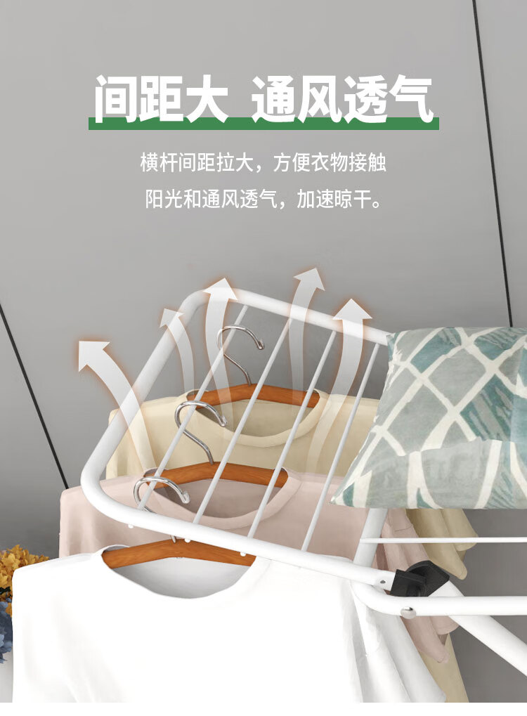 欧润哲 晾衣架落地阳台折叠晒衣架晒被架INS风晾衣杆 白色121cm