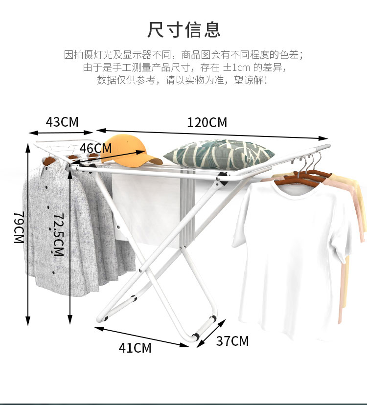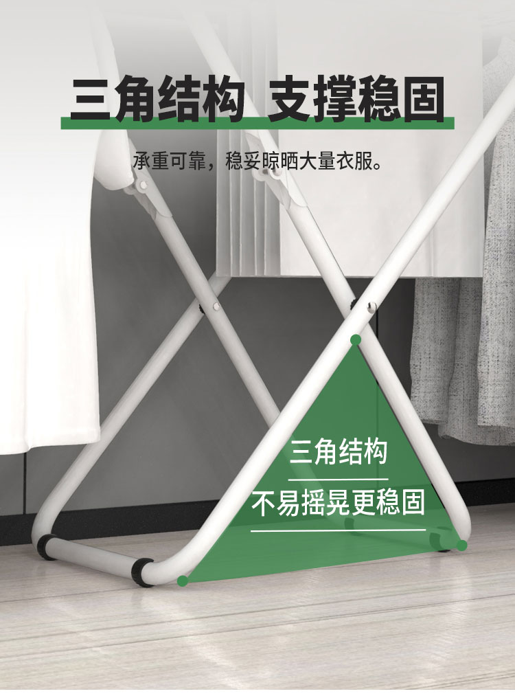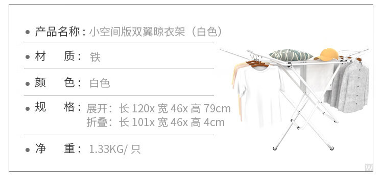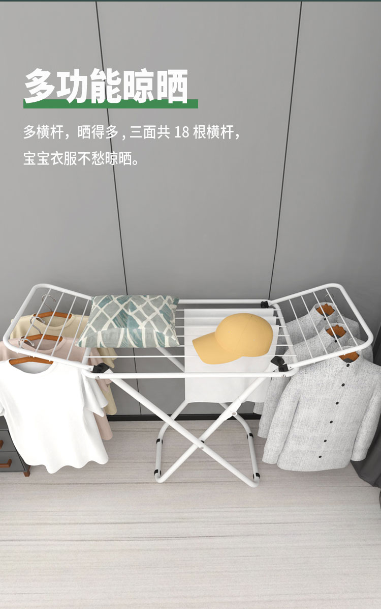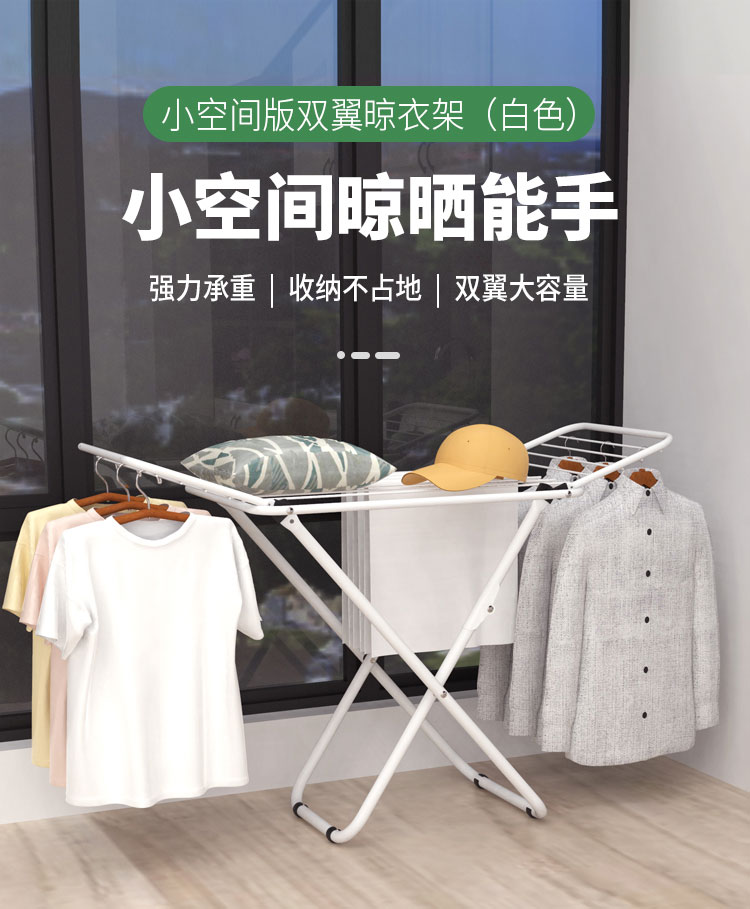 欧润哲 晾衣架落地阳台折叠晒衣架晒被架INS风晾衣杆 白色121cm