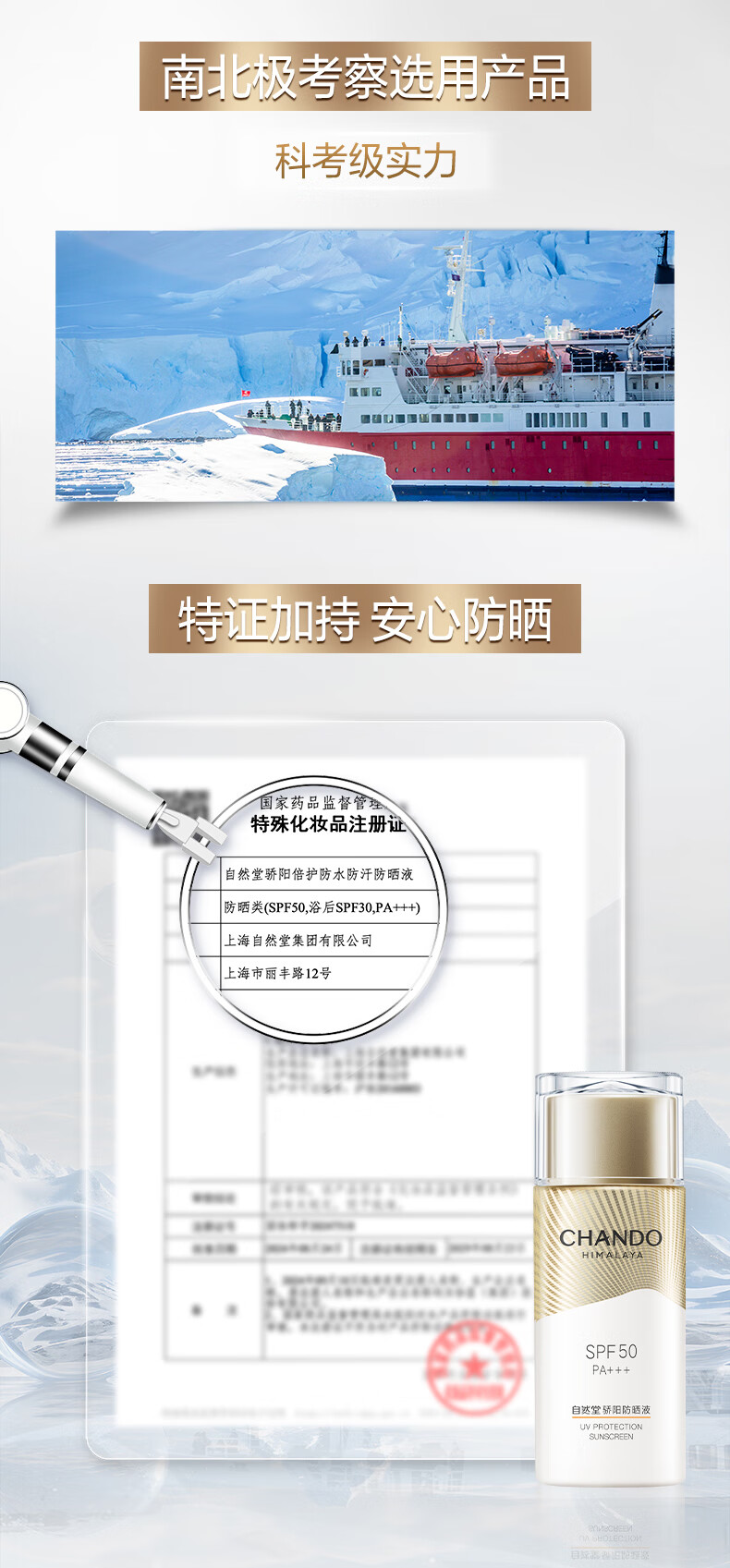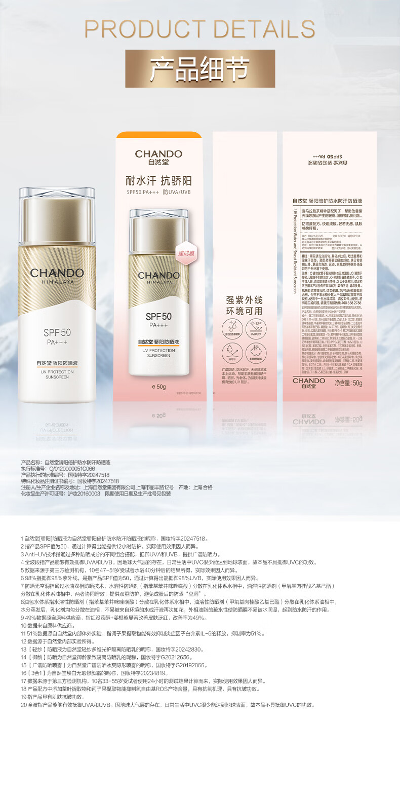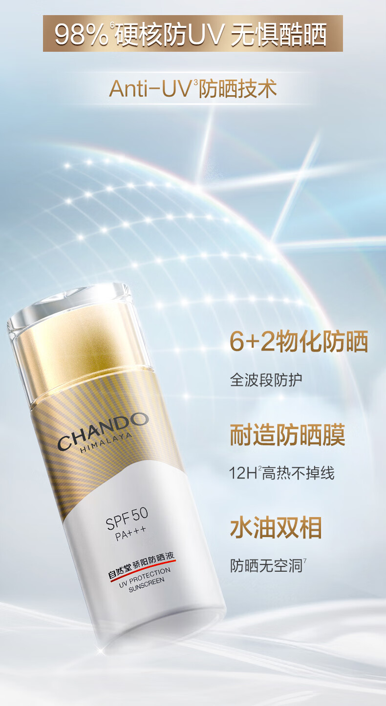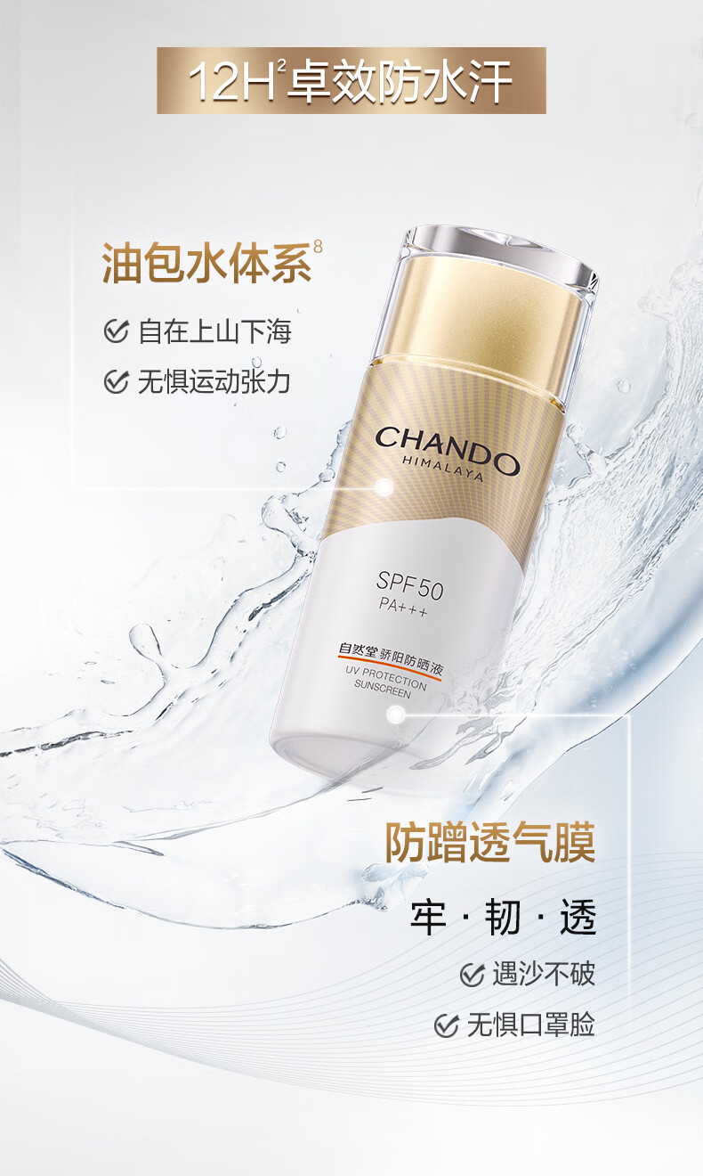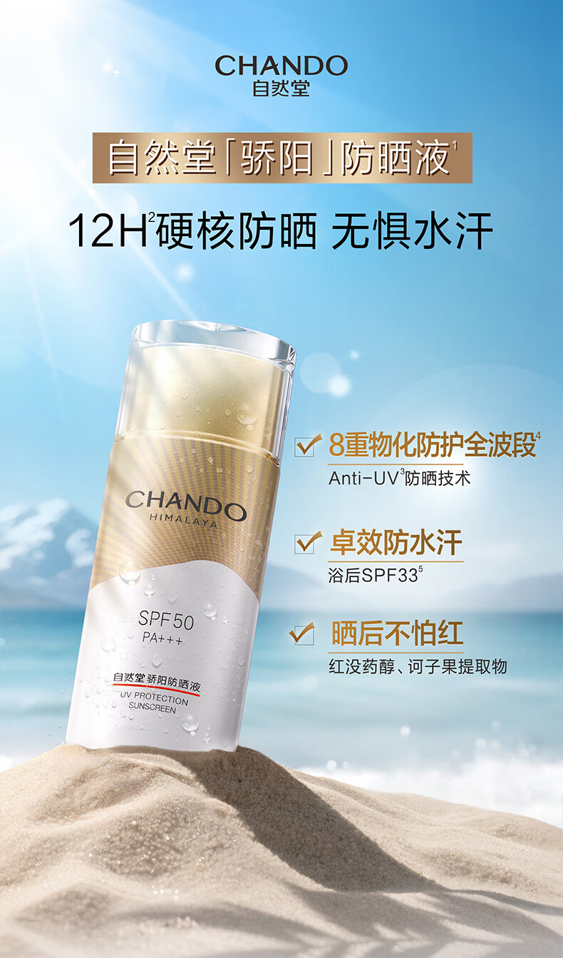 自然堂【常华森同款】骄阳倍护防水防汗防晒液SPF50 PA+++生日礼物