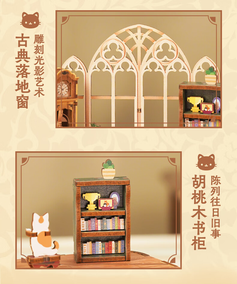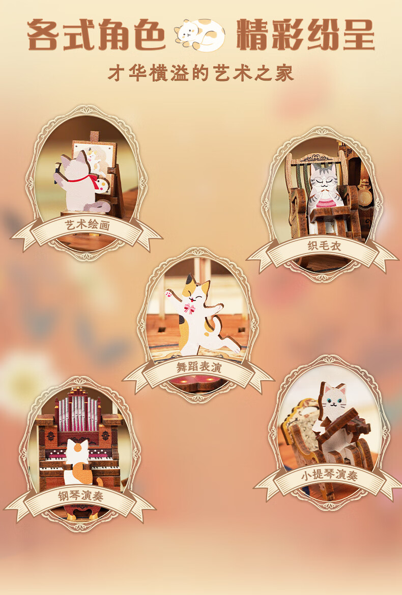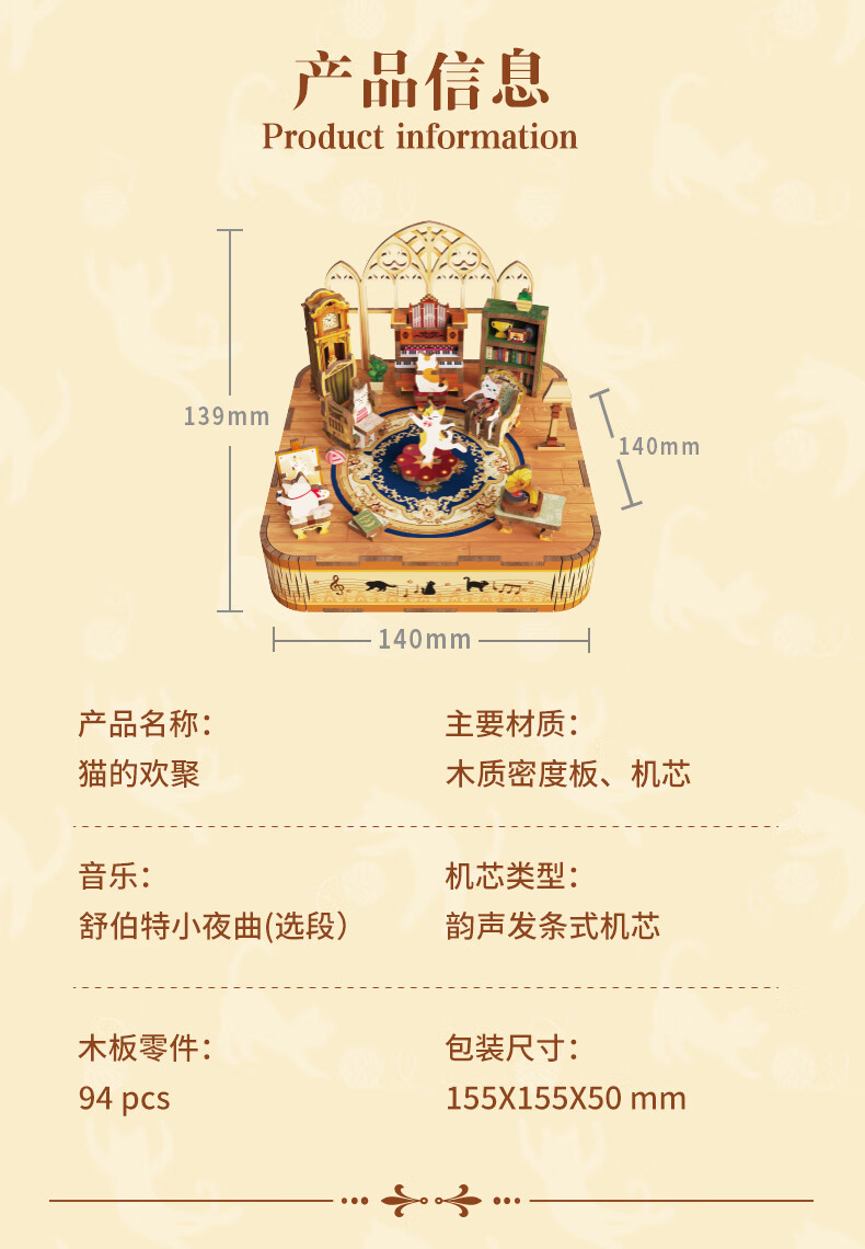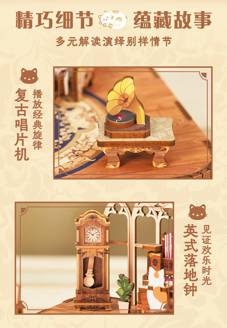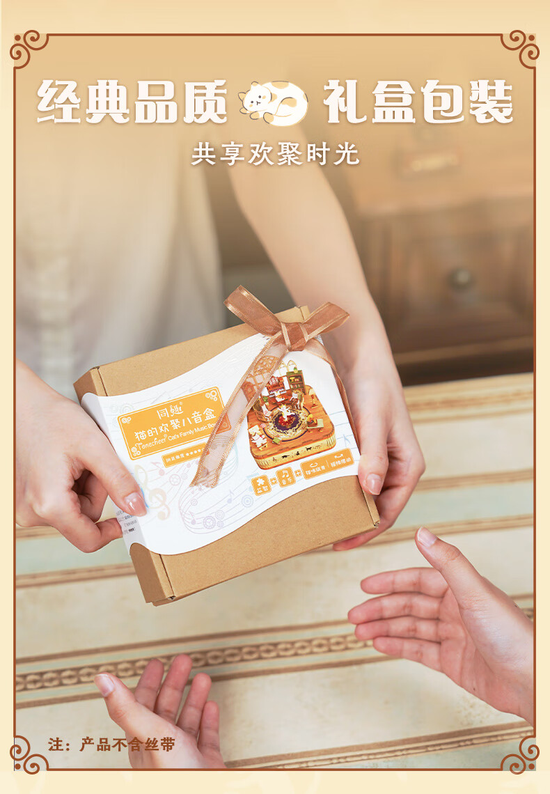 同趣猫的欢聚拼装八音盒旋转积木玩具木质拼图手工立体摆件生日礼物女