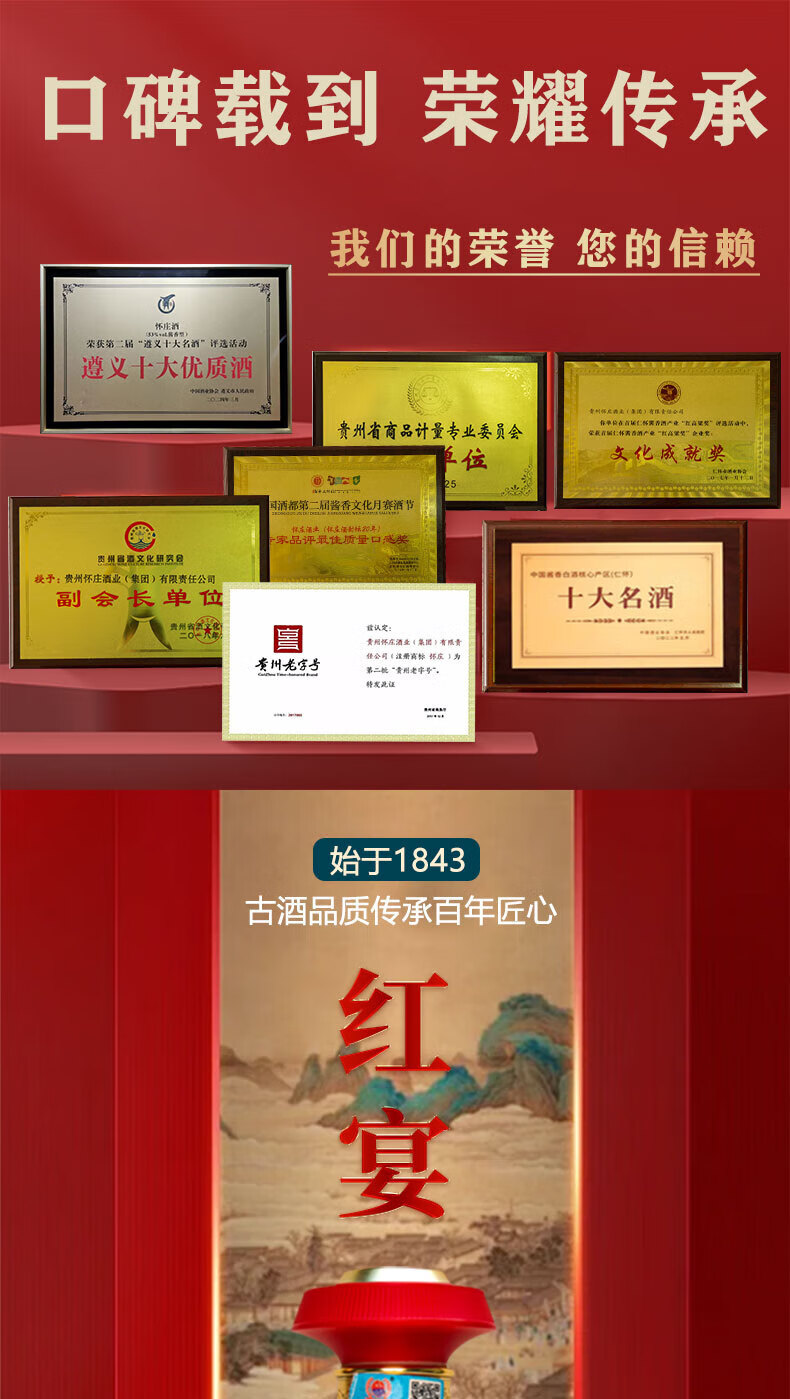 怀庄1983【官方正品】怀庄酱香型白酒节日送礼商务宴请聚会自饮收藏整箱装 53度 450mL 6瓶 传承工匠20-红