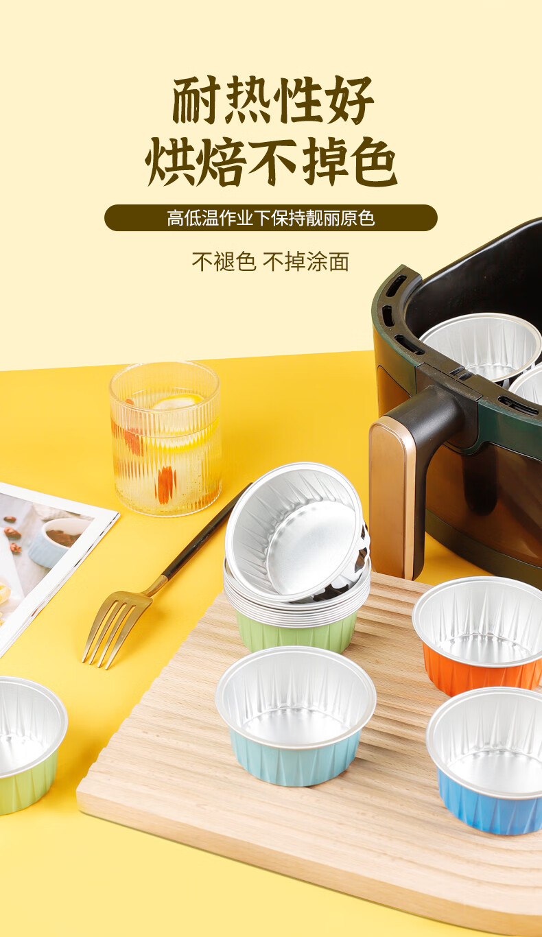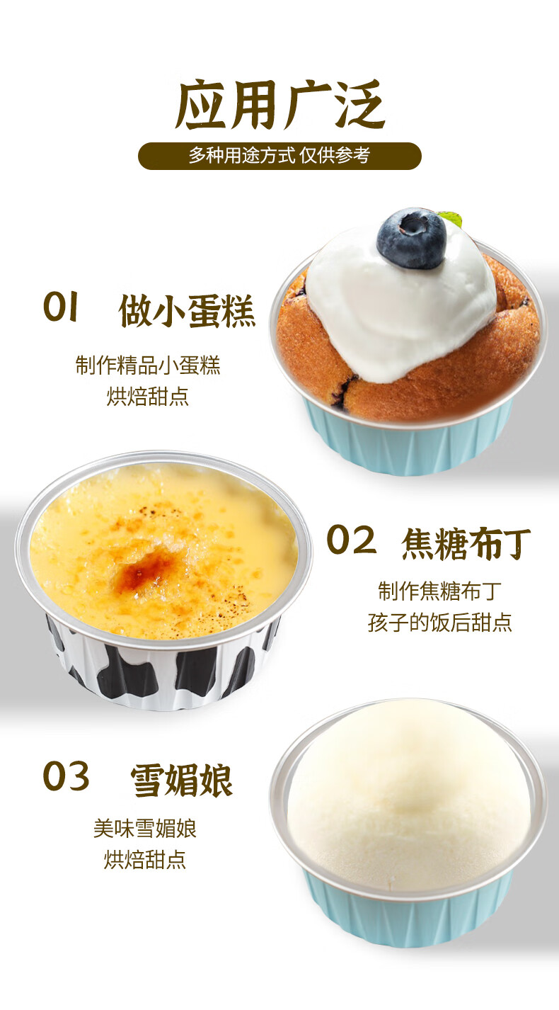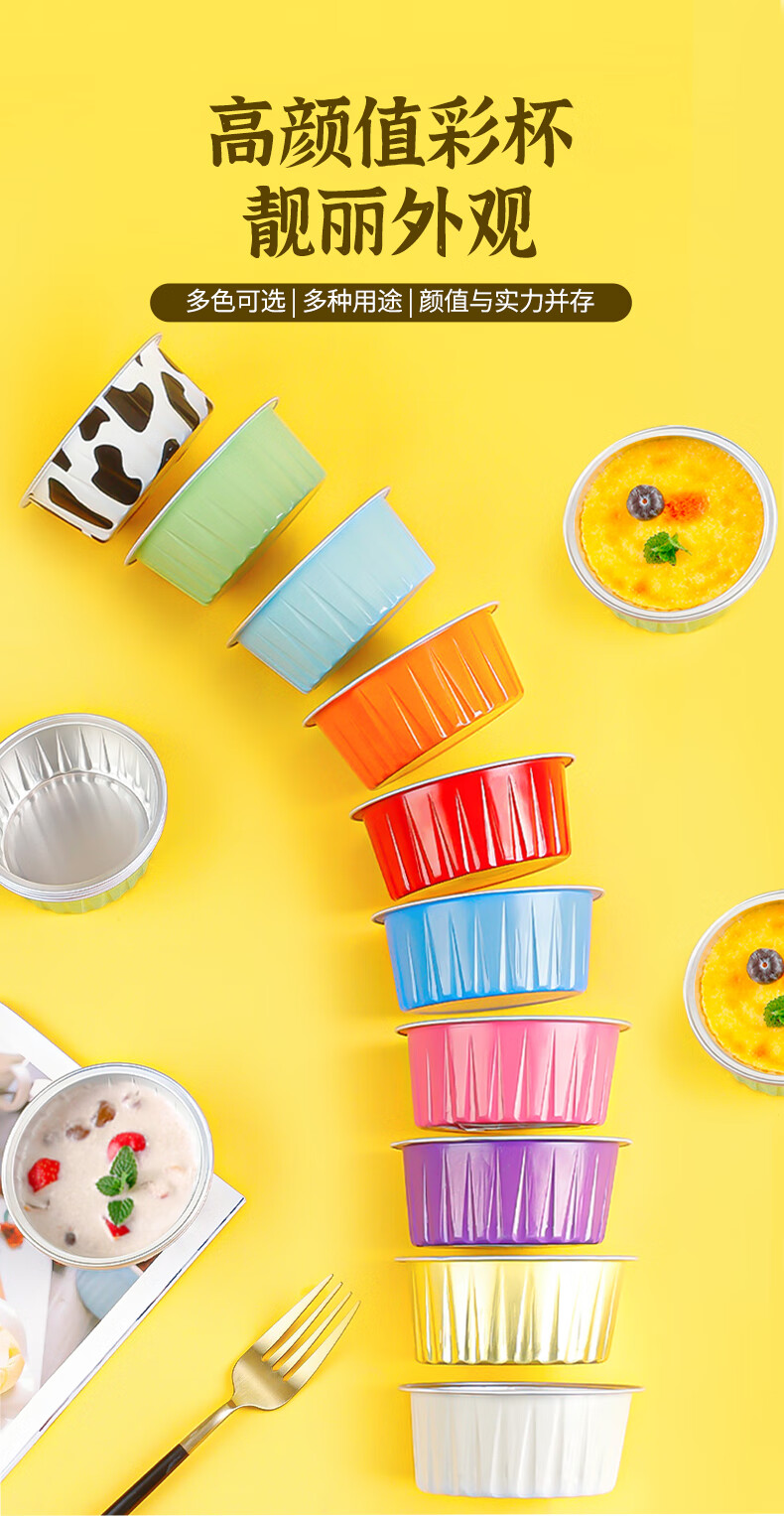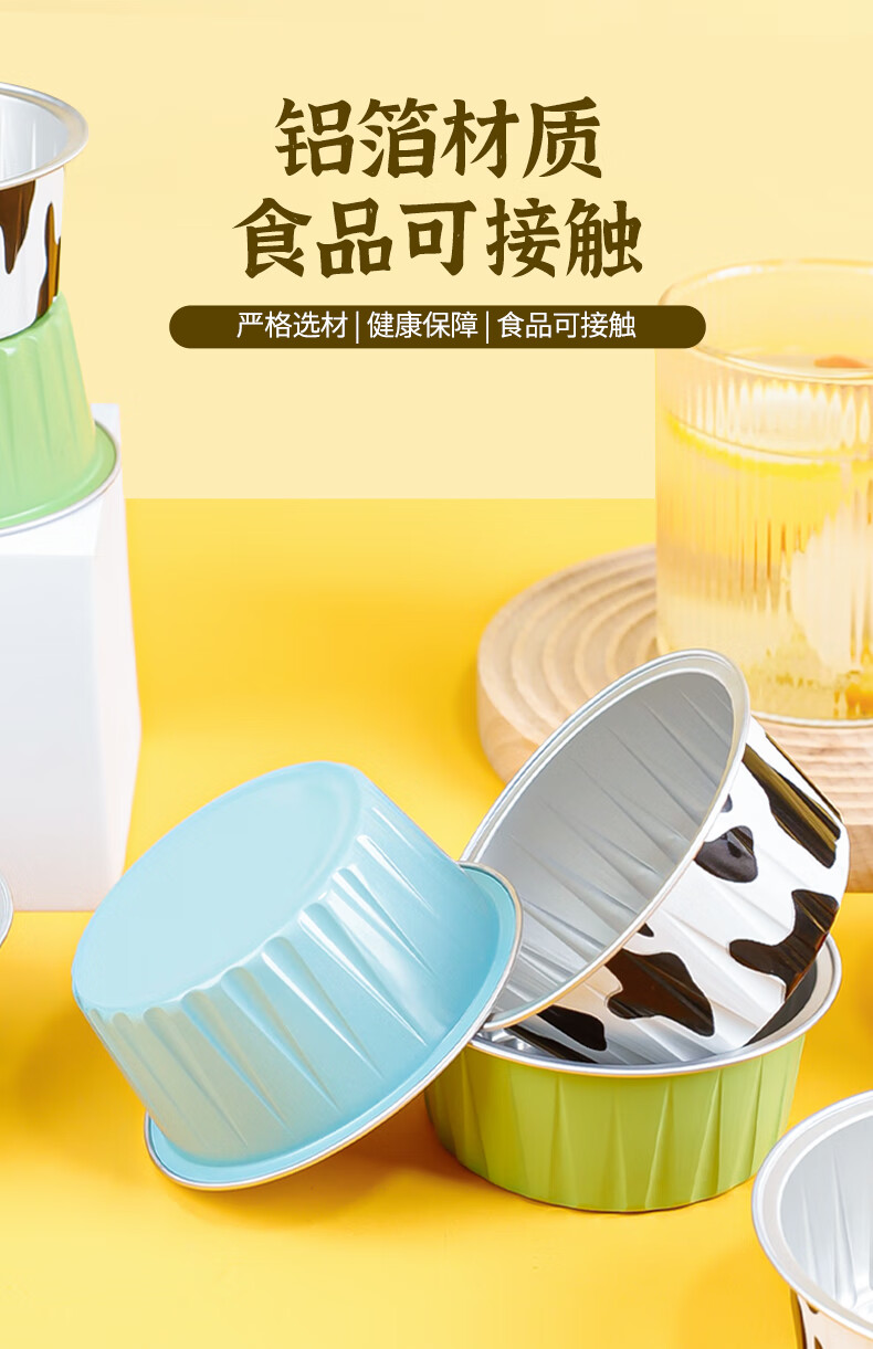 箔洱特锡纸碗空气炸锅专用布丁杯蛋糕虾扯蛋模具蛋糕空气炸锅专用锡纸盒 20只浅蓝色/130ml【含盖勺】
