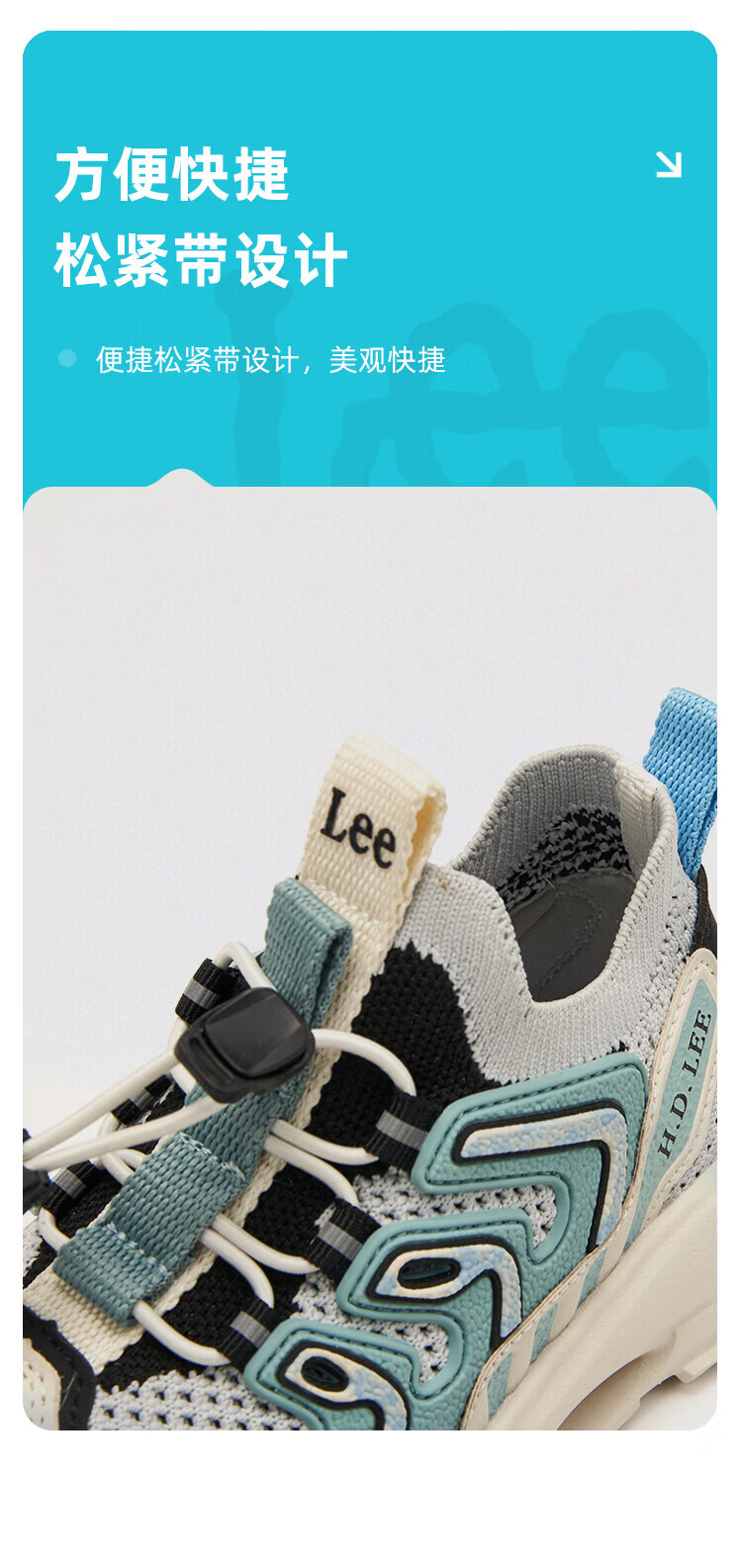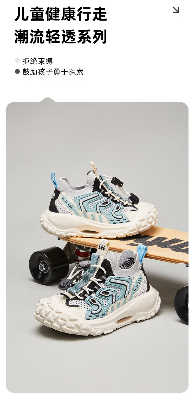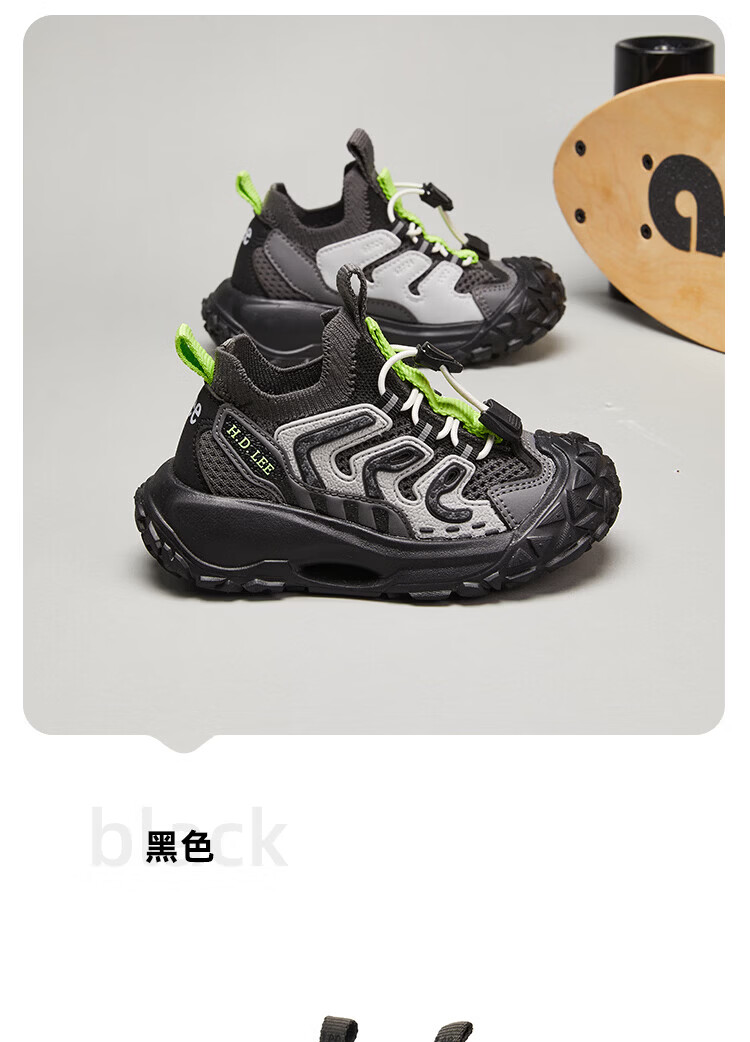 Lee童鞋春夏季新款儿童运动鞋椰子鞋男童休闲跑步鞋女大童 黑色 36 【建议脚长223-228mm】
