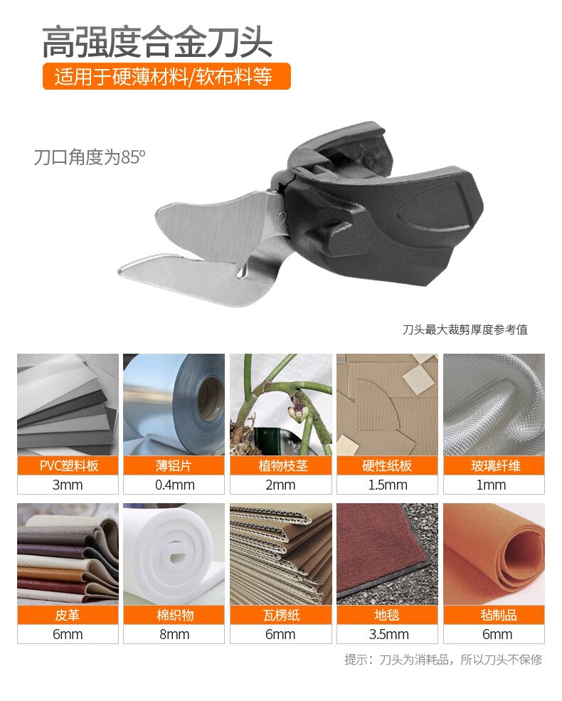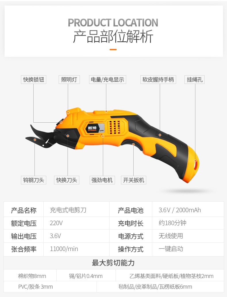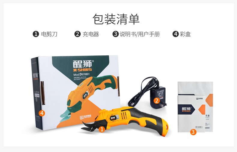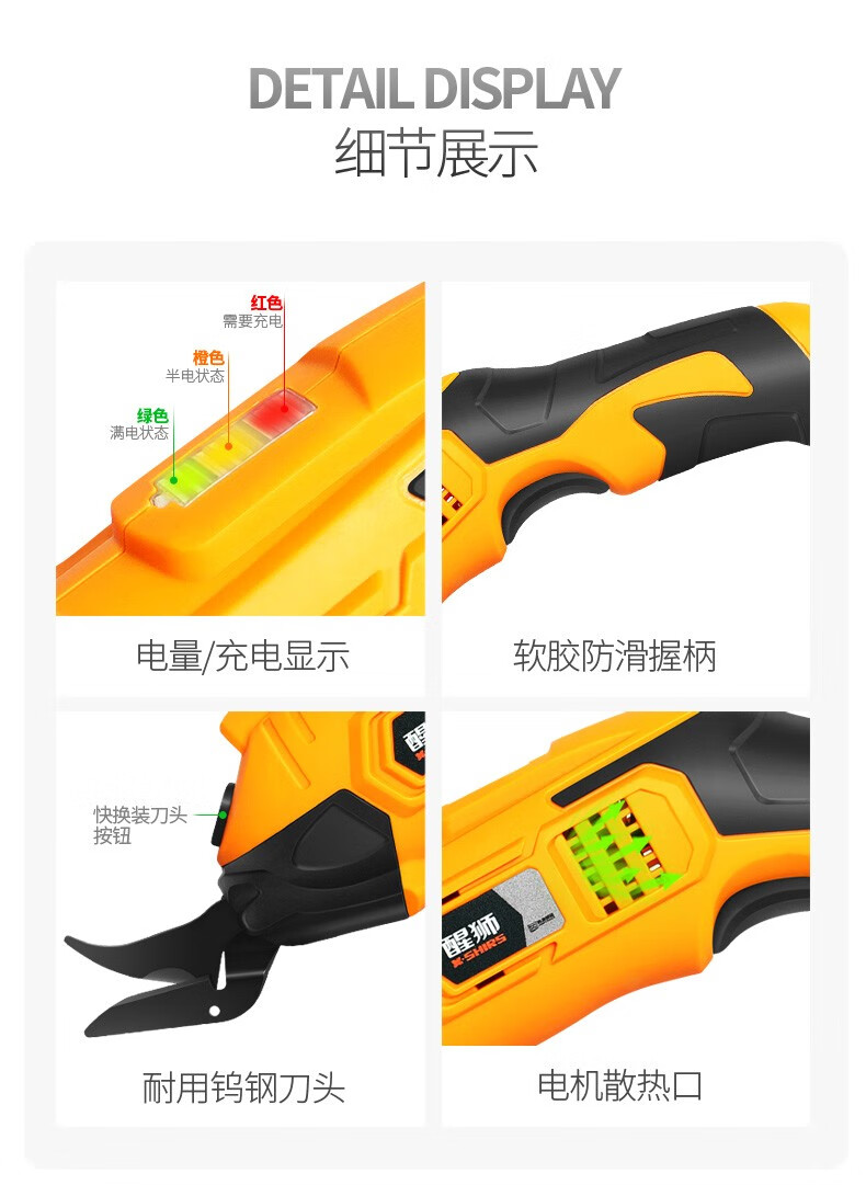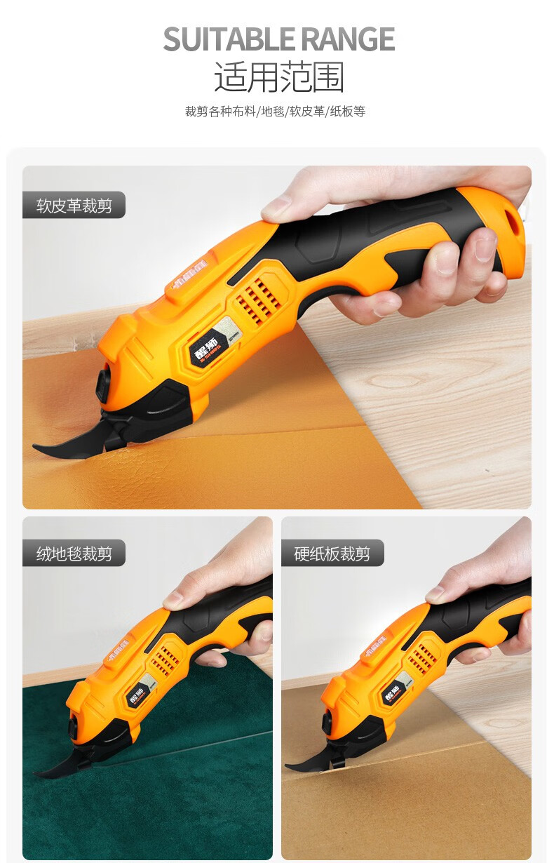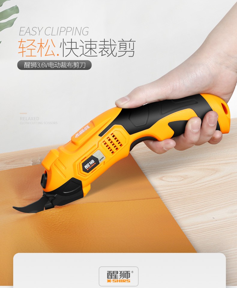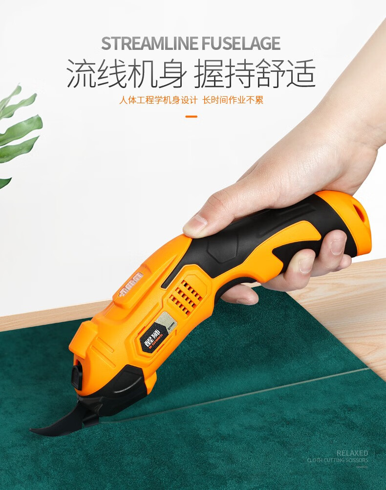 醒狮电动剪刀裁布神器手持式裁剪刀服装地毯皮革布料小型切布机电剪子 充电款-钨钢刀头两个