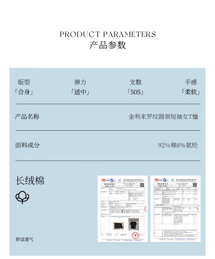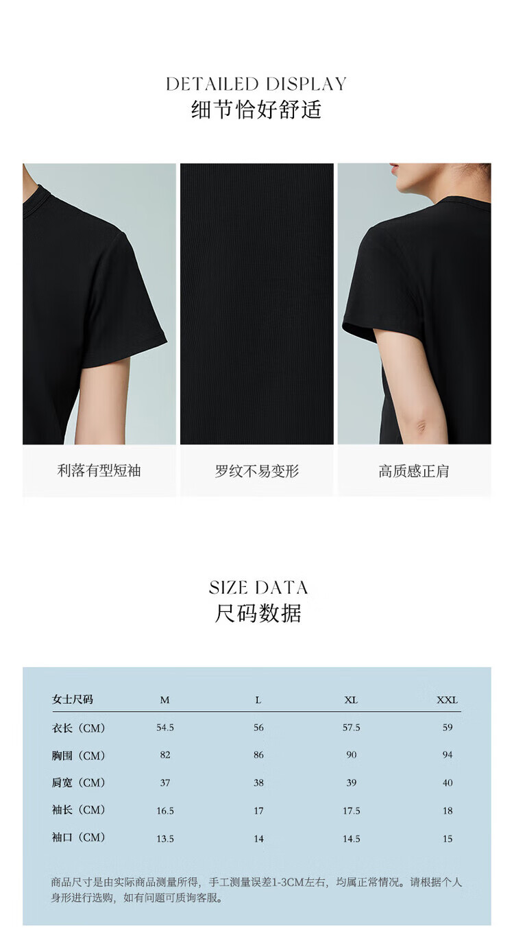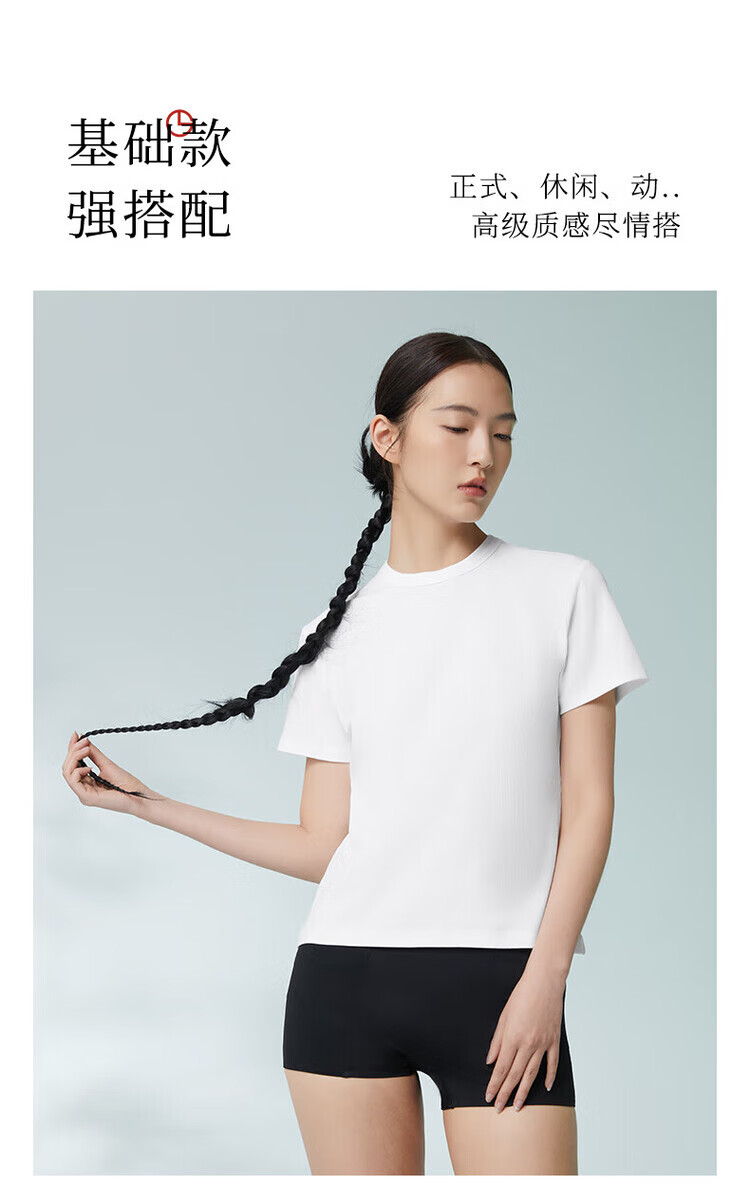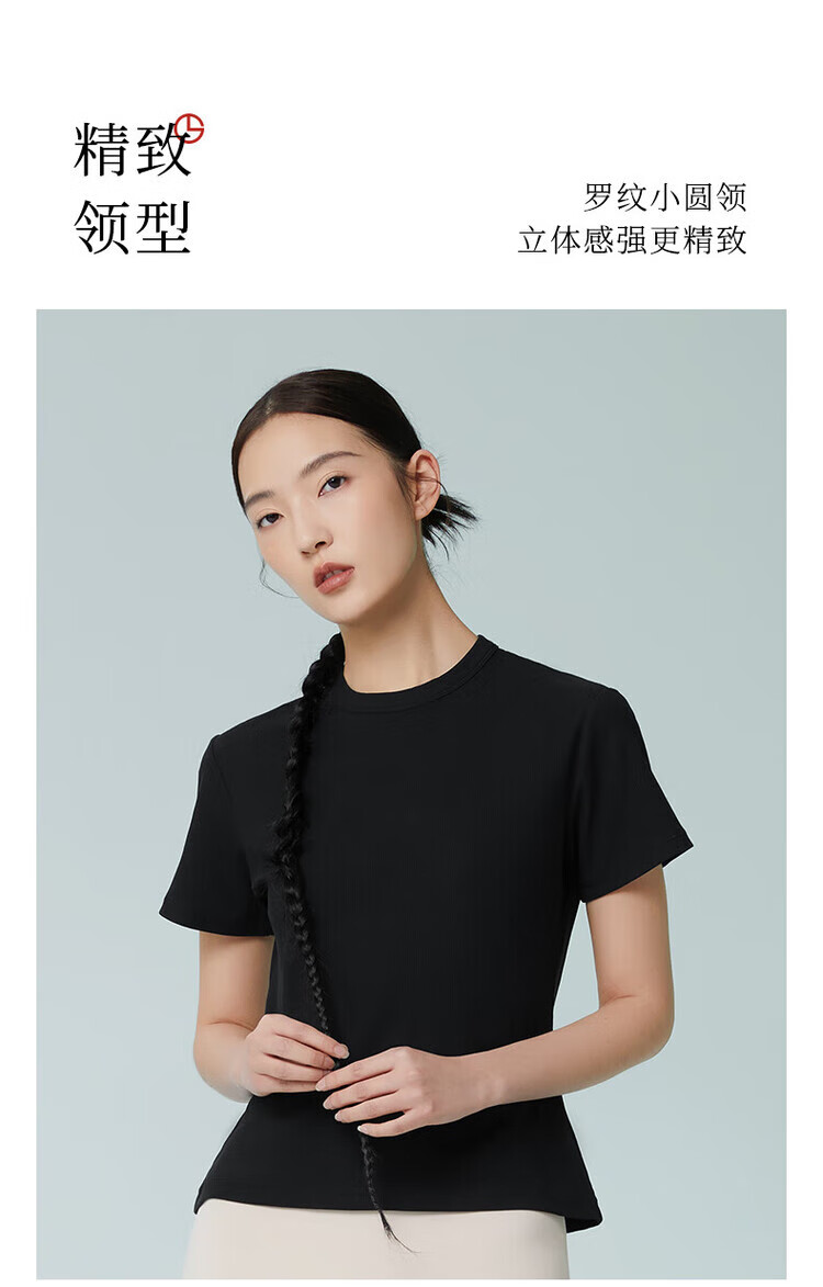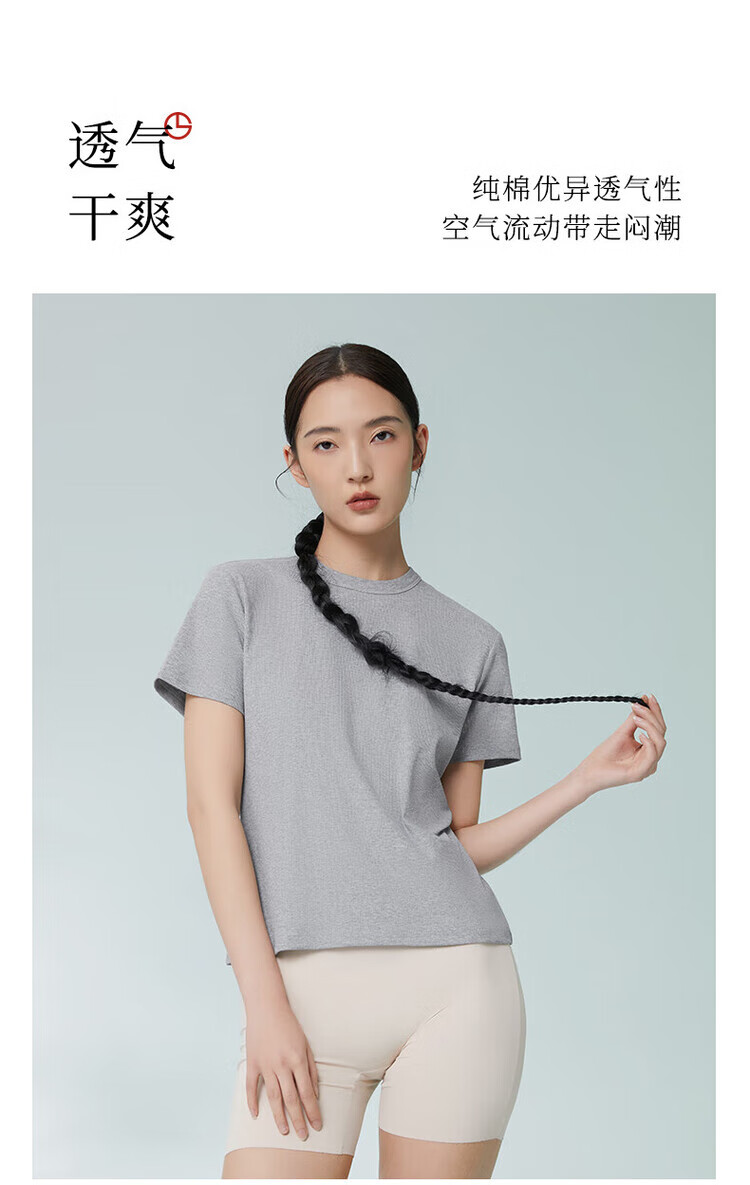 金利来(Goldlion)女士T恤女夏季长绒棉短袖舒适透气修身显瘦百搭罗纹打底衫纯色 花灰色 M (160) 建议拍大一码