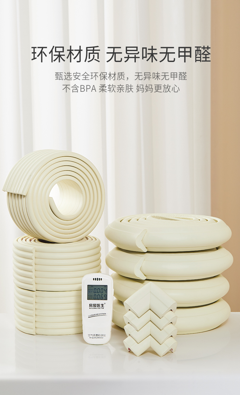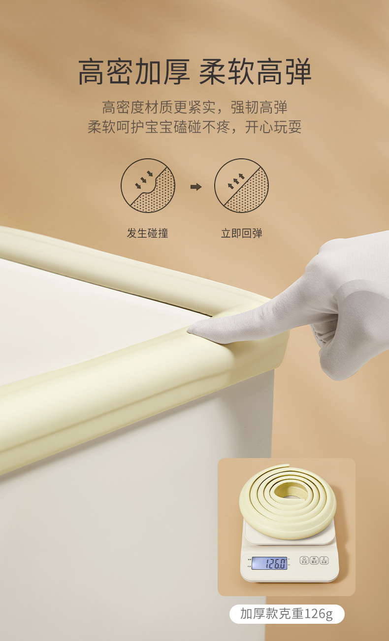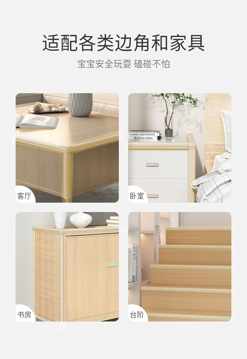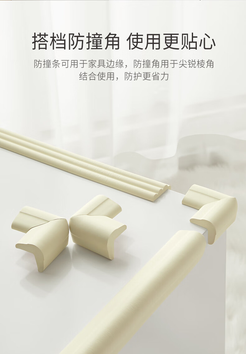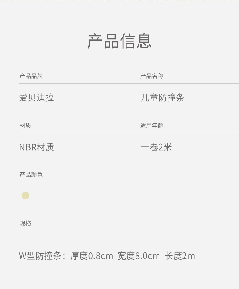 爱贝迪拉(AIBEDILA)防撞条儿童墙边安全防护贴W型3m胶免贴桌角防护器加厚4米杏仁黄