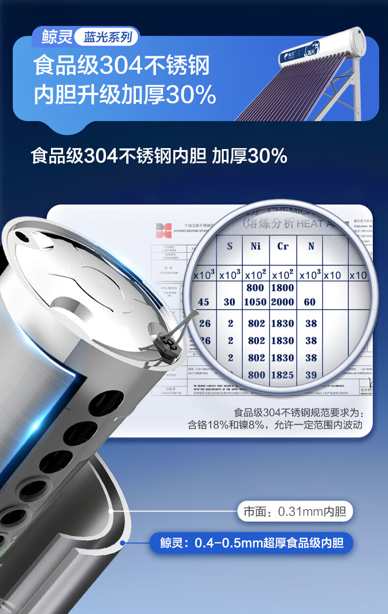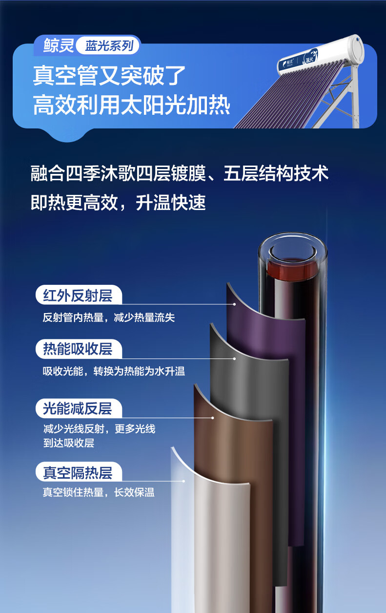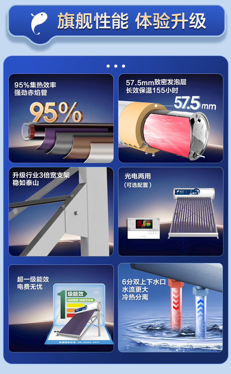 四季沐歌太阳能热水器国补 家用全自动 双上下水口 一级能效 电加热防冻 以旧换新18管140L 送货+安装