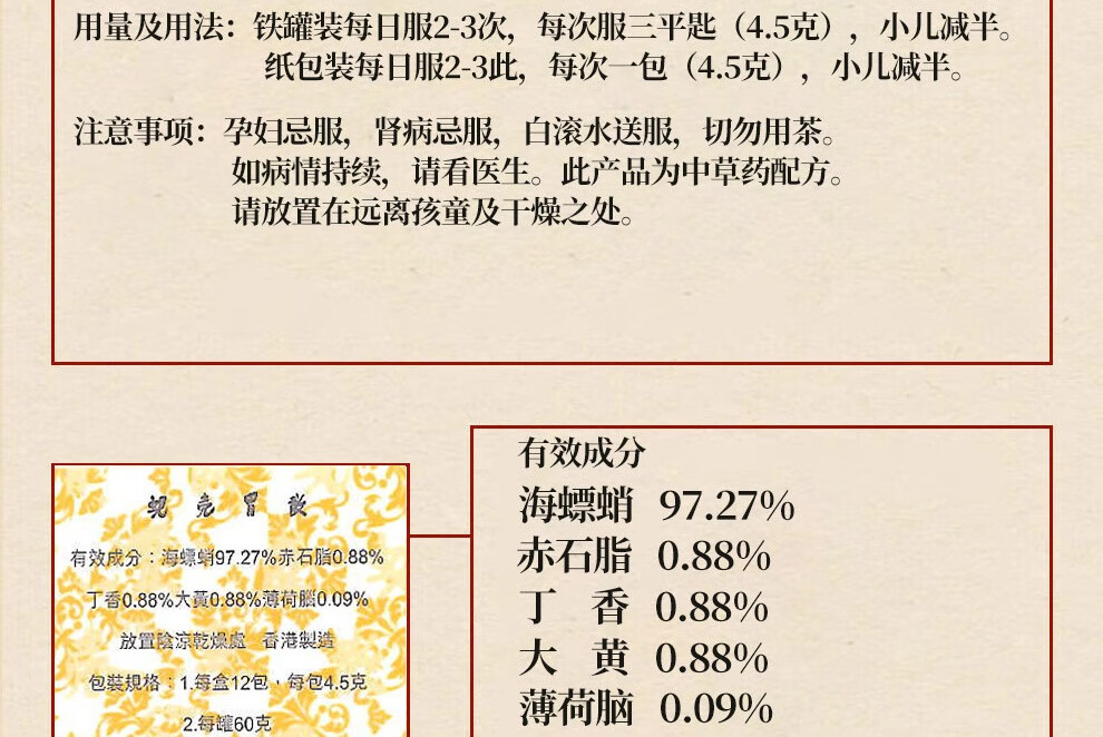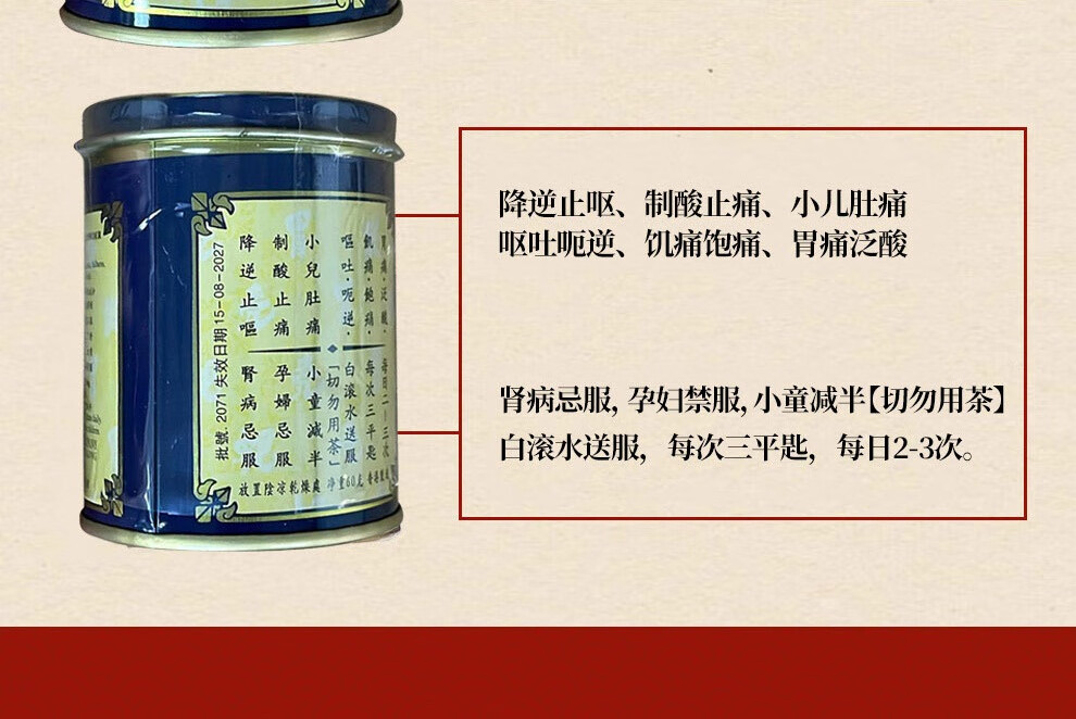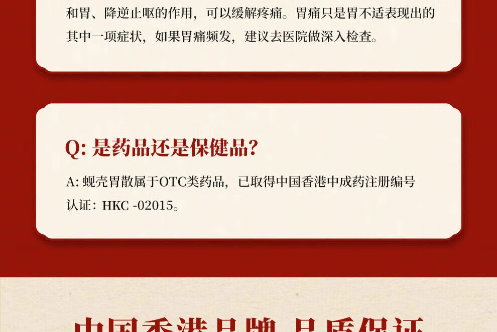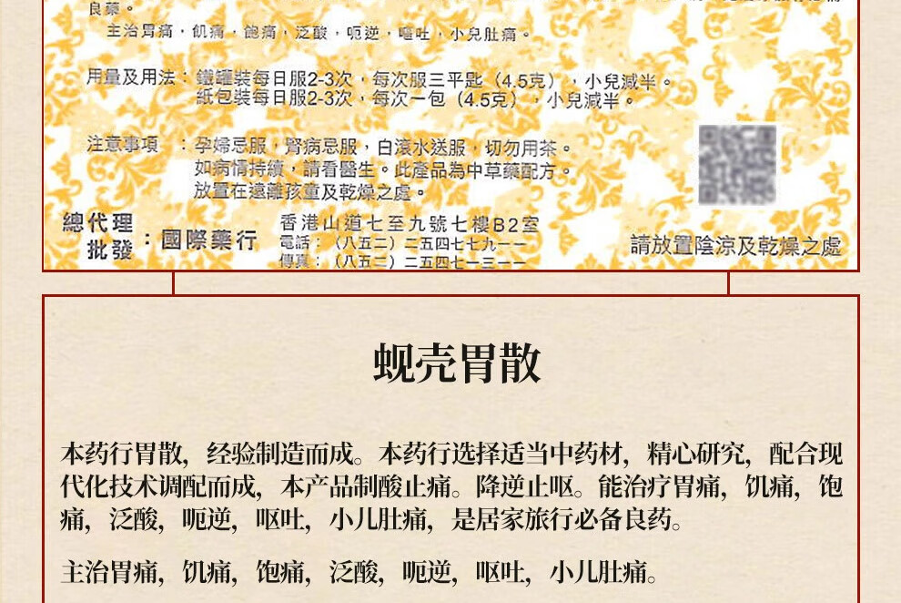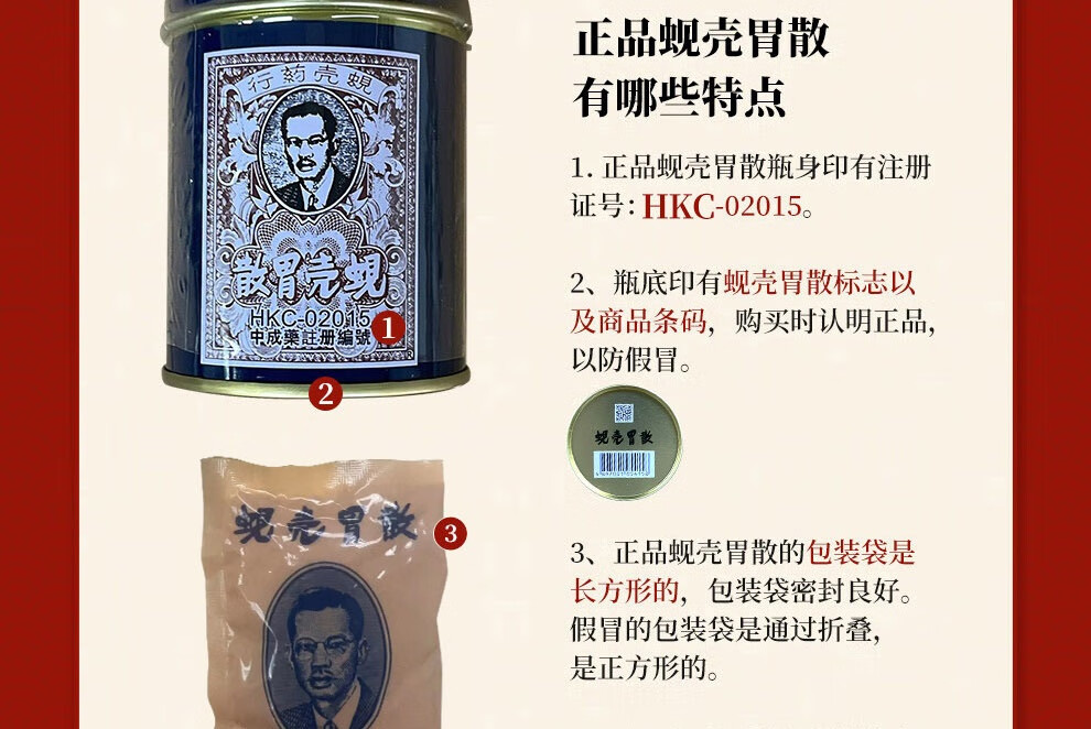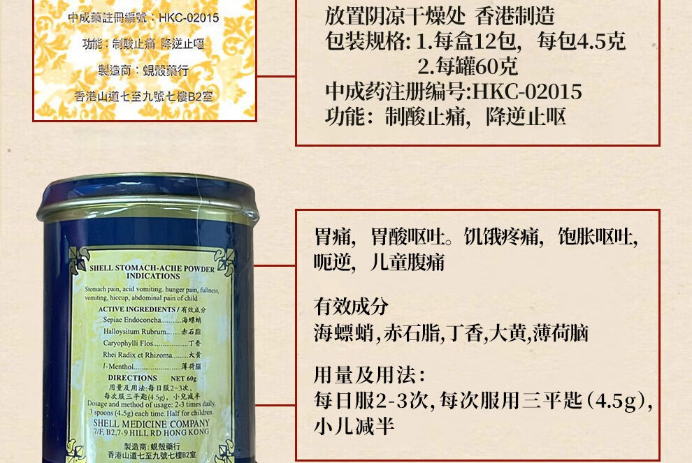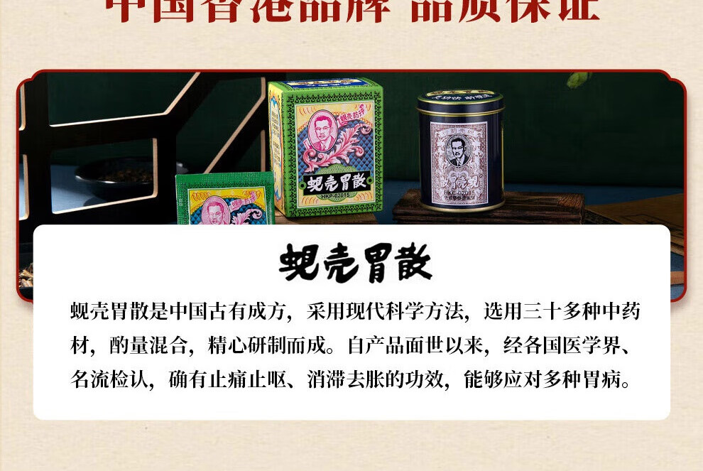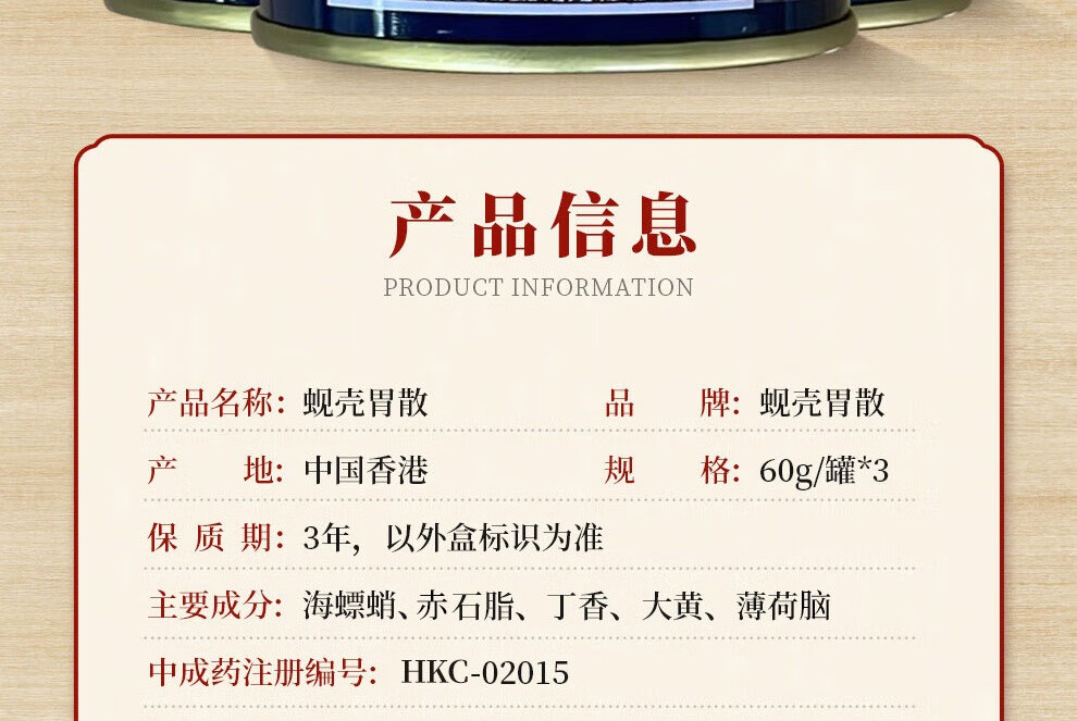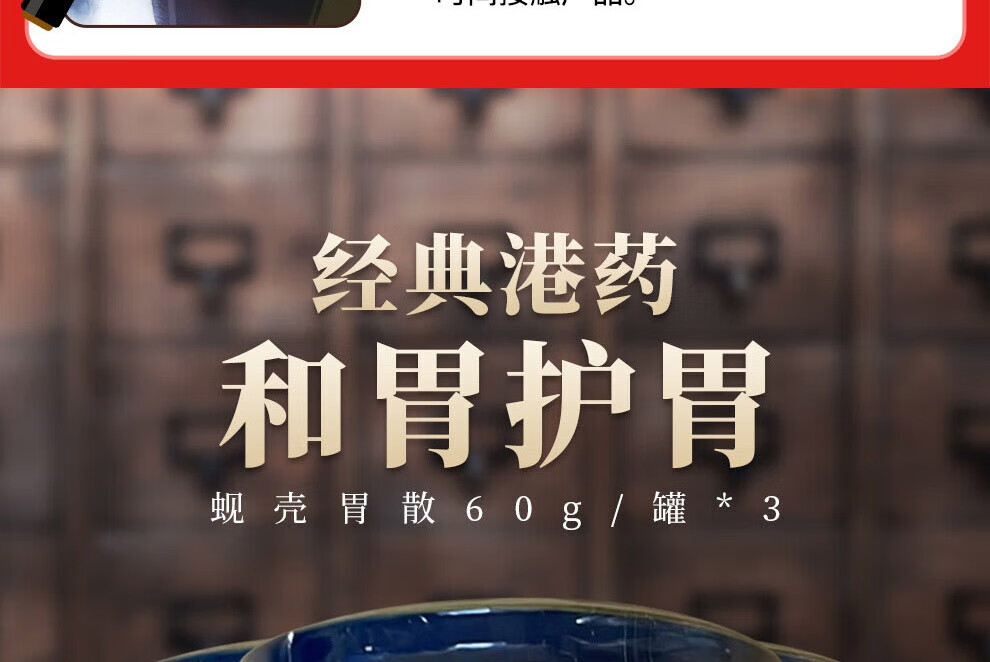 蚬壳胃散 胃散壳蚬港版肠胃消化呕吐反胃水土不服60g/罐*3瓶中国香港胃药 香港原装进口