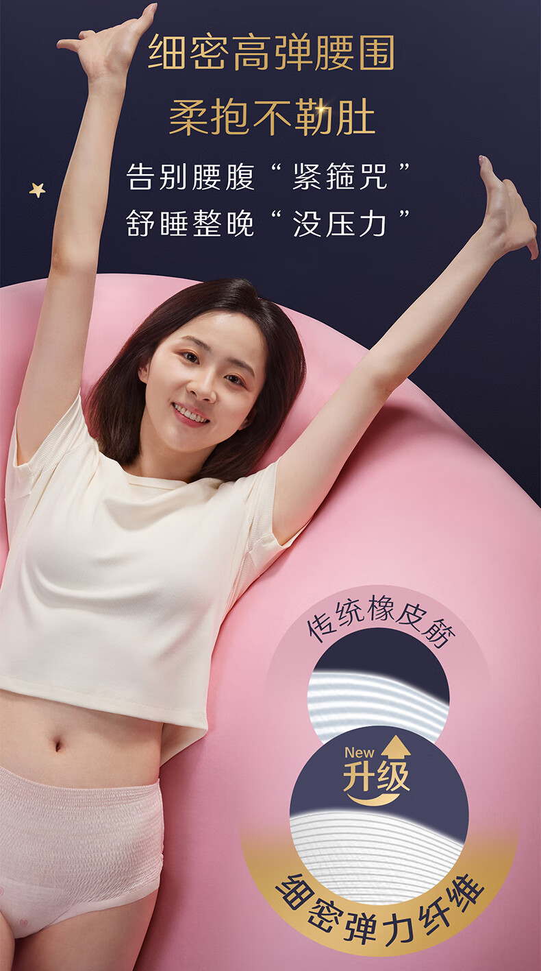 高洁丝(Kotex)夜安裤 安睡裤夜用裤型卫生巾超薄高弹防漏姨妈裤 F码-均码 12条 80-140斤 【少女裤】