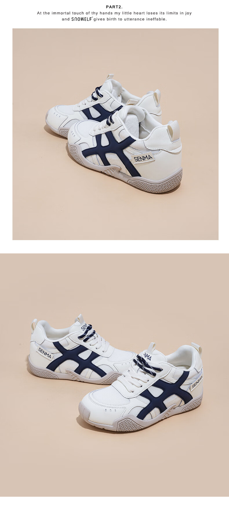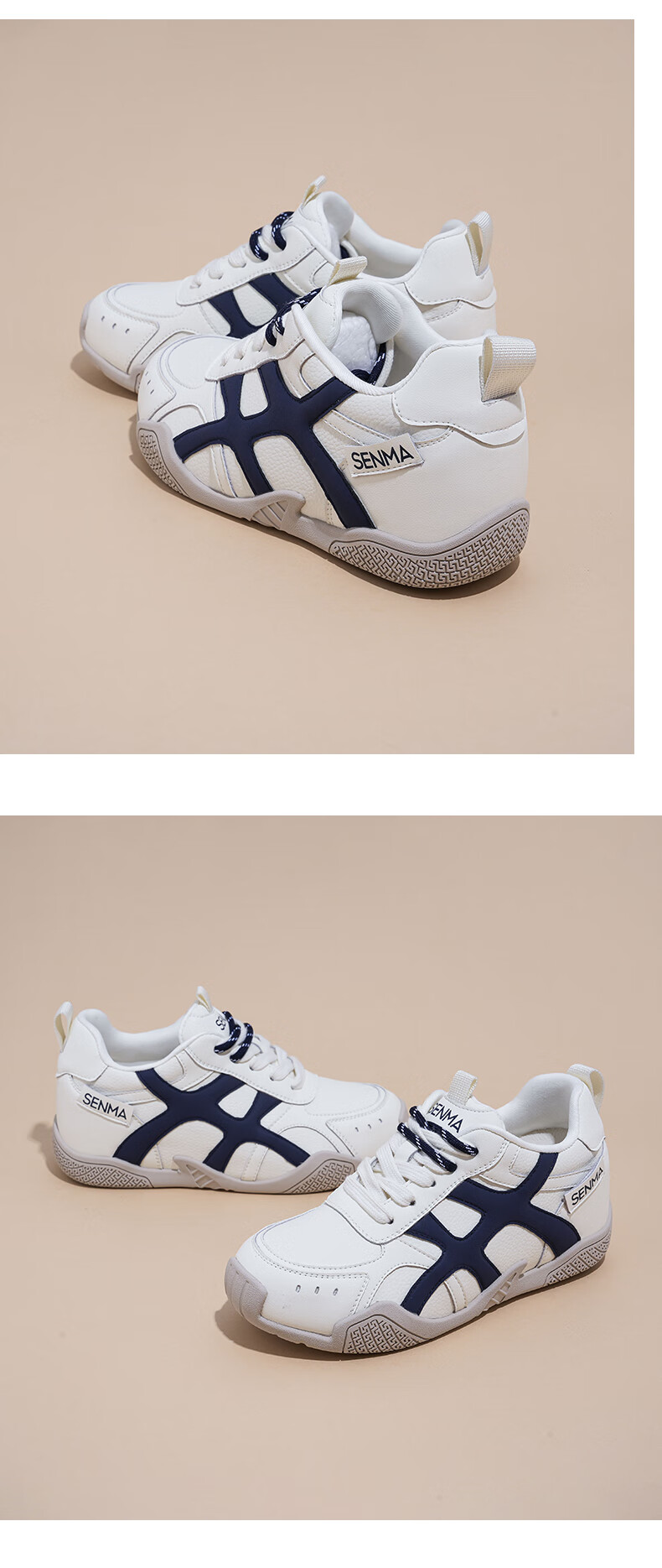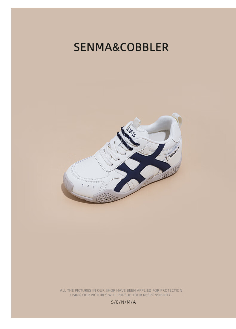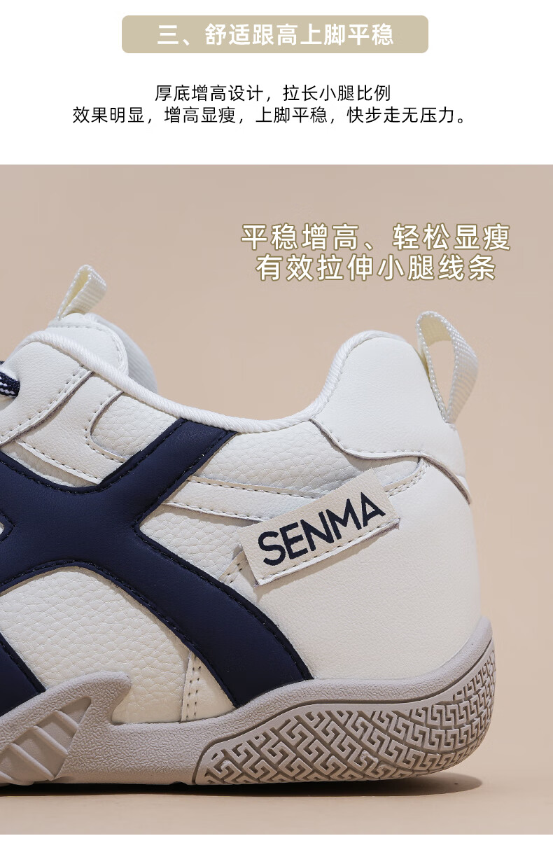 森馬(senma)德训鞋女鞋2026春款软底内增高阿甘鞋户外运动鞋双鞋带休闲鞋 白蓝色 39