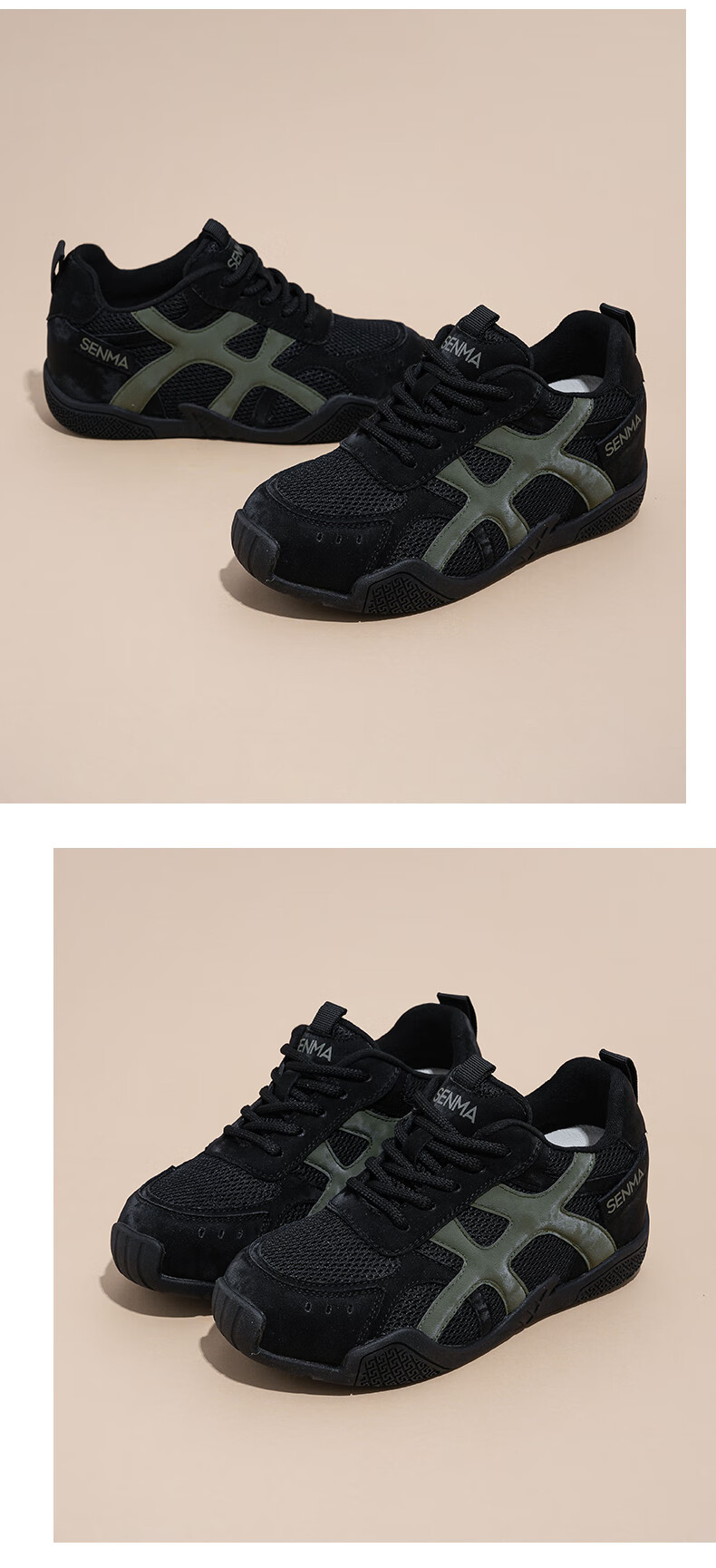 轻奢男鞋2026春季新款户外运动鞋男网面跑步鞋男士休闲百搭鞋子男 NK666 黑白【皮面款】 42