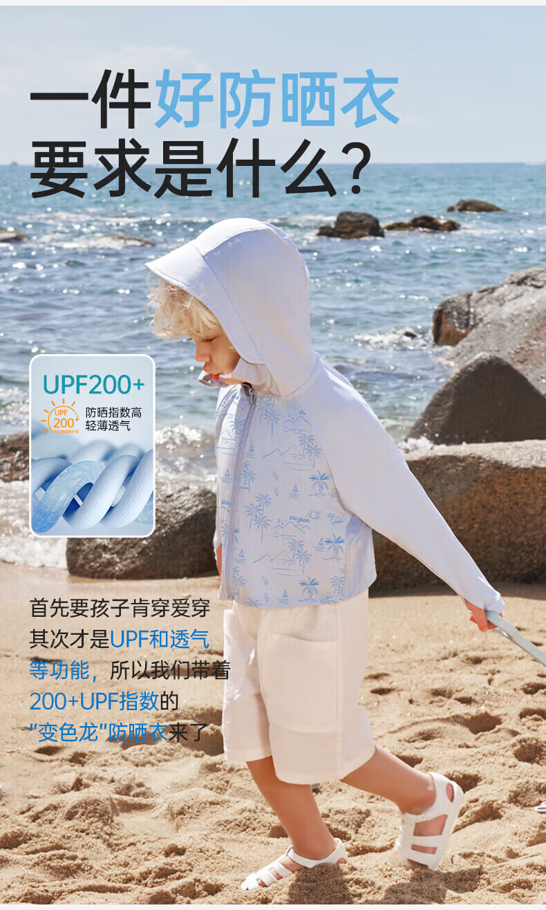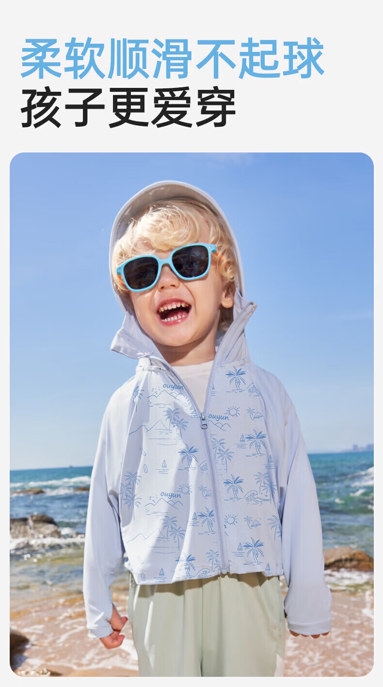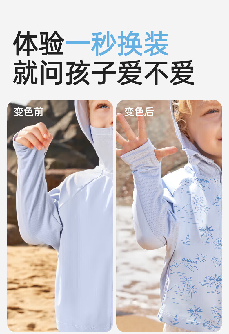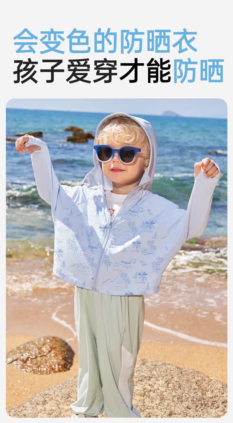 欧孕(OUYUN)拟态防晒衣儿童变色防晒服男童女童冰丝宝宝A类夏季薄款外套 青柠绿(纯色款) 110 【建议身高100cm-110cm】