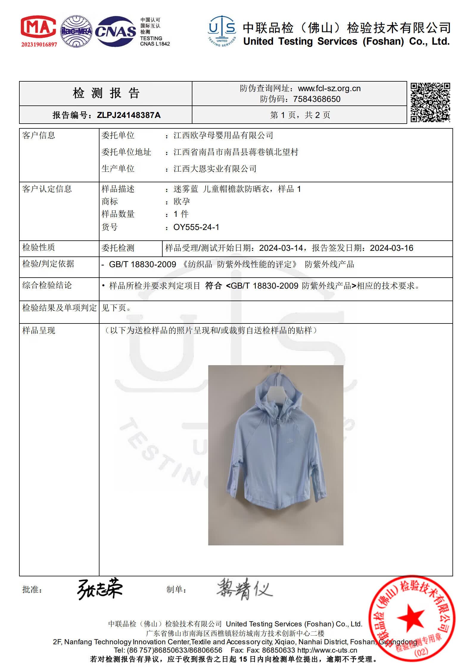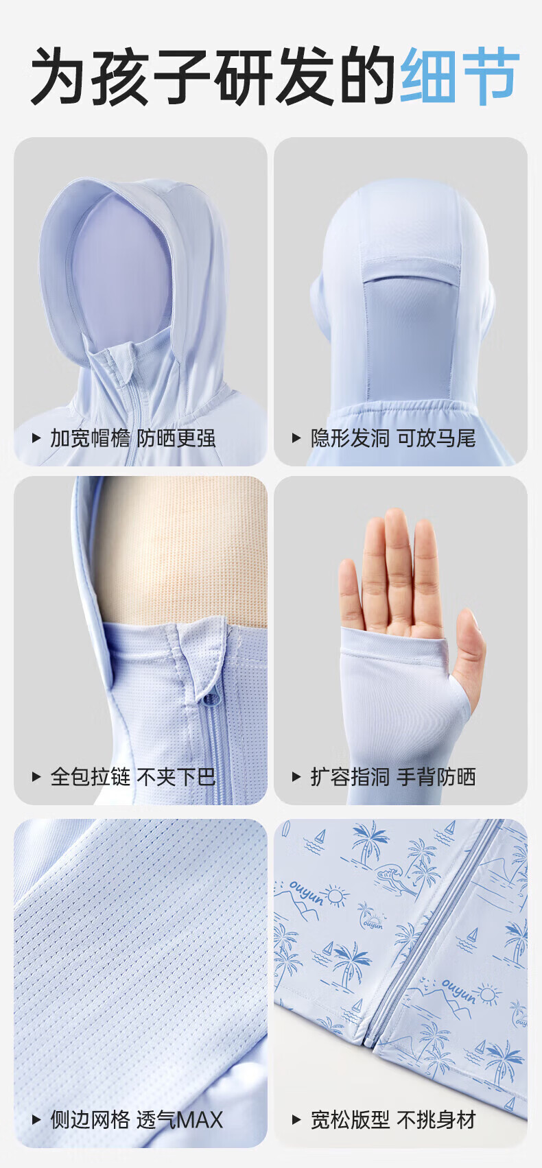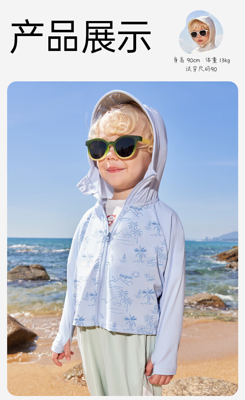 欧孕(OUYUN)拟态防晒衣儿童变色防晒服男童女童冰丝宝宝A类夏季薄款外套 青柠绿(纯色款) 110 【建议身高100cm-110cm】