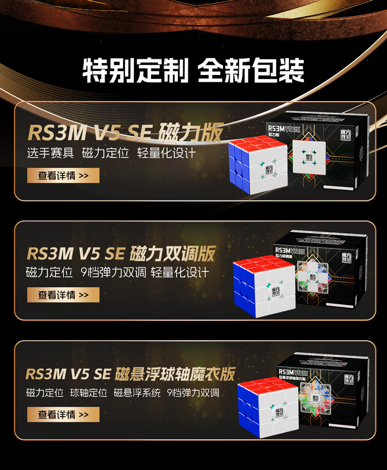 魔域文化RS3M v5 SE磁力三阶魔方磁悬浮球轴魔衣版顺滑速拧赛级魔方3阶