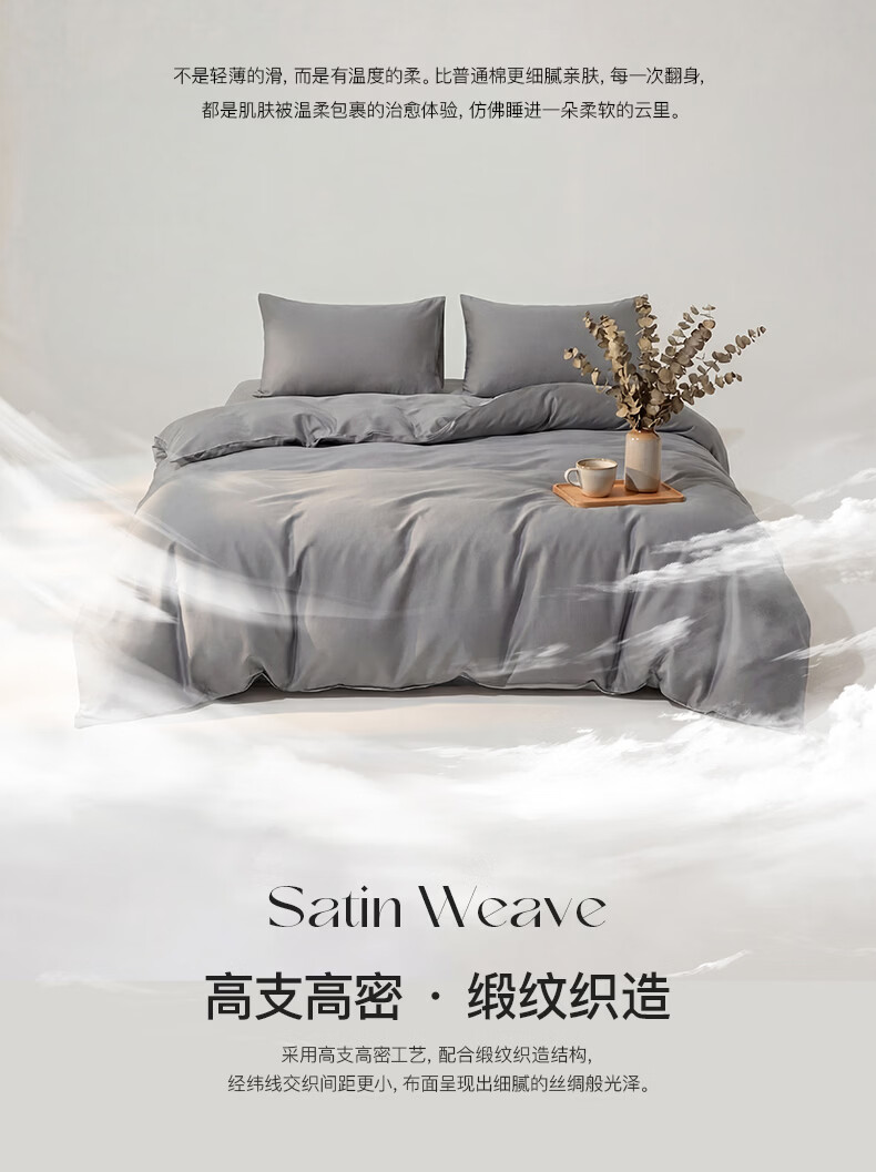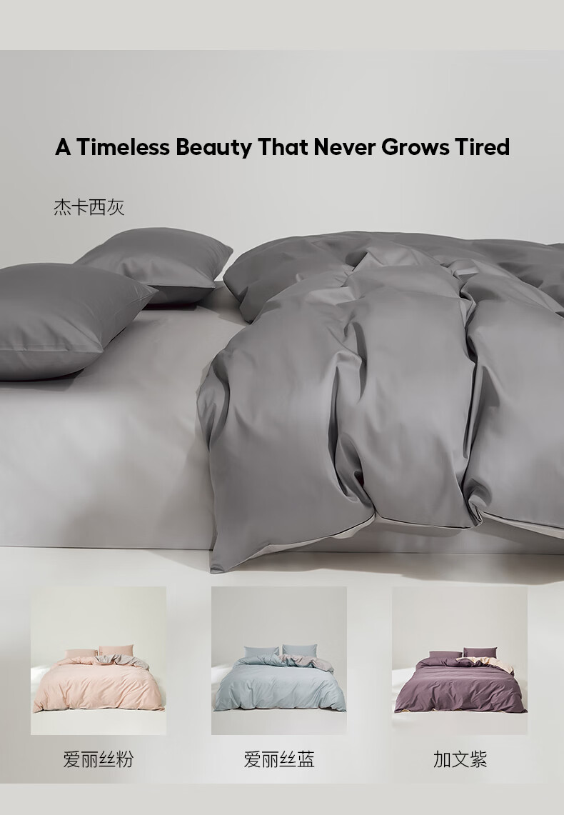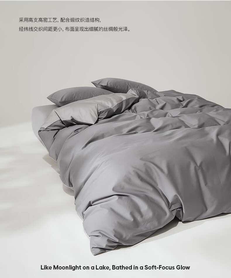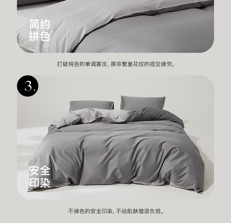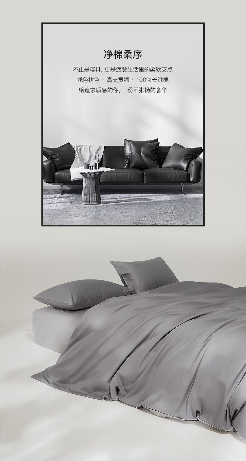 顶柔(DINGROU)净棉柔序贡缎长绒棉拼色纯棉四件套100%全棉床上用品床单被套 杰卡西灰 1.2-1.5米床 床单款 (被套150*200cm)