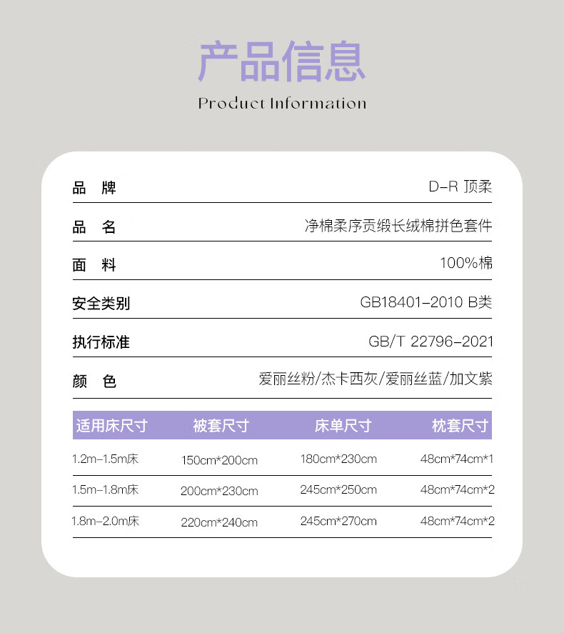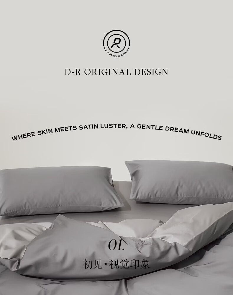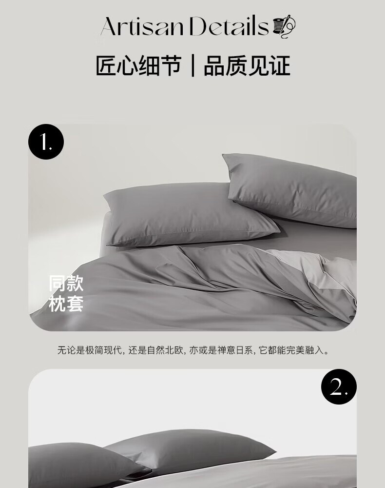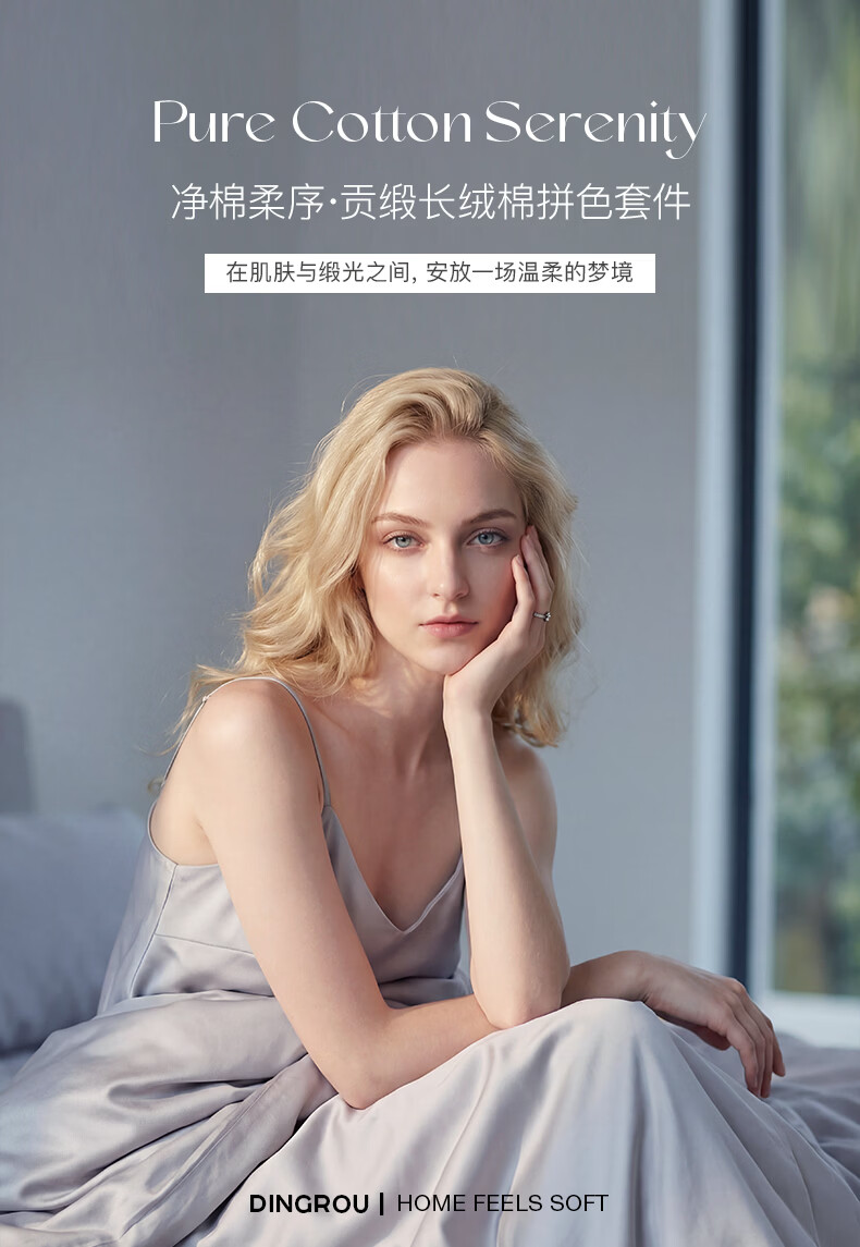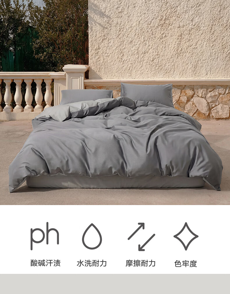 顶柔(DINGROU)净棉柔序贡缎长绒棉拼色纯棉四件套100%全棉床上用品床单被套 杰卡西灰 1.2-1.5米床 床单款 (被套150*200cm)