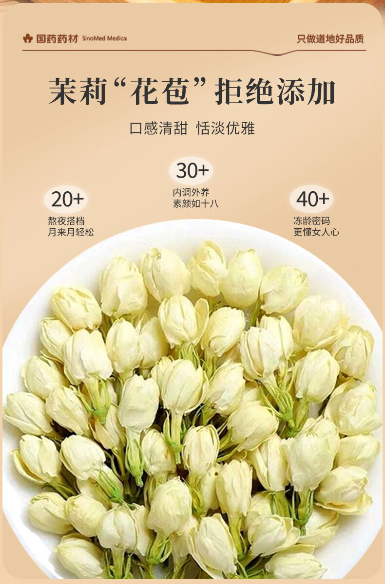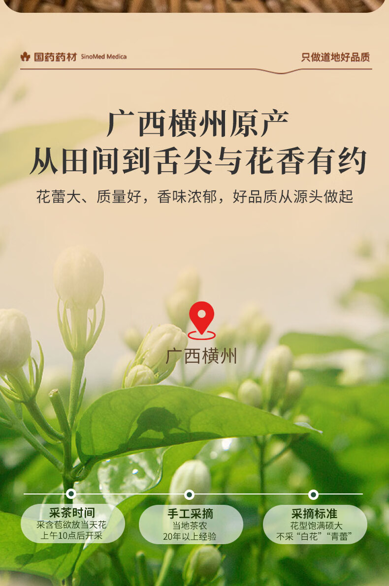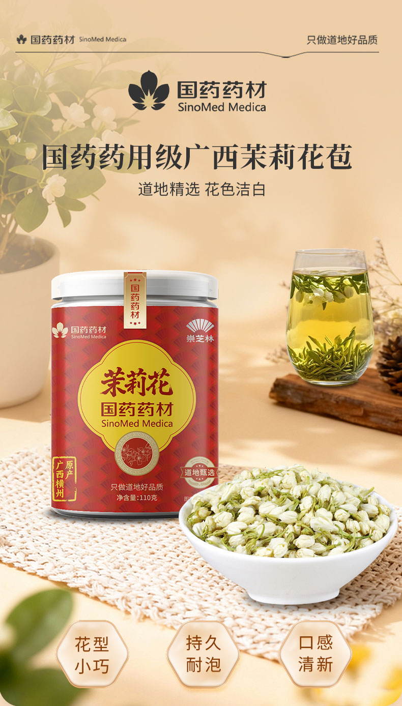 崇芝林国药药材茉莉花横县原产茉莉花茶干花蕾花草茶泡水喝养生茶饮110g 【广西横州】 110g*1罐 国药药材 只做道地好药材