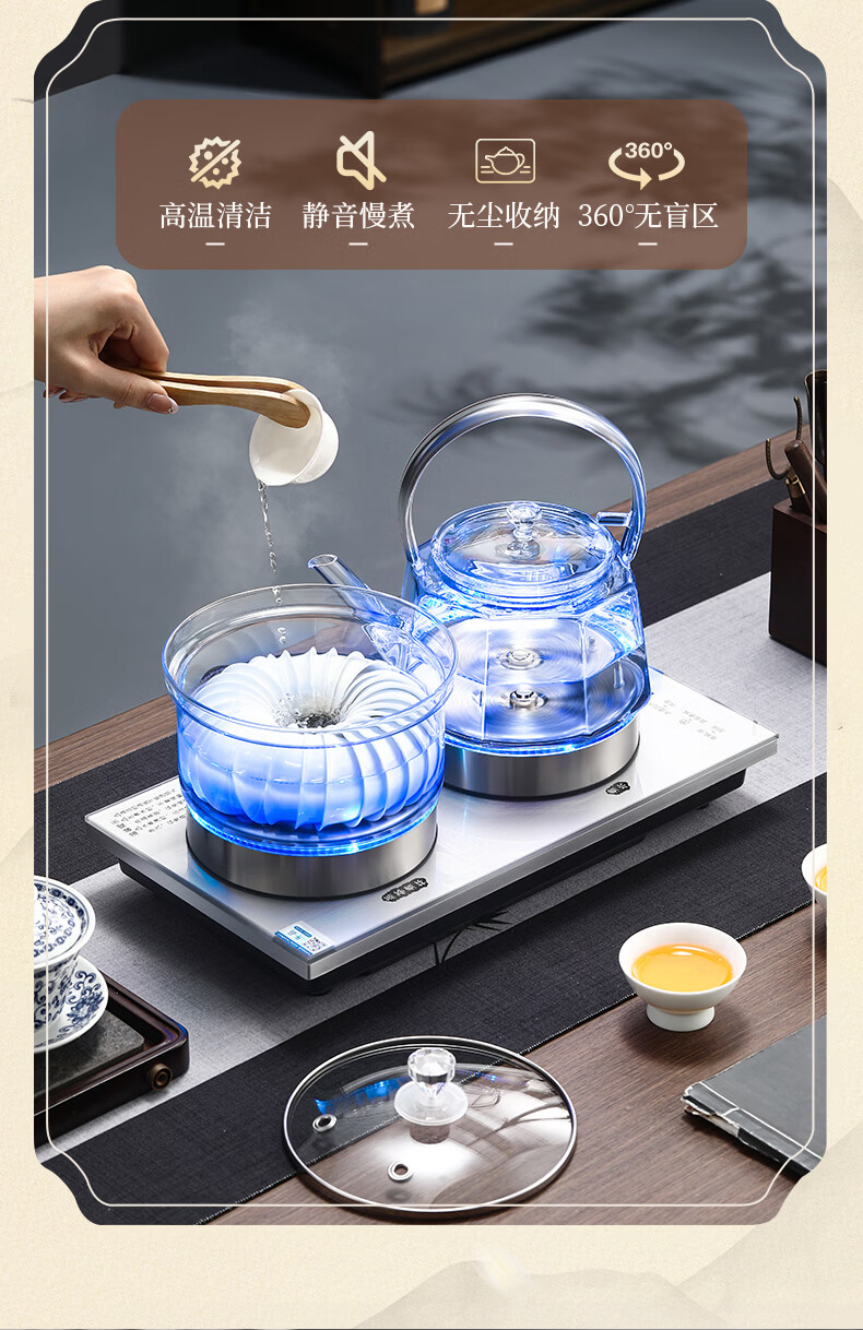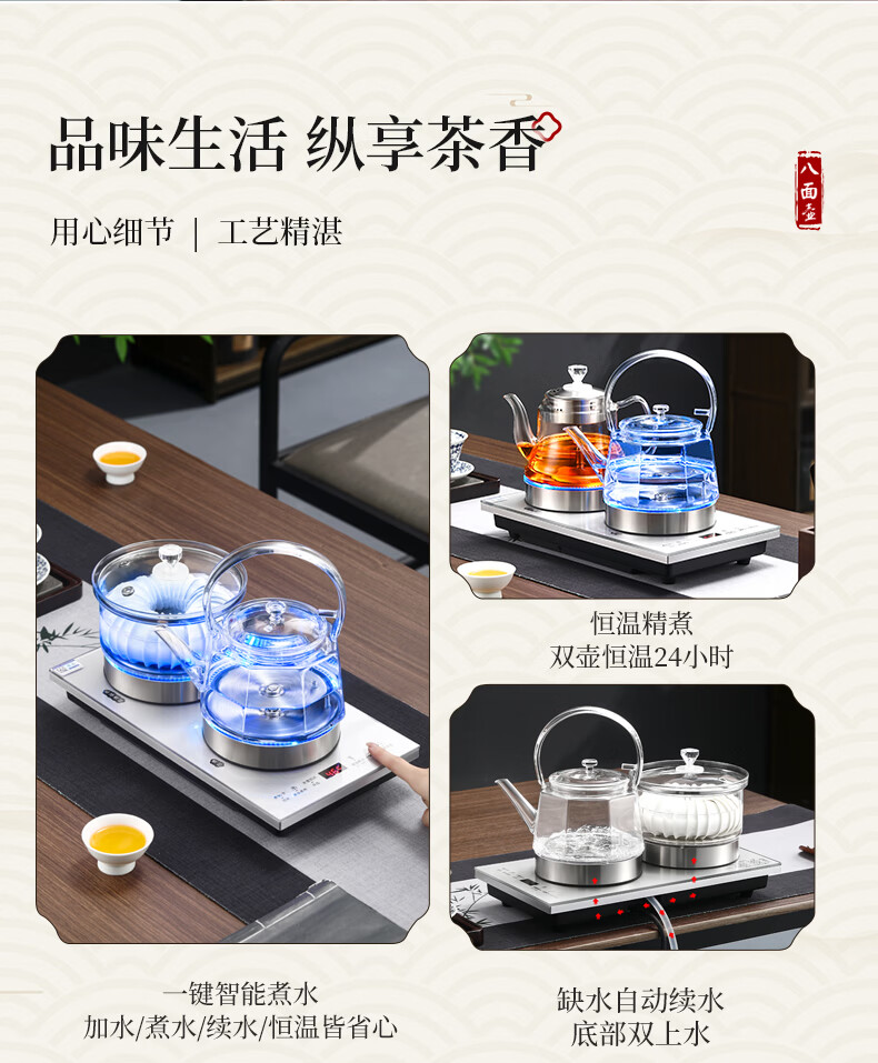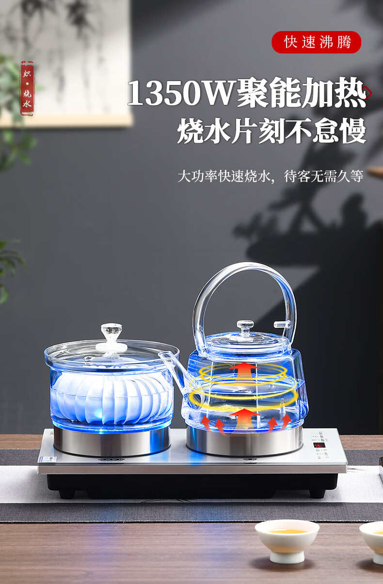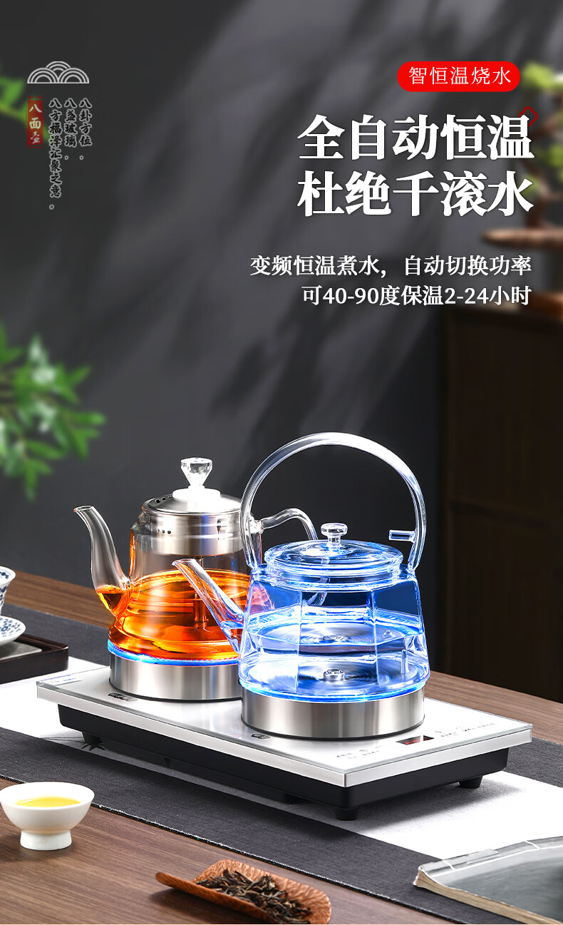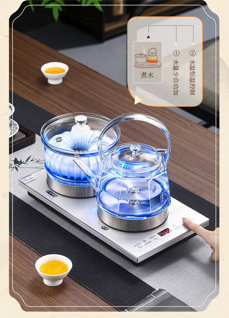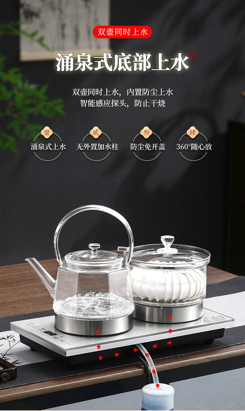 开品全自动双壶上水烧水壶双壶恒温24小时电热水壶嵌入茶台一体煮茶炉