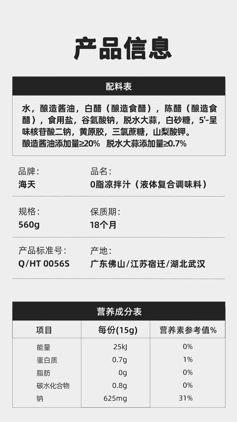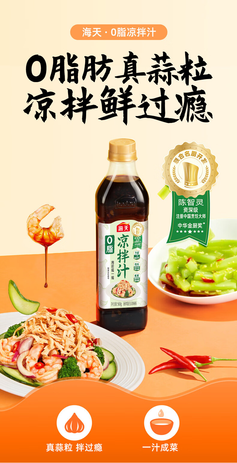 海天 0脂凉拌汁 减脂调料 凉拌调料 点蘸捞汁 0脂调味汁 560g