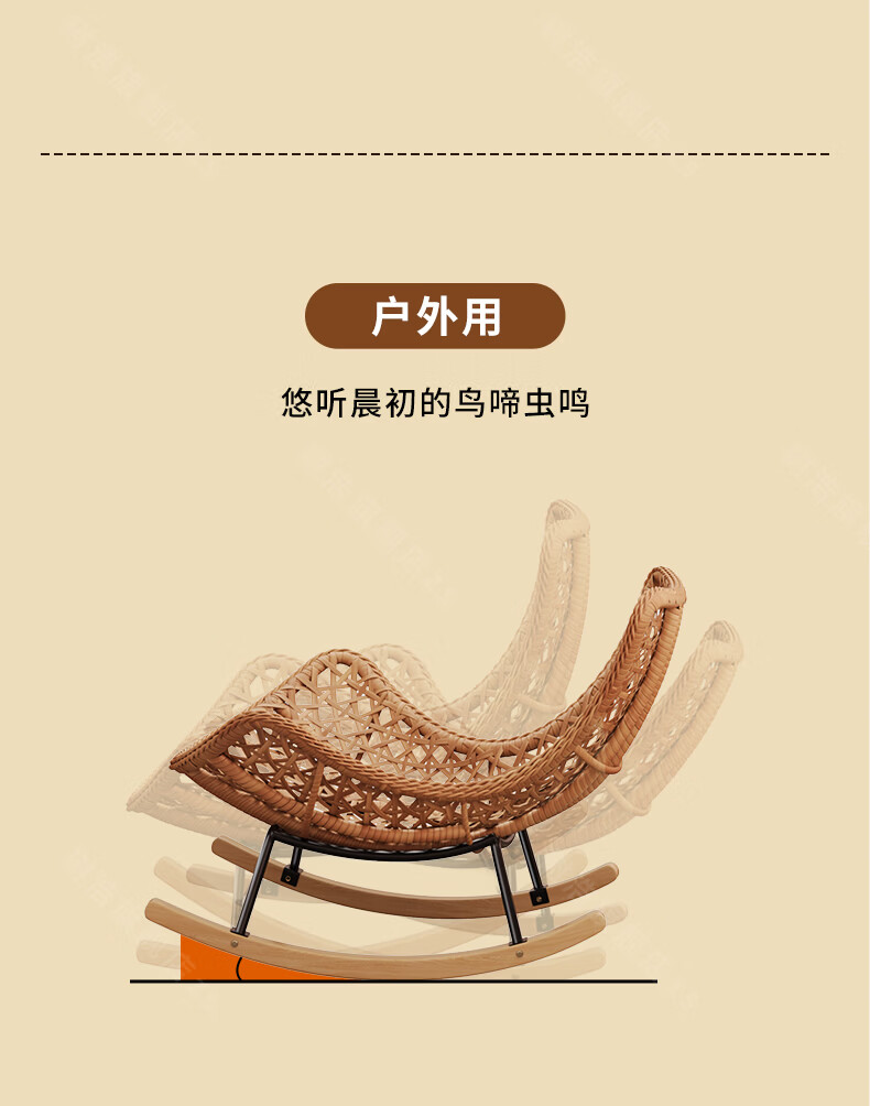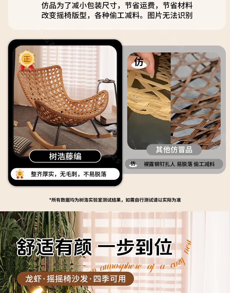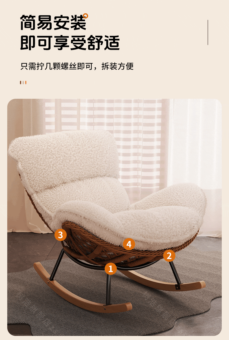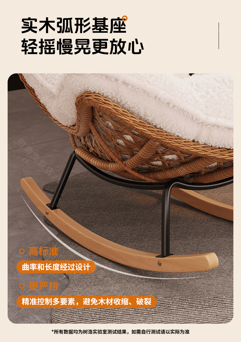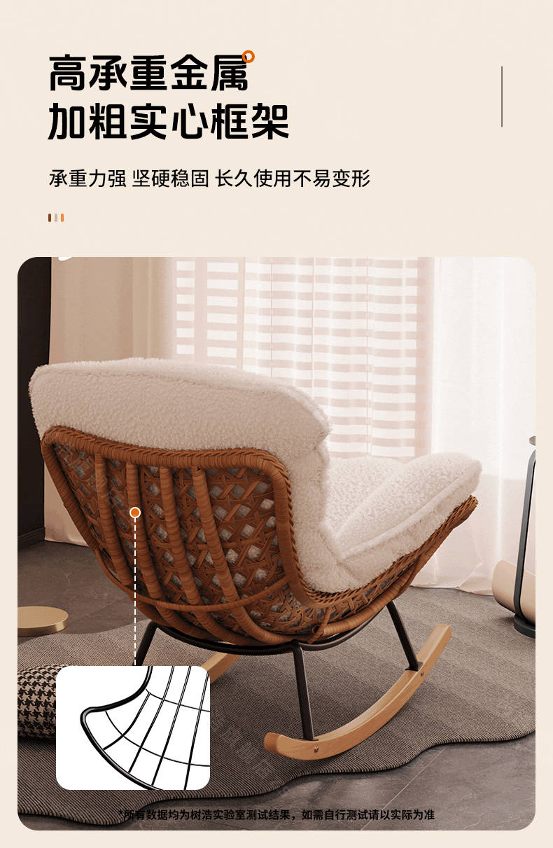 树浩摇摇椅躺椅阳台家用休闲藤编沙发椅懒人沙发户外庭院成人午休摇椅 【柔软羊羔绒】单藤椅-绒白色坐垫