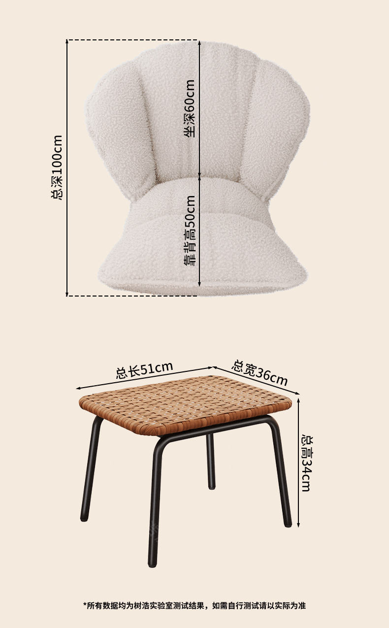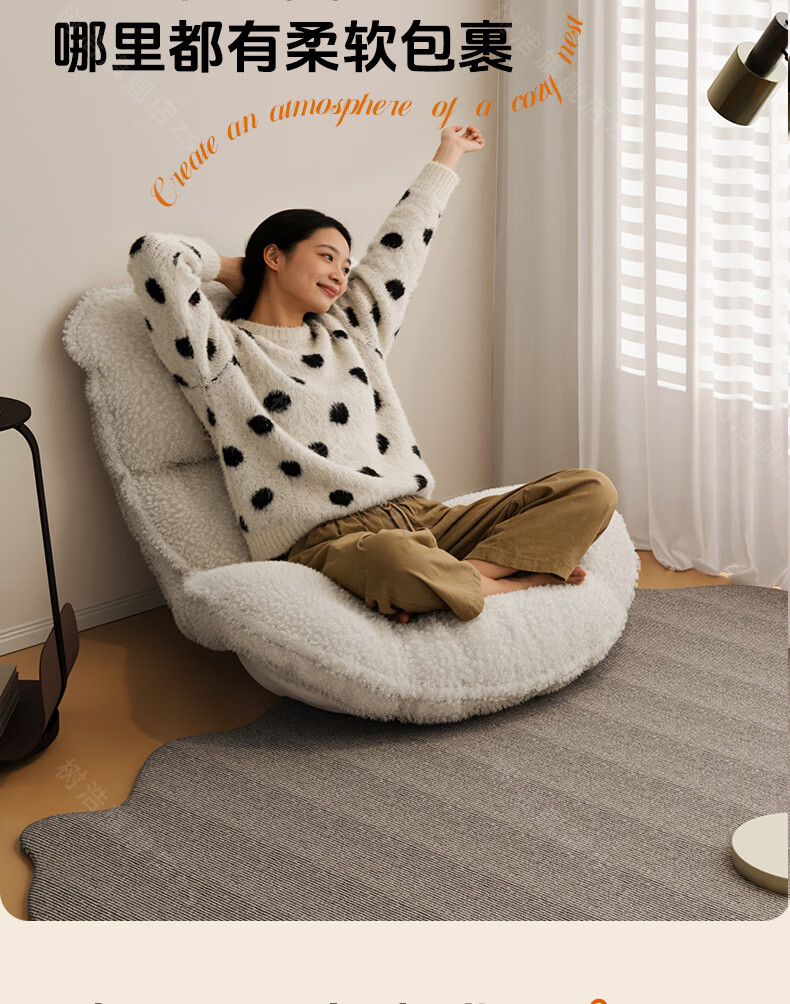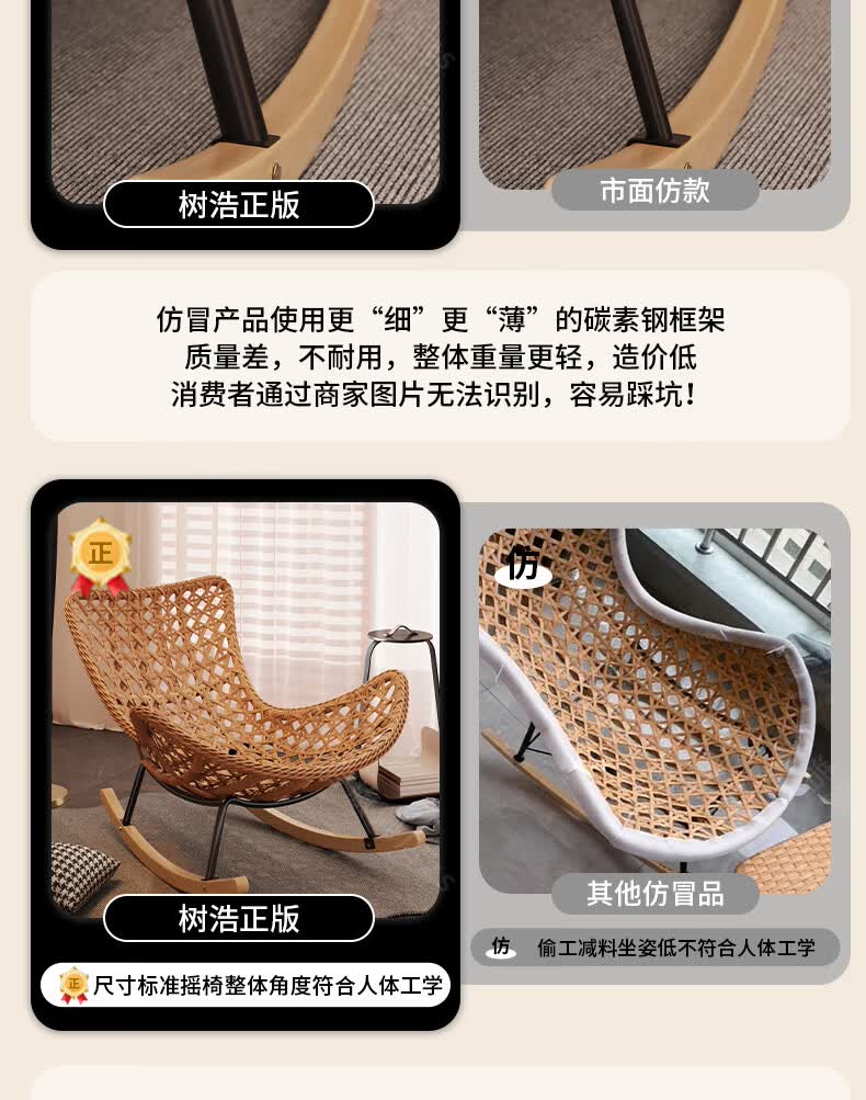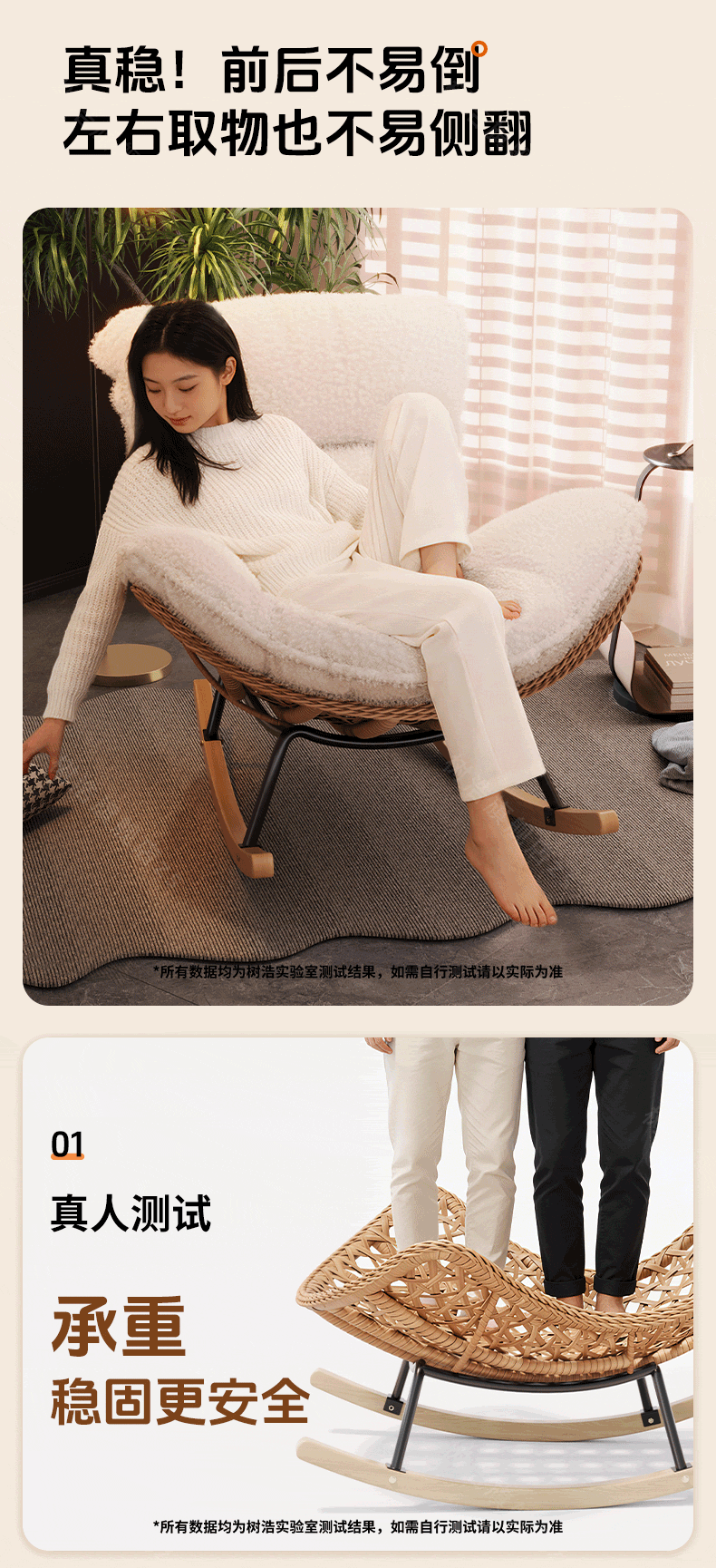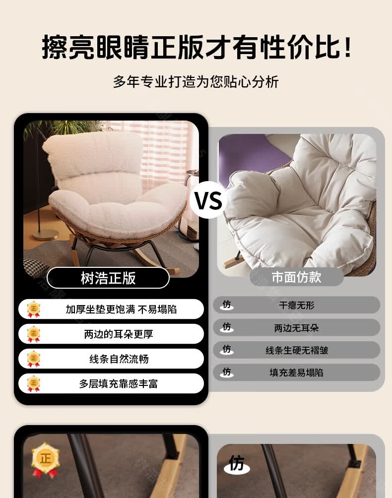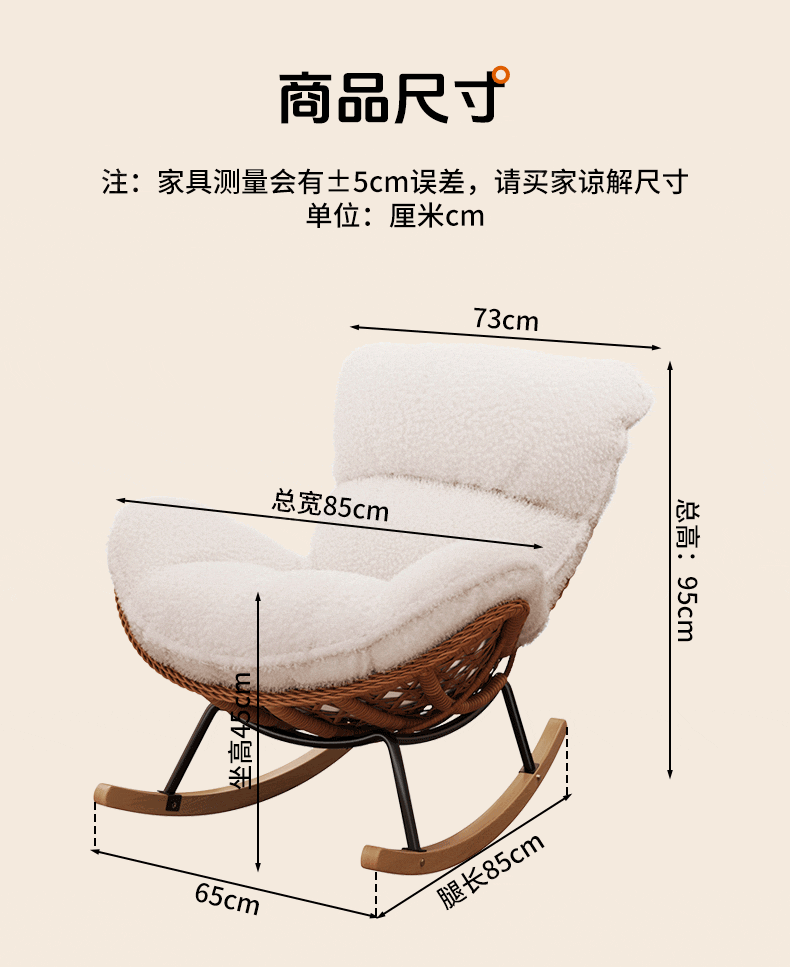 树浩摇摇椅躺椅阳台家用休闲藤编沙发椅懒人沙发户外庭院成人午休摇椅 【柔软羊羔绒】单藤椅-绒白色坐垫