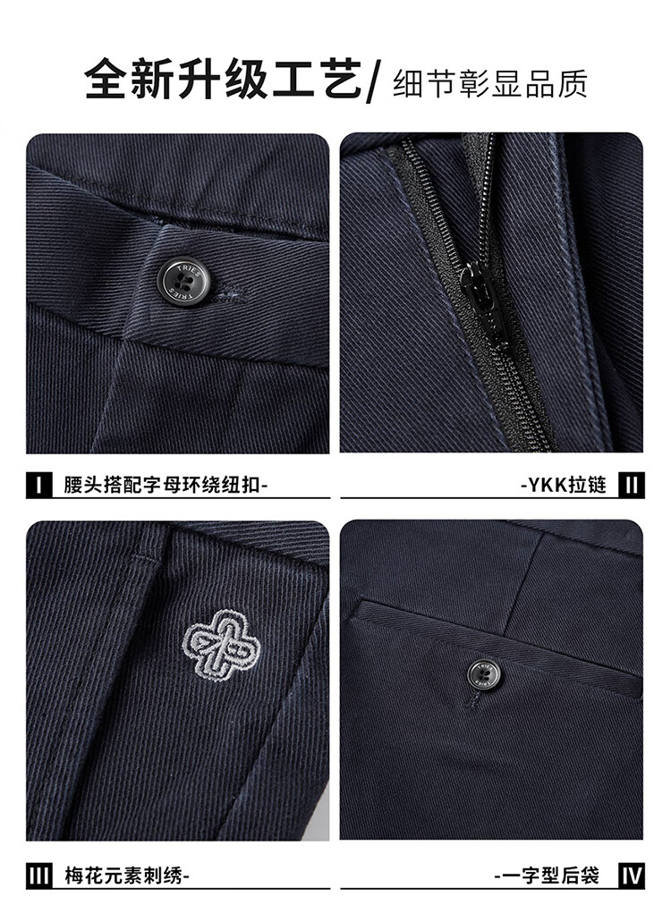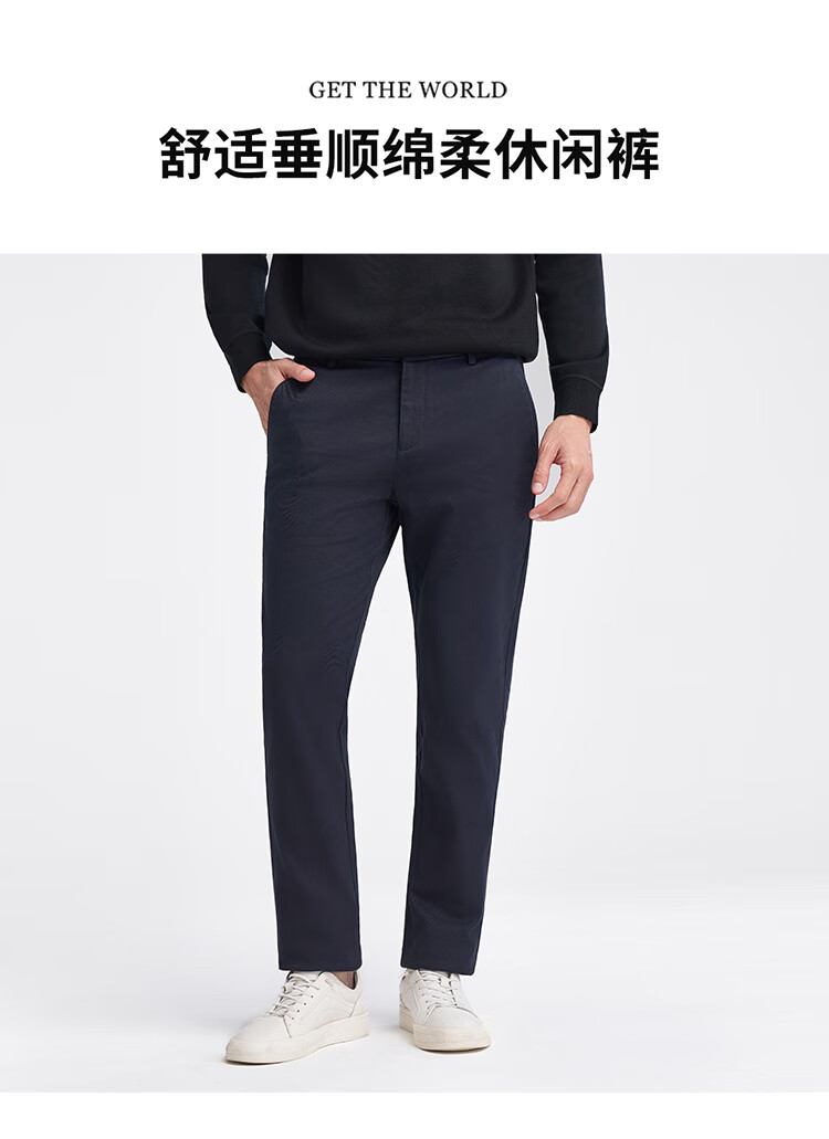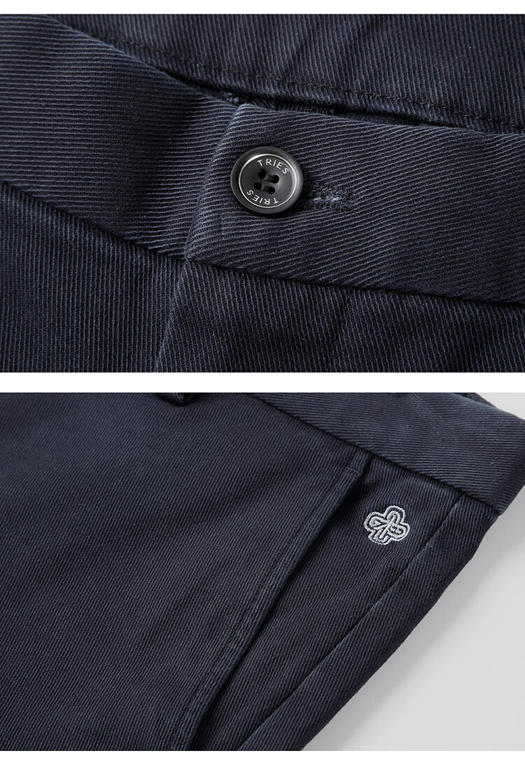 才子(TRIES)男士商务休闲裤纯色基础直筒裤新款立体裁剪绵柔舒适男裤子 深蓝色 29 74cm