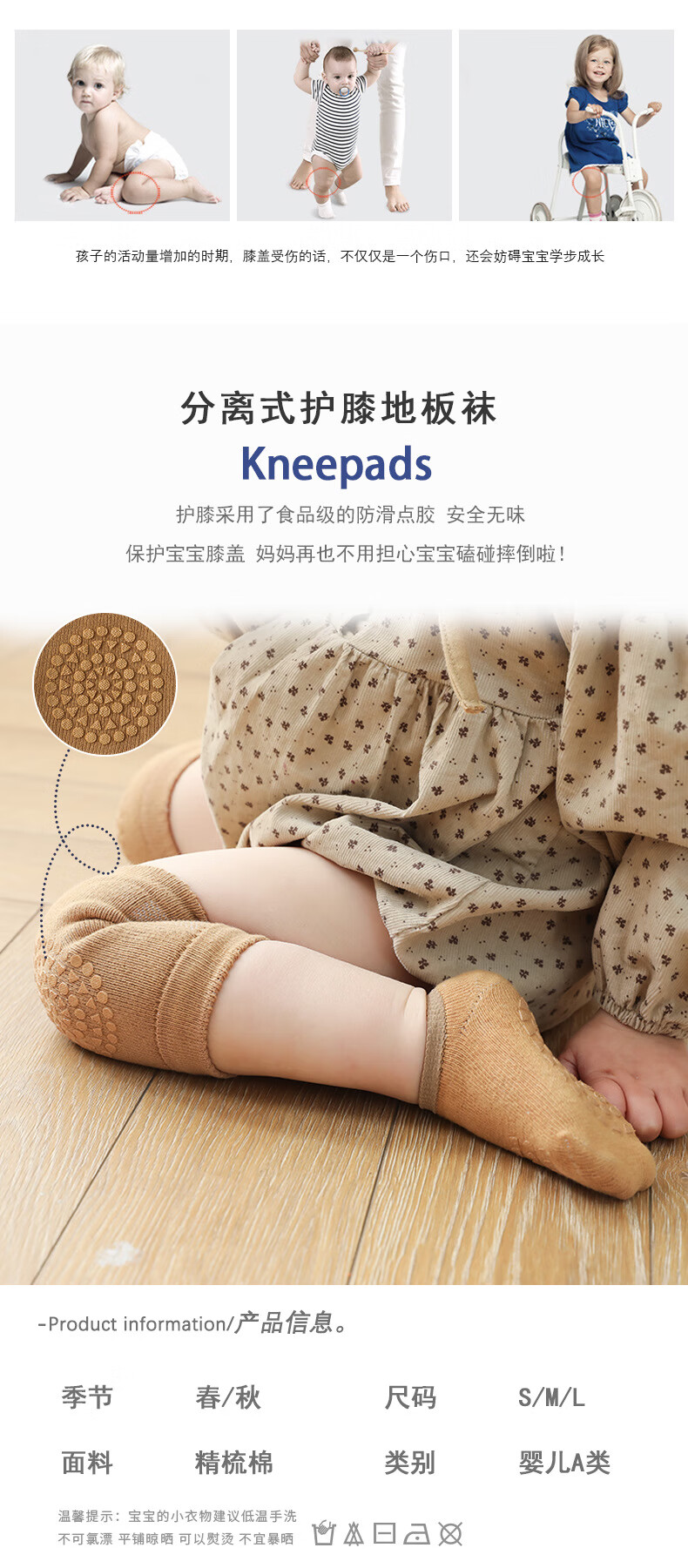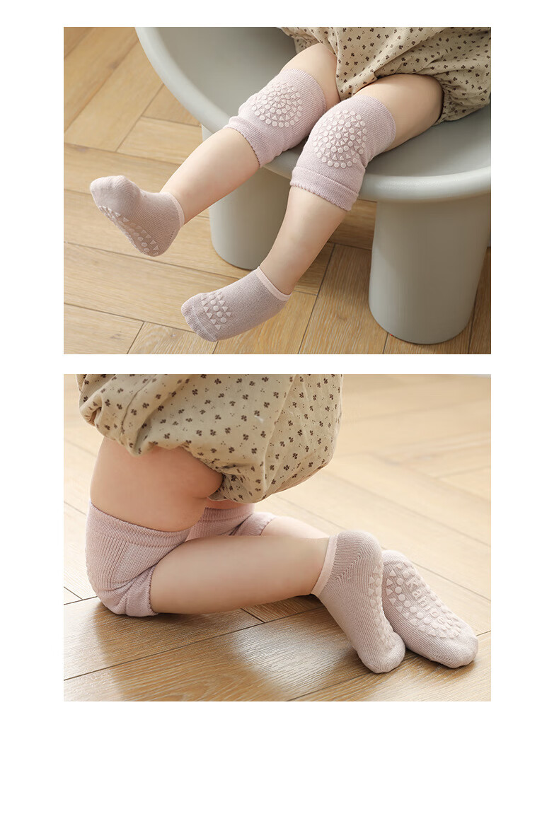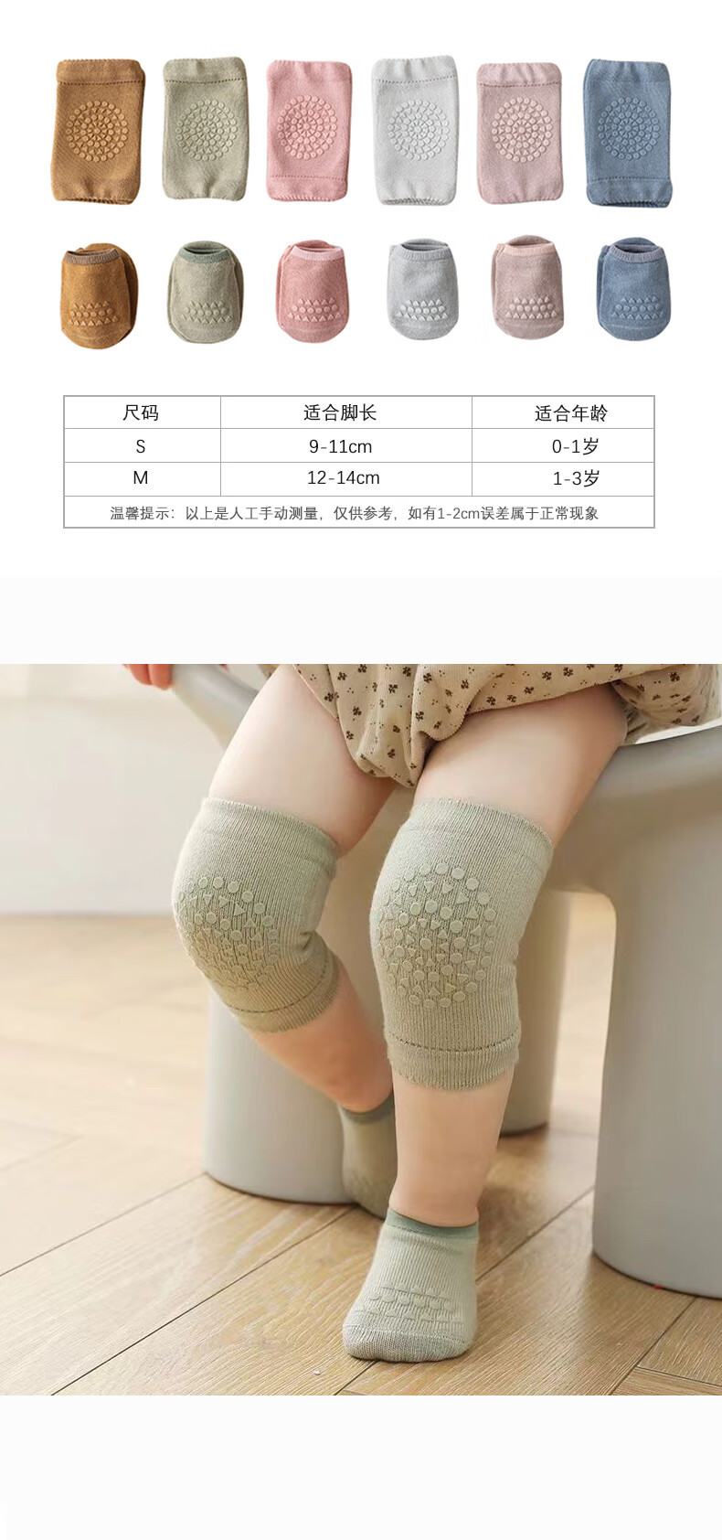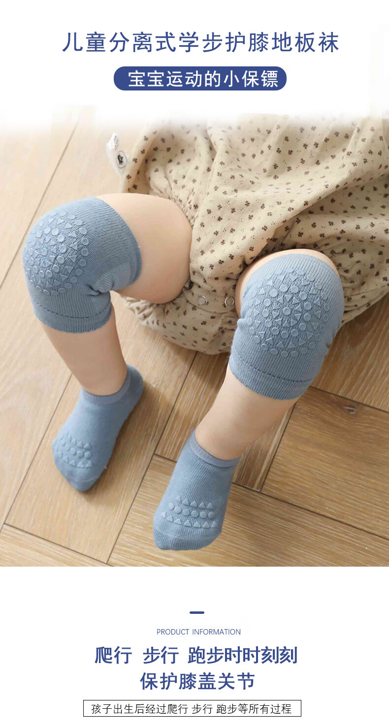 彩虹房子夏季新款儿童护膝宝宝地板袜套装学步袜婴儿防滑爬行运动保护 护膝地板袜男孩款 1-3岁 (M) 建议1-3岁约12-14cm