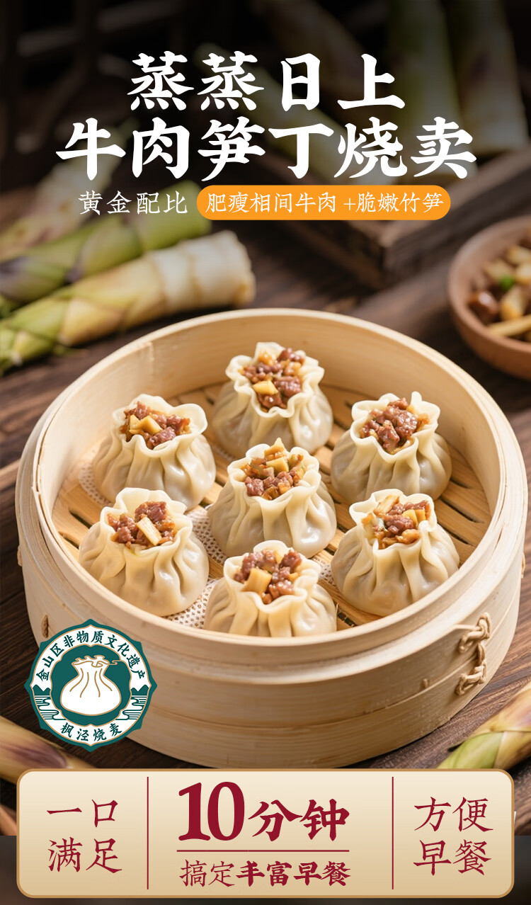 春禾秋牧 牛肉笋丁烧麦 上海特色早餐半成品 生鲜食品 儿童小孩学生早点 牛肉笋丁烧麦 180g*3袋