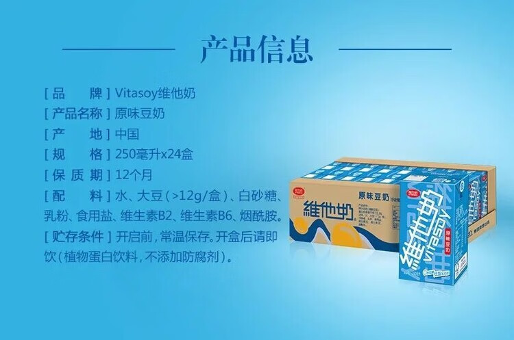 维他奶原味豆奶250ml*16盒整箱优质植物蛋白含多种维生素维他豆奶 250ml*16盒