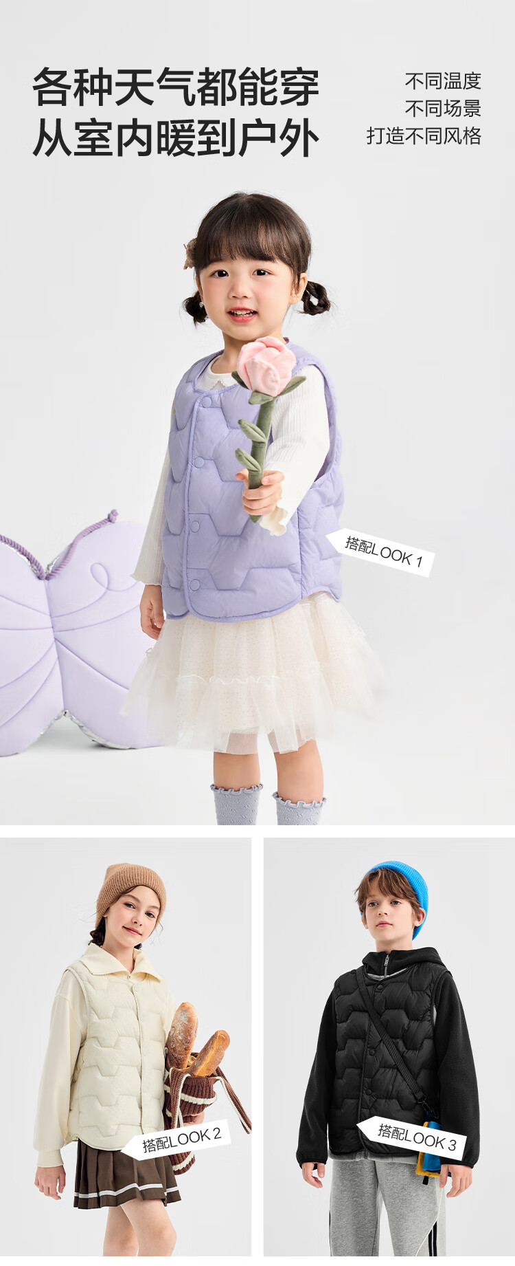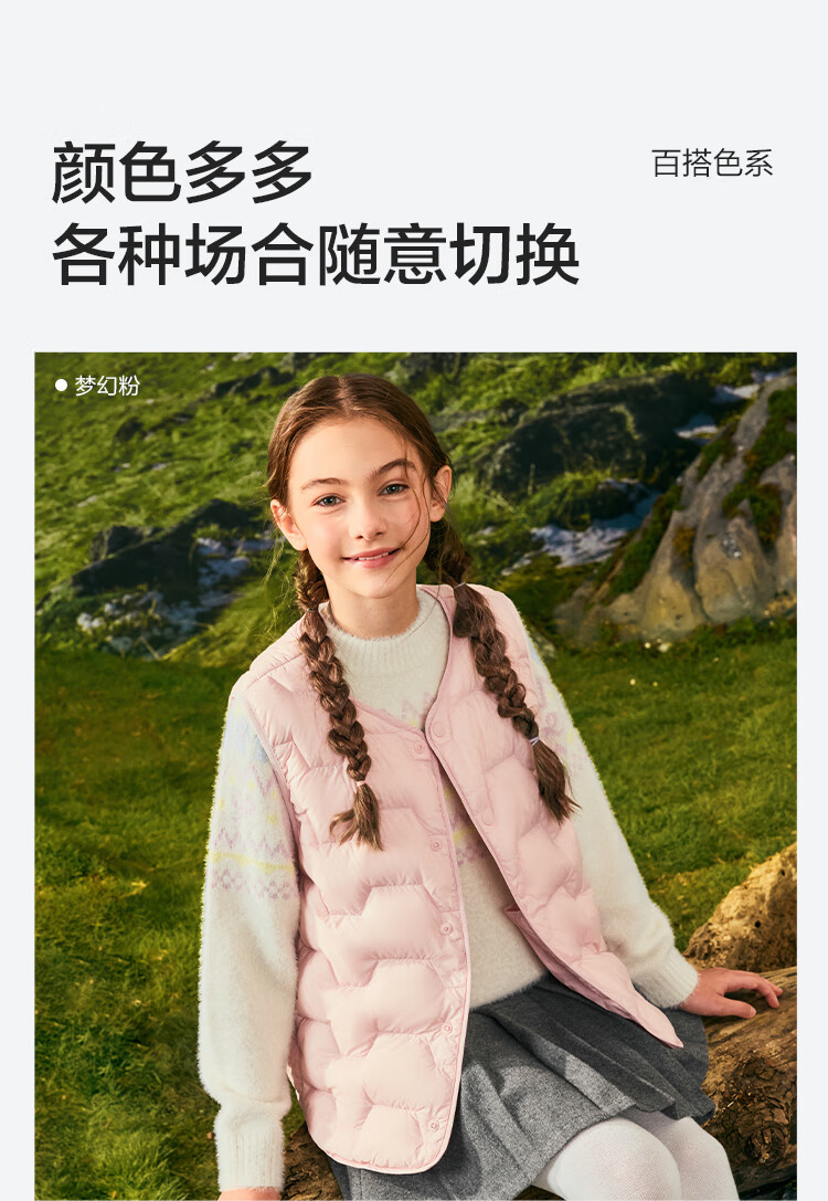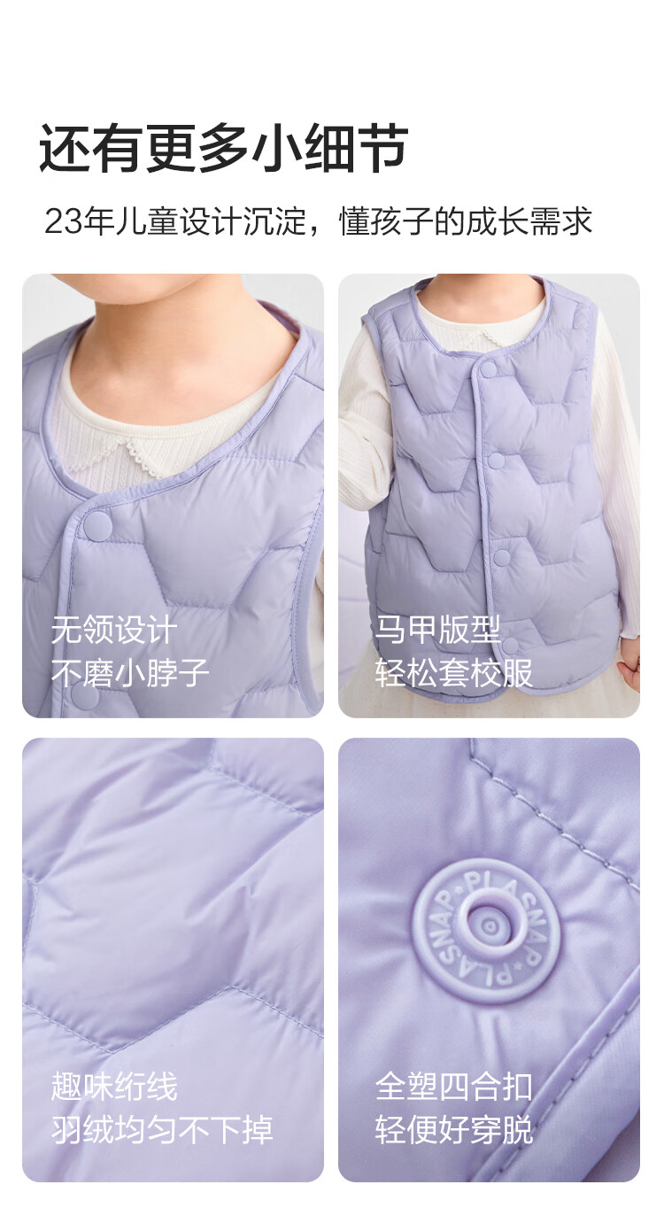 巴拉巴拉【商场同款】儿童轻薄羽绒马甲男女童外套2025新款冬装三防上衣服