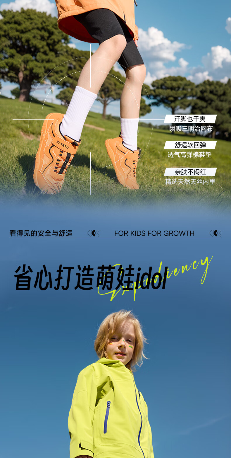 卡特兔童鞋儿童运动鞋男童户外跑步鞋秋季女宝宝网眼透气篮球鞋 橙色 27 内长16.5cm 脚长15.6-16.2
