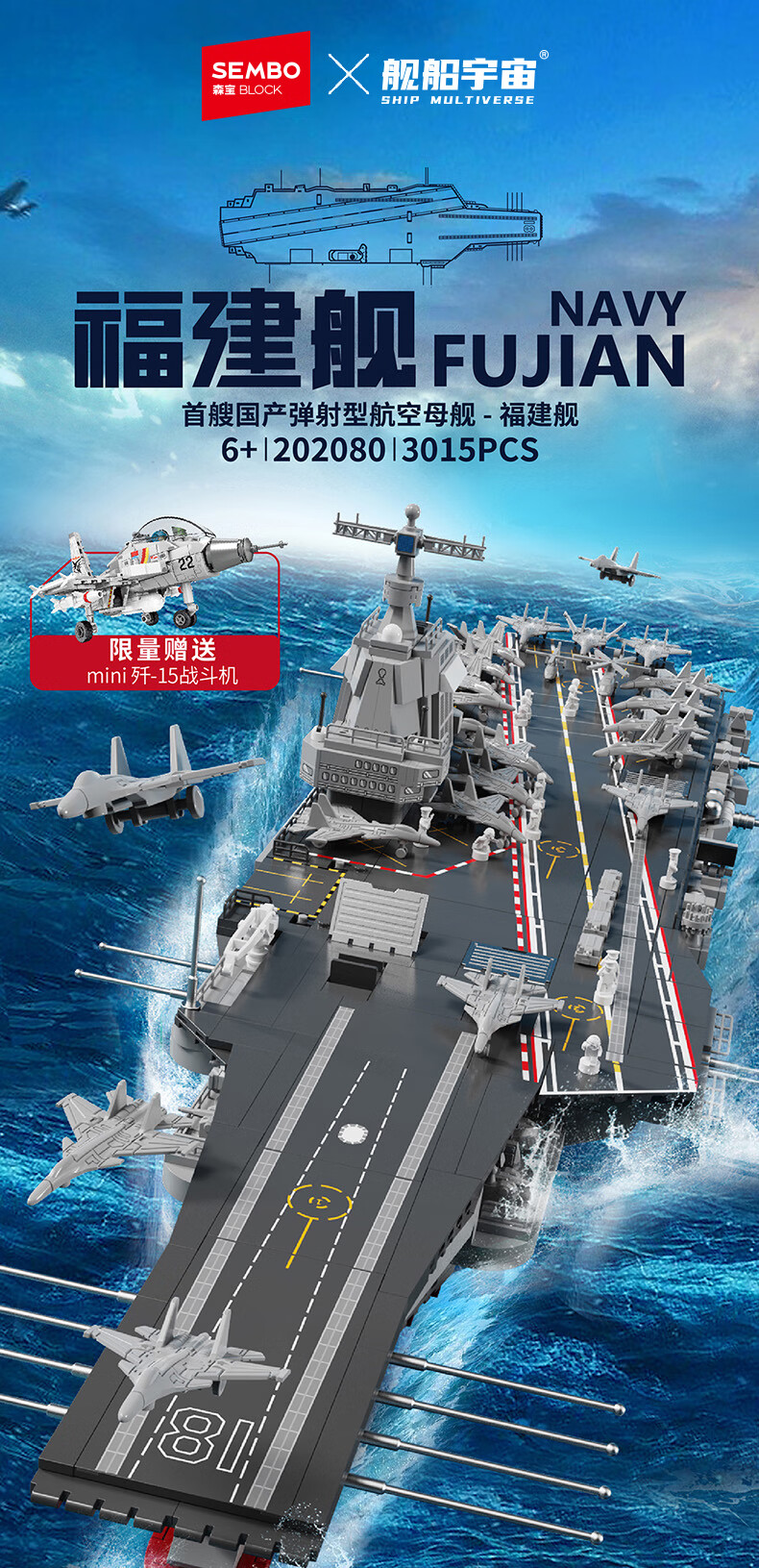 森宝积木正版授权福建舰军事拼装航空母舰玩具男孩生日礼物