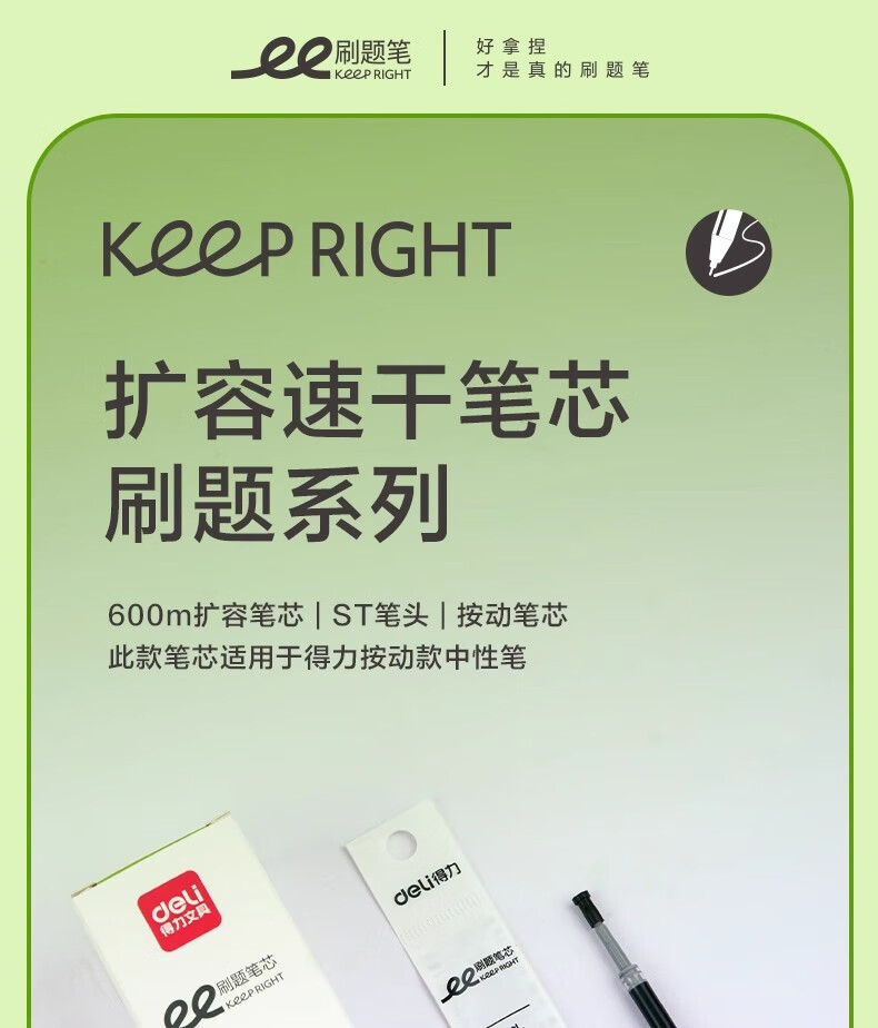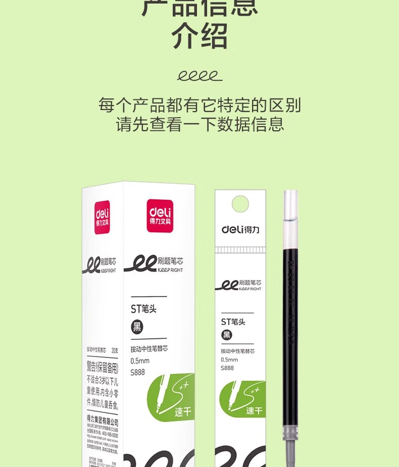 得力速干笔芯st笔头按动笔替芯学生用0.5黑色加强型针管考试笔芯顺滑学霸刷题黑笔芯水笔芯s888 【20支】速干 ST笔头 黑色