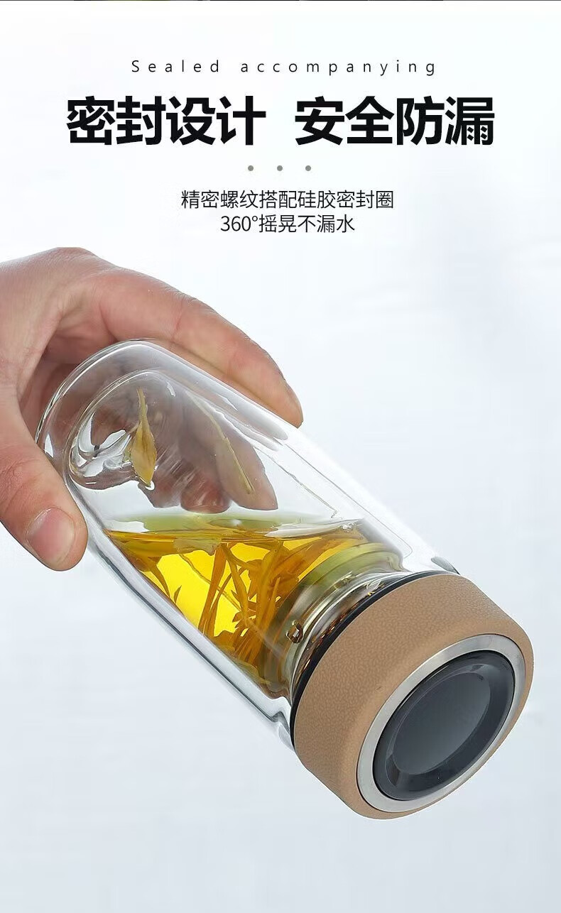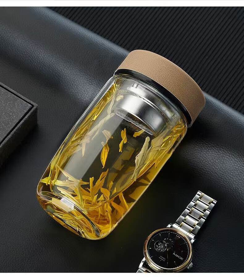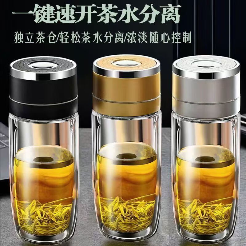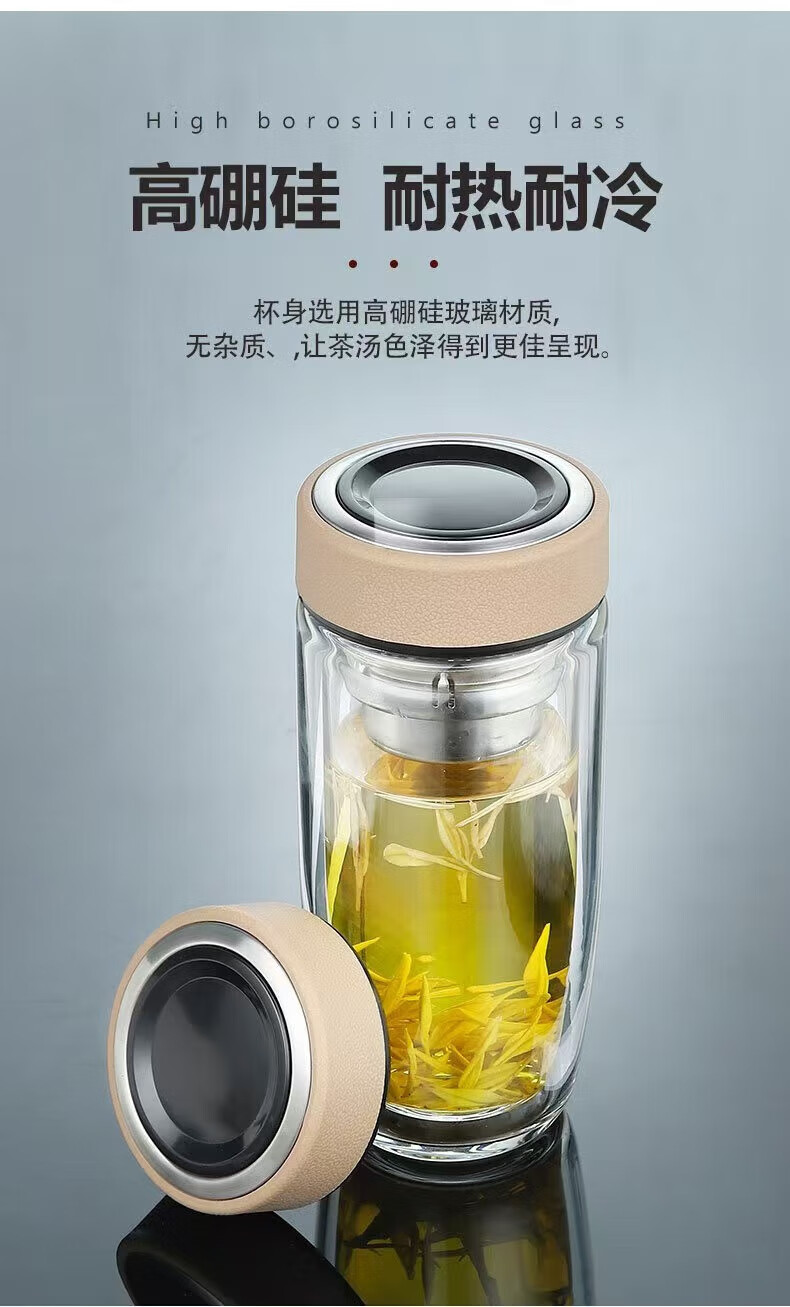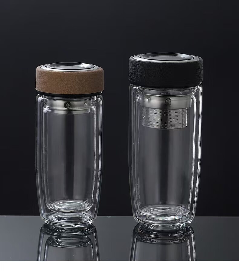鹅蛋杯玻璃杯双层茶水分离大容量双层水杯茶杯 红色皮纹鹅蛋杯1只装