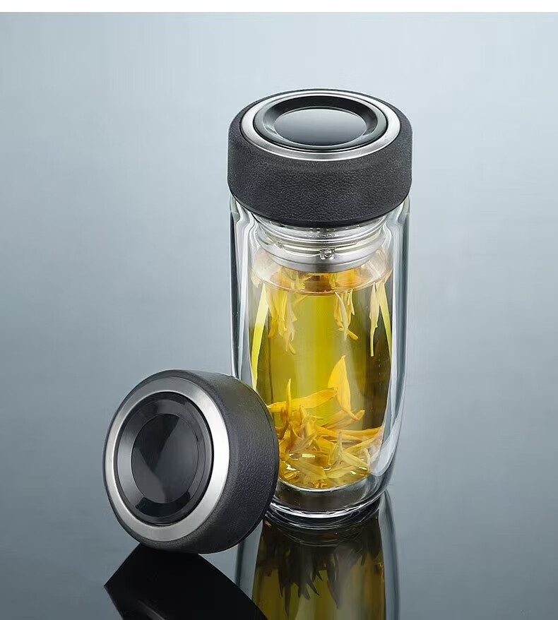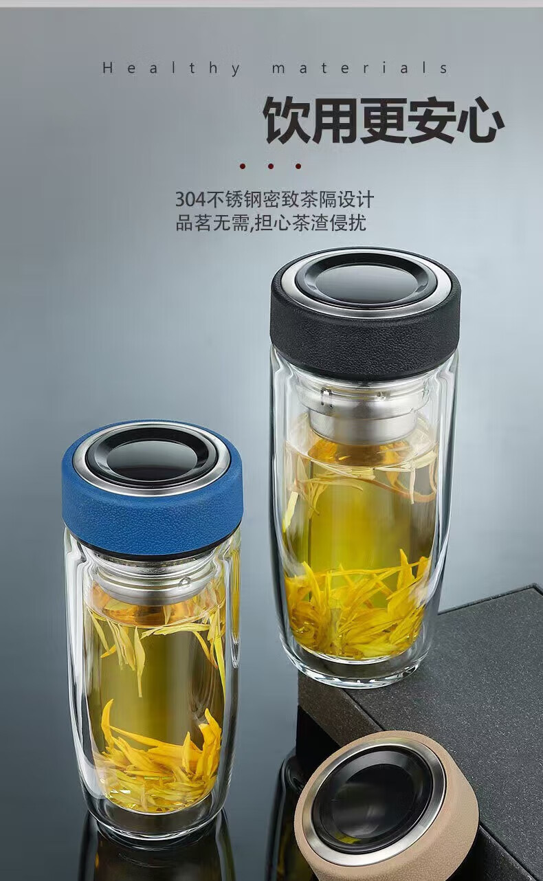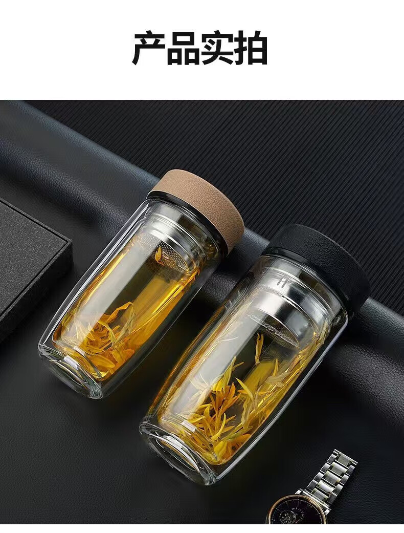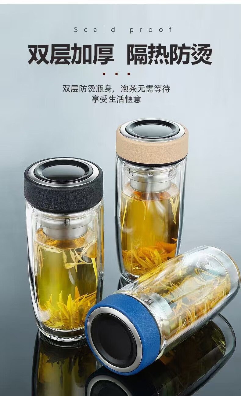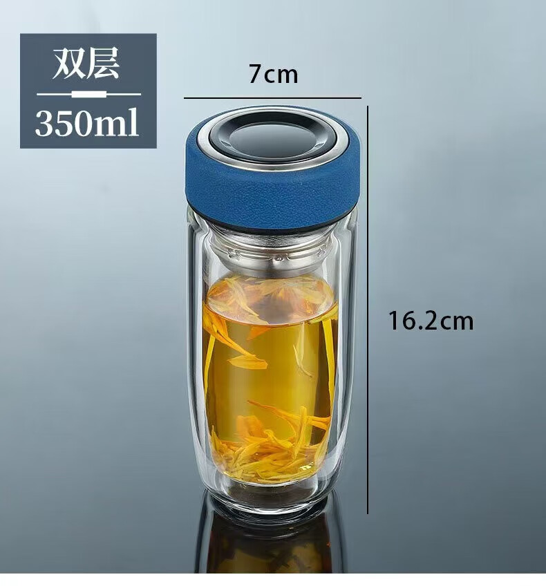 鹅蛋杯玻璃杯双层茶水分离大容量双层水杯茶杯 红色皮纹鹅蛋杯1只装