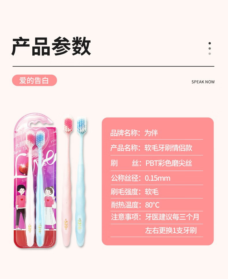 为伴软毛牙刷成人牙刷情侣牙刷软毛清新口气护理牙刷 细刷毛 牙刷家庭装 10支