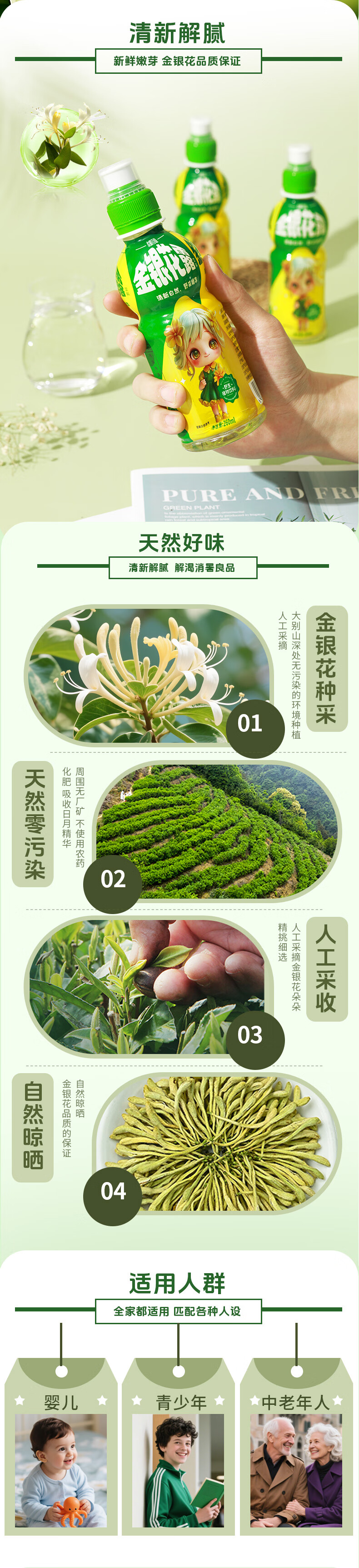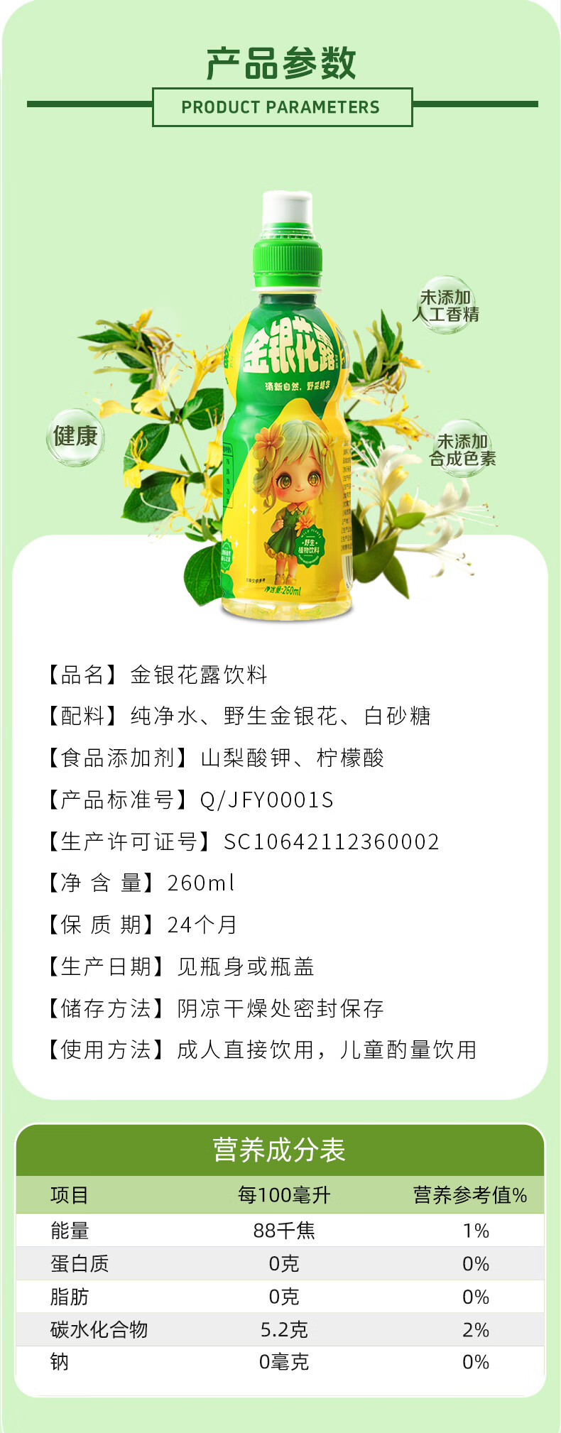 绿色天空金银花露260ml*6瓶 儿童饮品