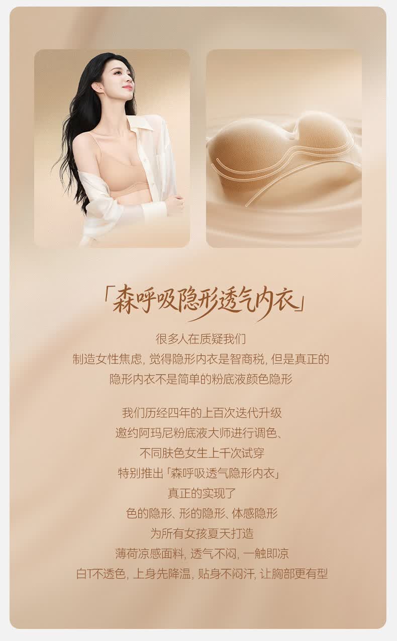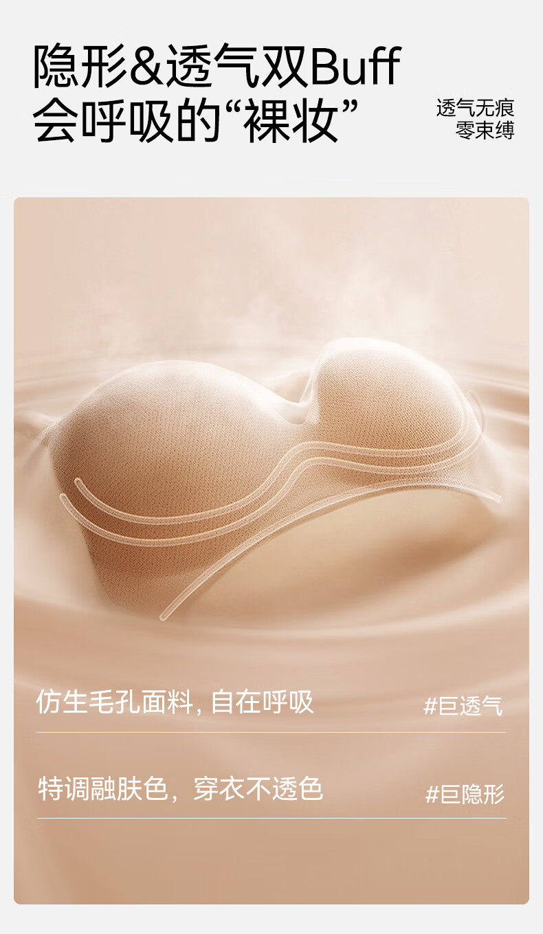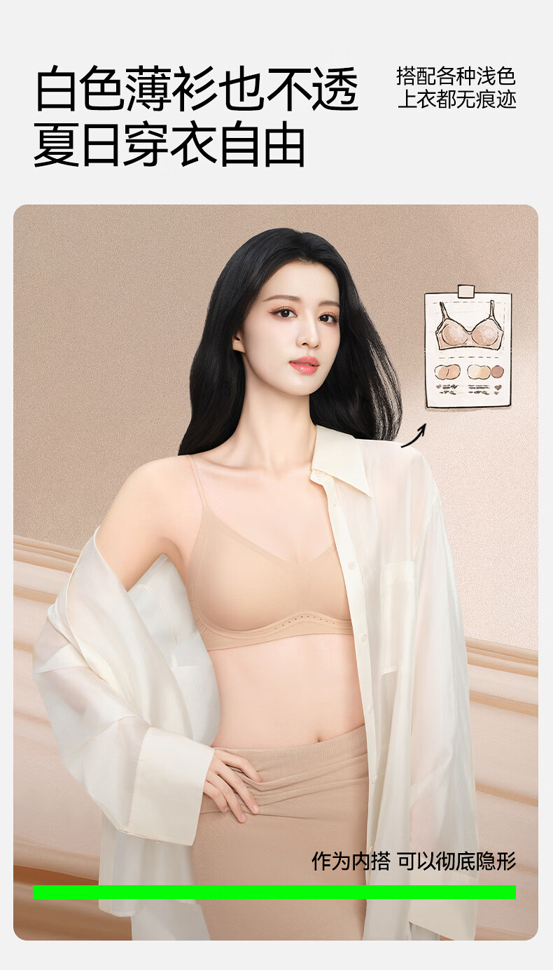 Hello Sunny【王楚然同款】森呼吸文胸罩女士隐形粉底液内衣女款2026新款 【王楚然同款】粉底液隐形肤 M (70C/75AB建议90-110斤)