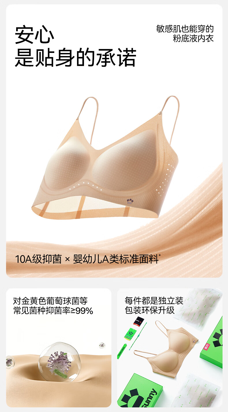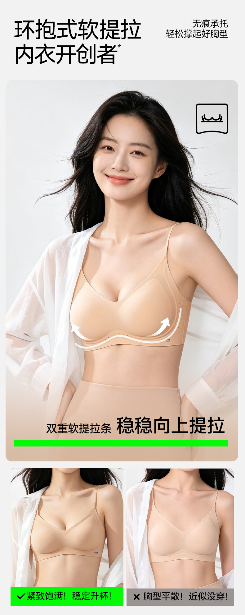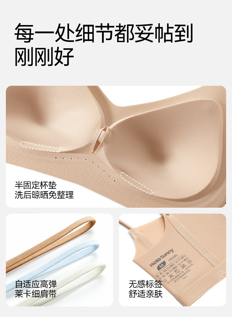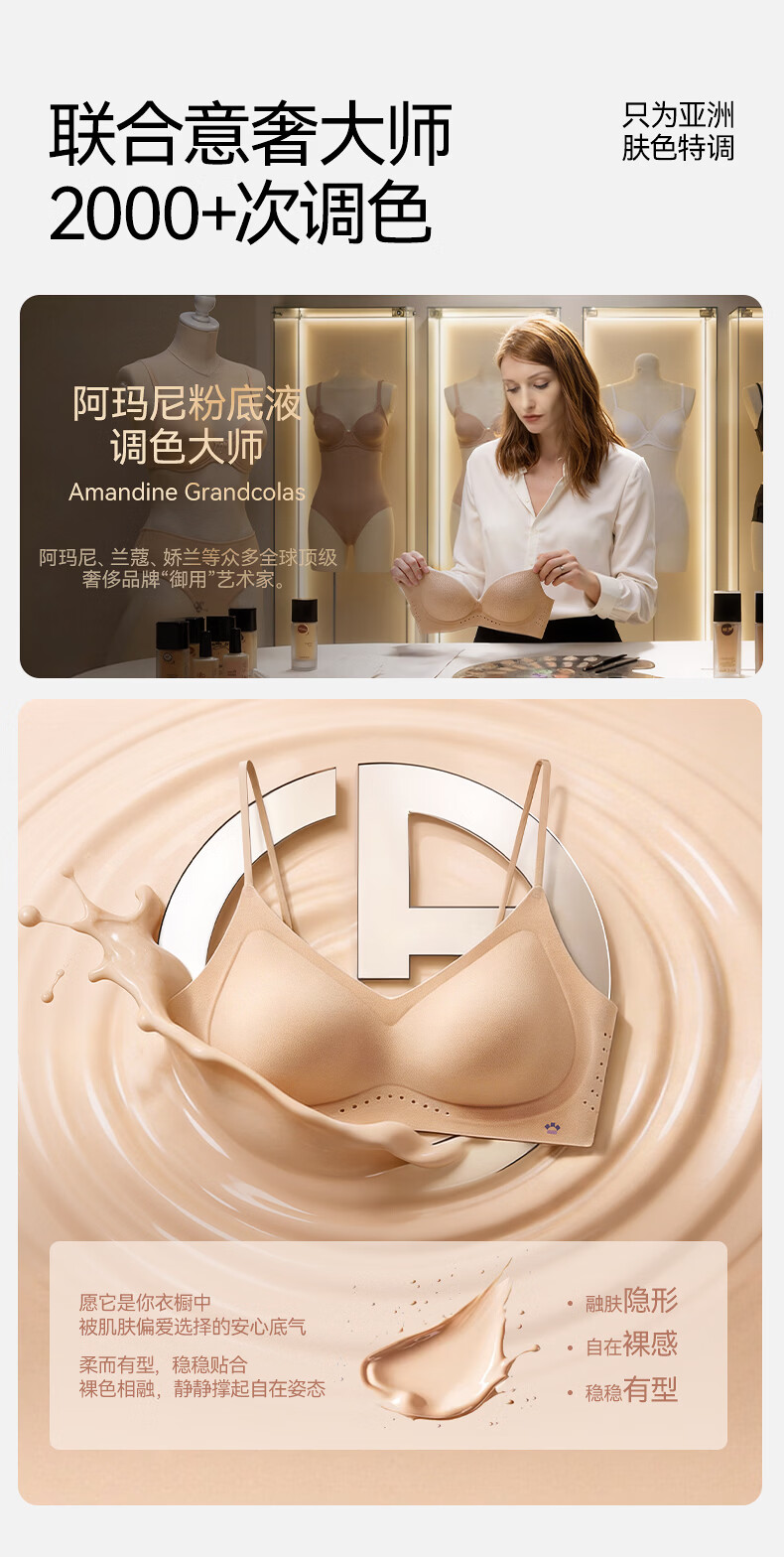 Hello Sunny【王楚然同款】森呼吸文胸罩女士隐形粉底液内衣女款2026新款 【王楚然同款】粉底液隐形肤 M (70C/75AB建议90-110斤)