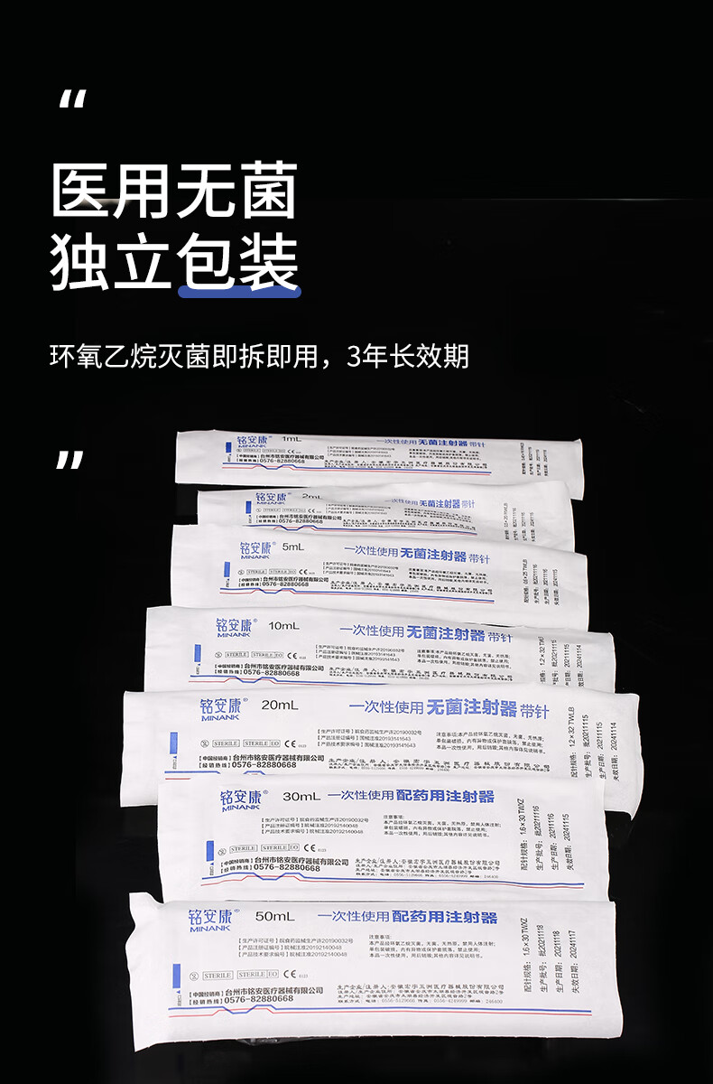铭安康 一次性使用无菌注射器带针针管针筒10mL直口1.2X32TWLB*10支