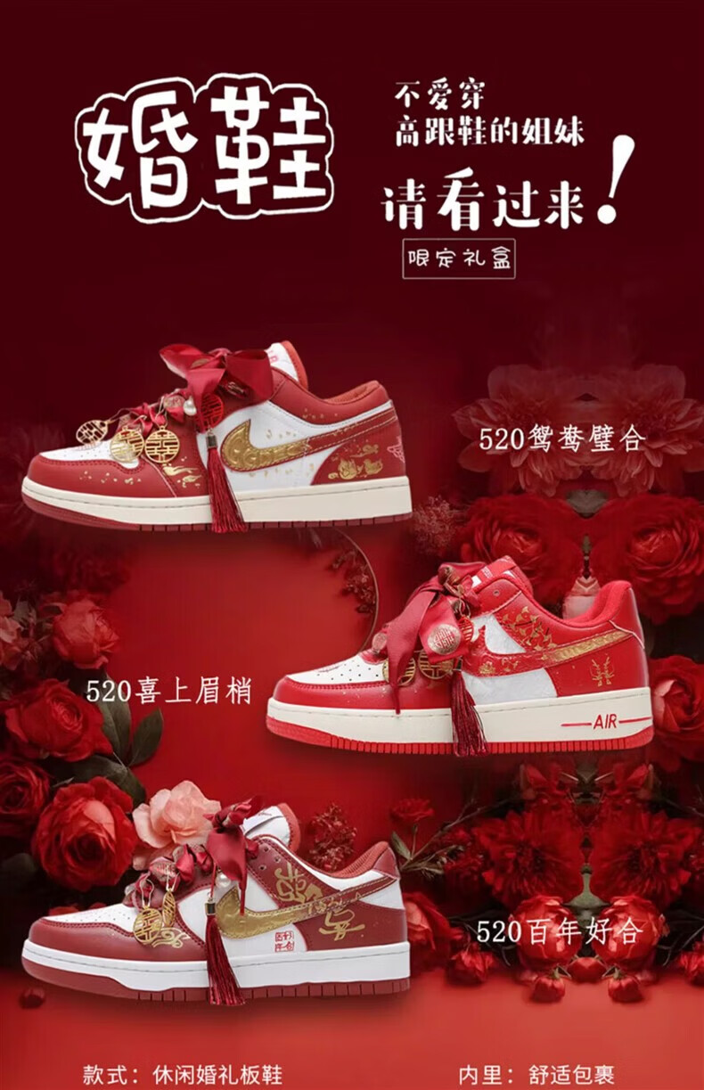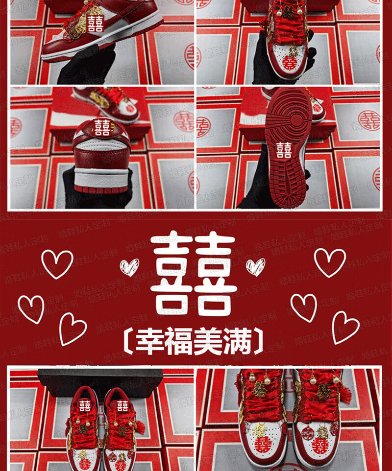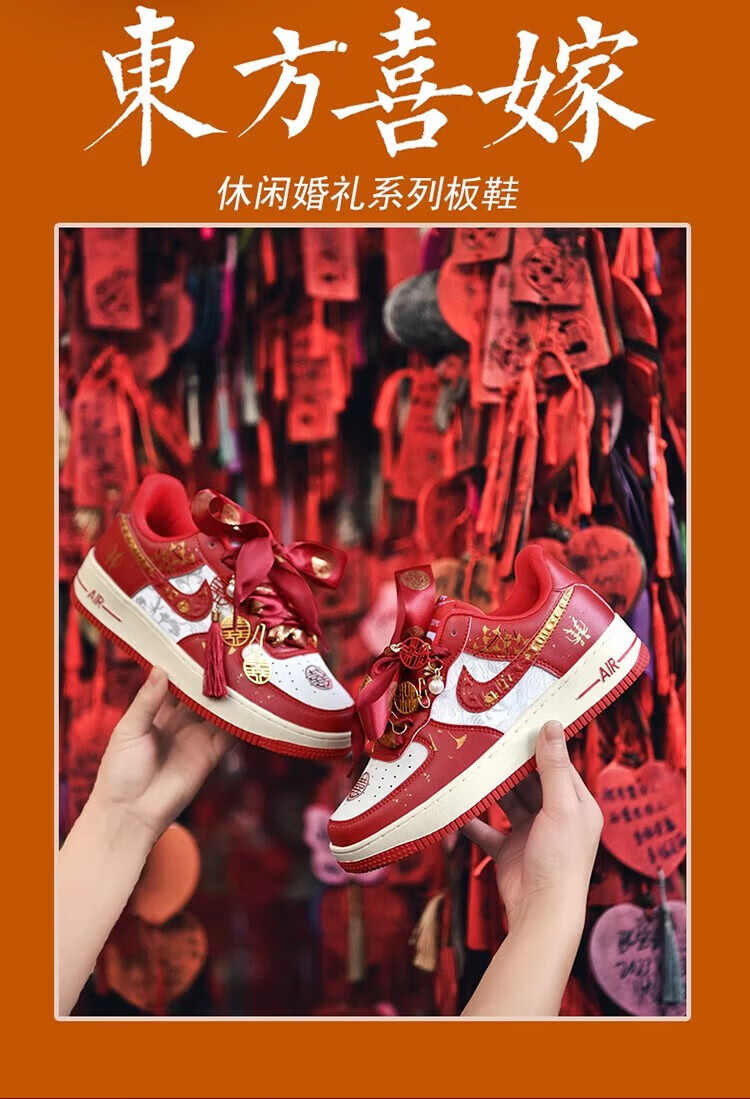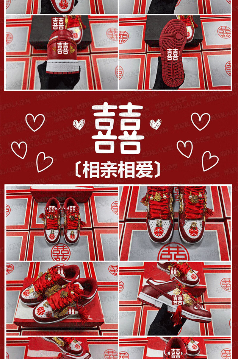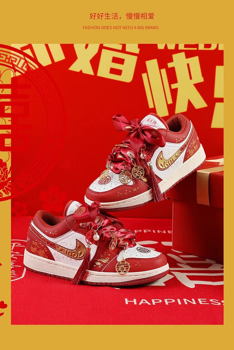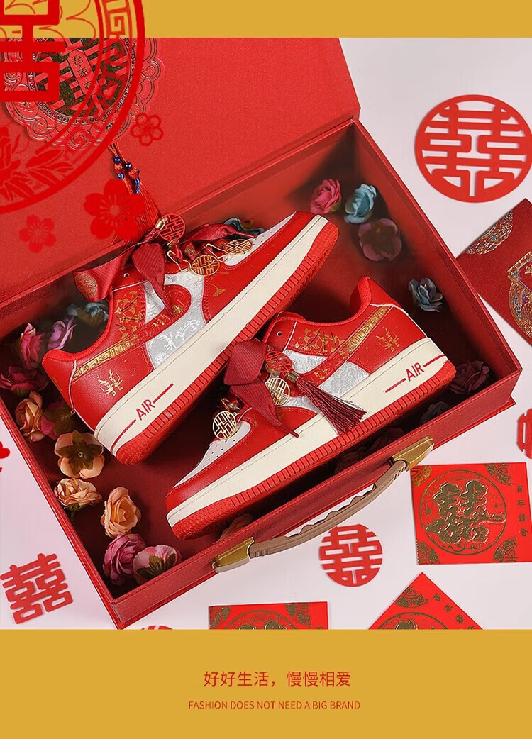 百丽香奈(BAILIXIANGNAI)情侣AJ婚鞋dunk红色秀禾婚鞋女男中式婚礼送老婆送闺蜜新婚礼物 相亲相爱【送喜盒+流苏配饰】 36