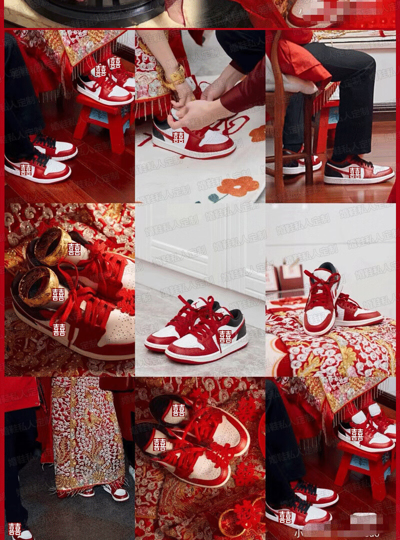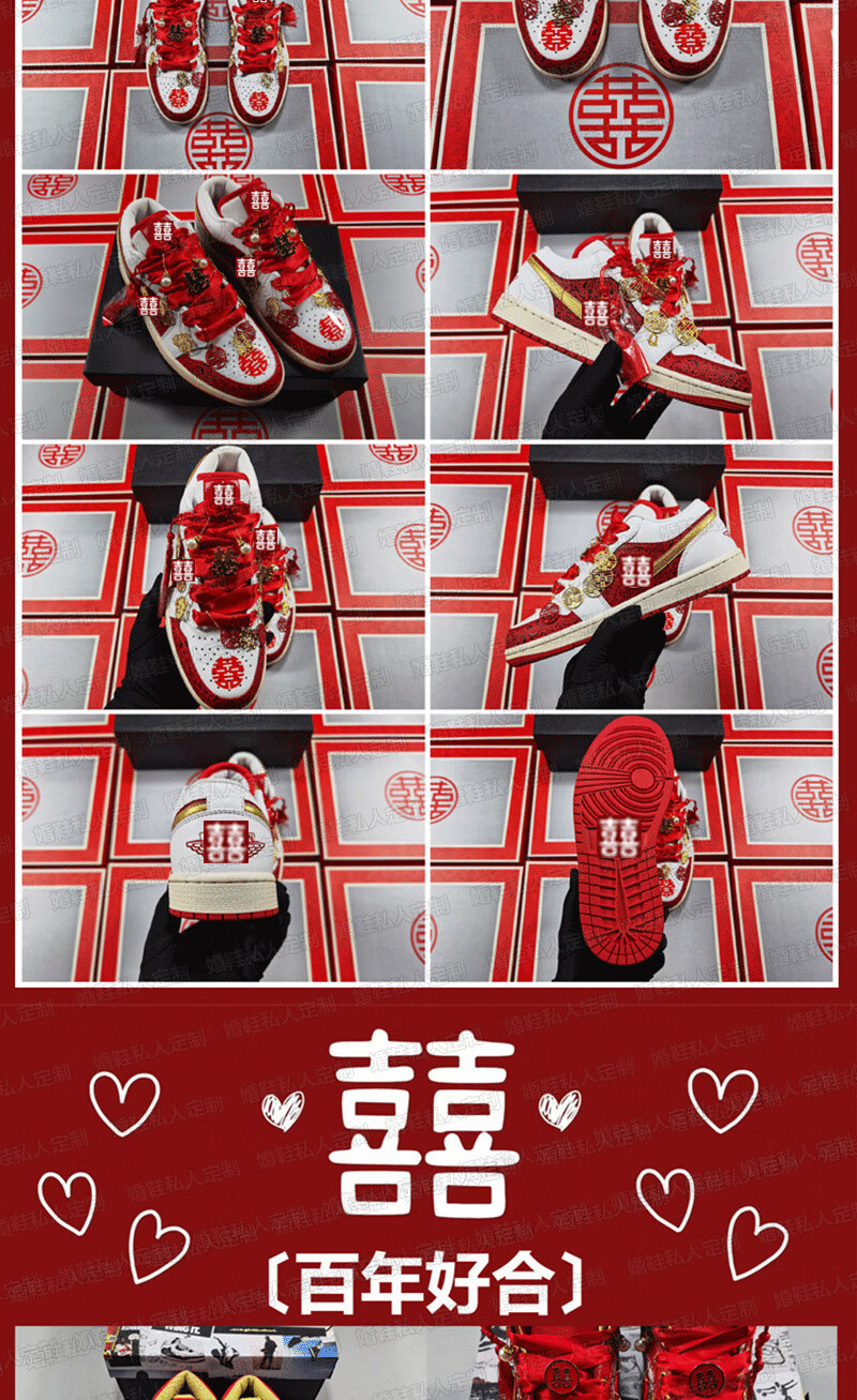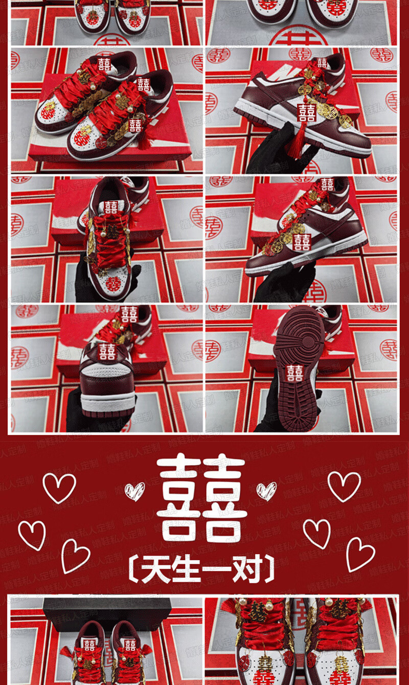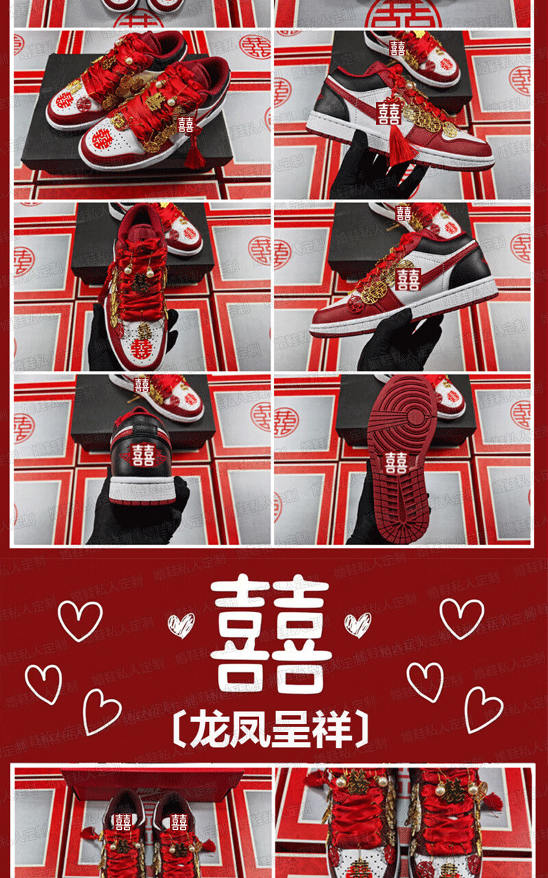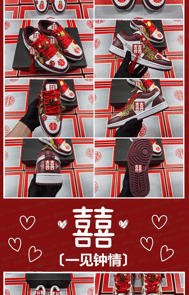 百丽香奈(BAILIXIANGNAI)情侣AJ婚鞋dunk红色秀禾婚鞋女男中式婚礼送老婆送闺蜜新婚礼物 相亲相爱【送喜盒+流苏配饰】 36