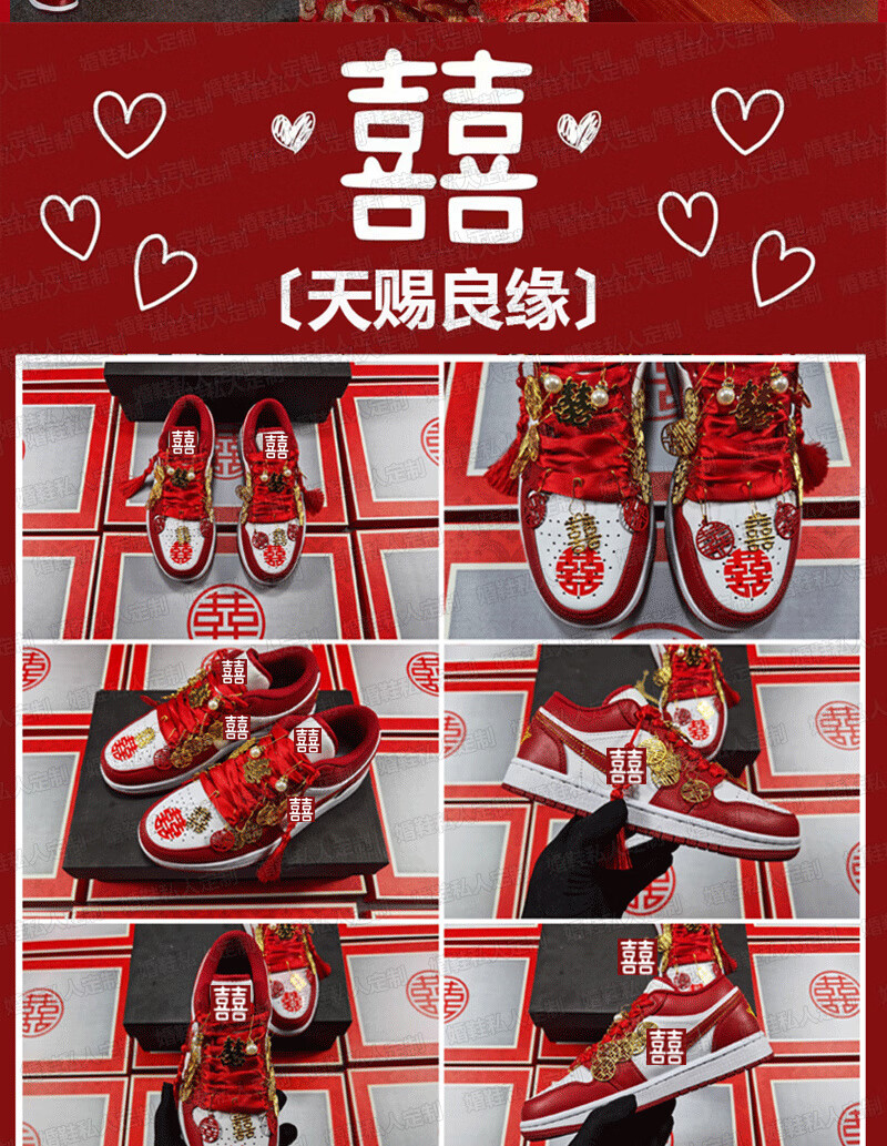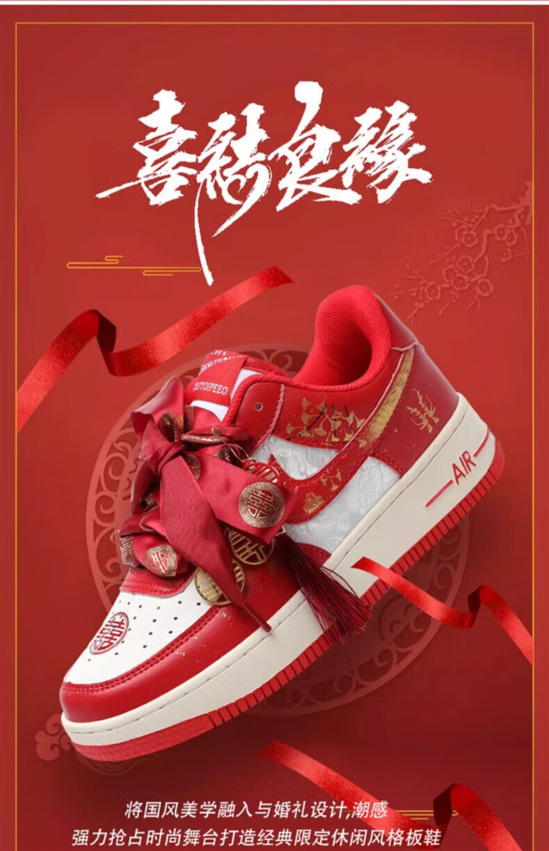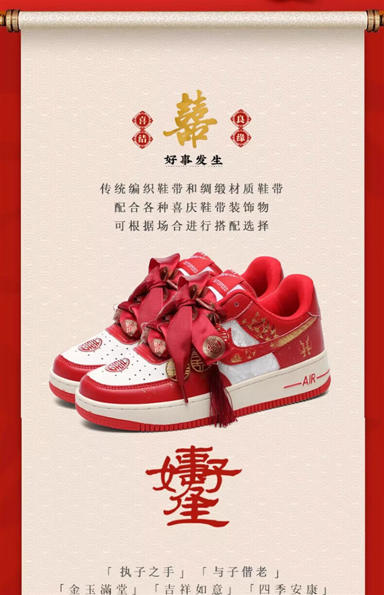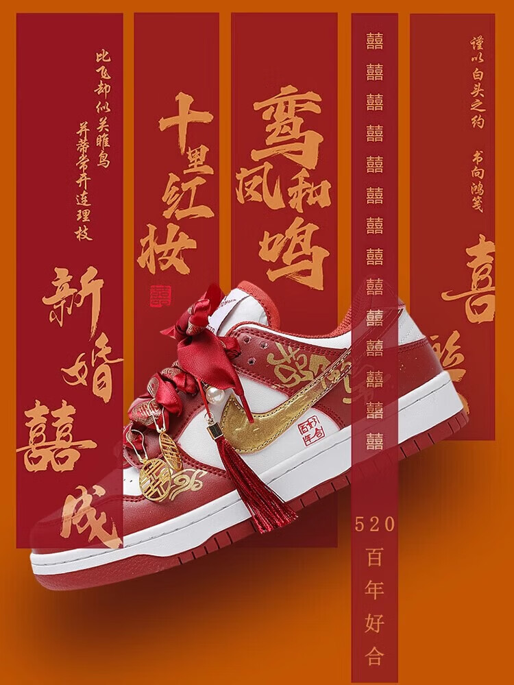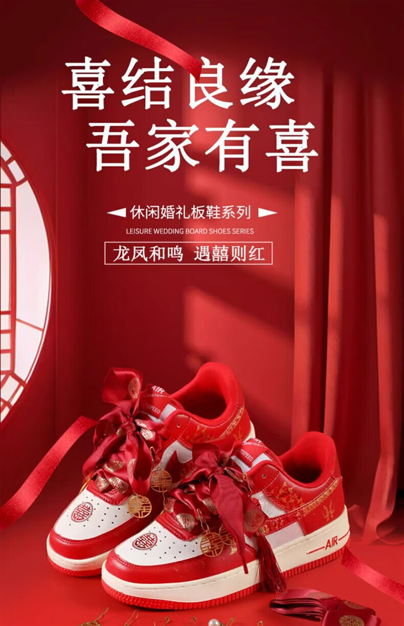 百丽香奈(BAILIXIANGNAI)情侣AJ婚鞋dunk红色秀禾婚鞋女男中式婚礼送老婆送闺蜜新婚礼物 相亲相爱【送喜盒+流苏配饰】 36