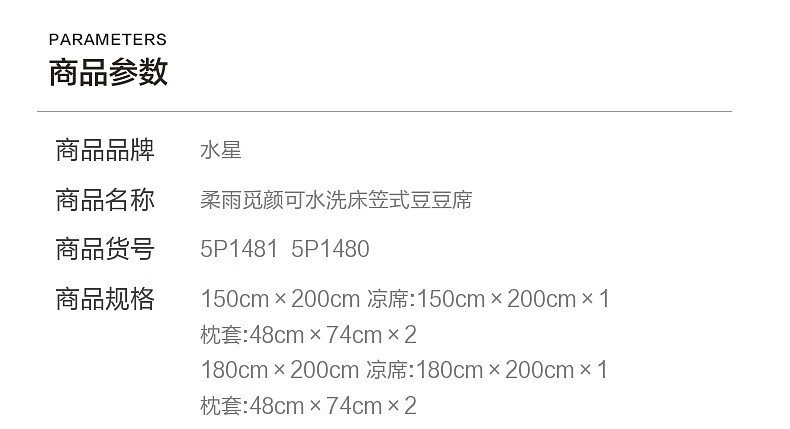 水星家纺柔雨觅颜可水洗床笠式豆豆席 柔雨觅颜可水洗床笠式豆豆席 200cm*150cm