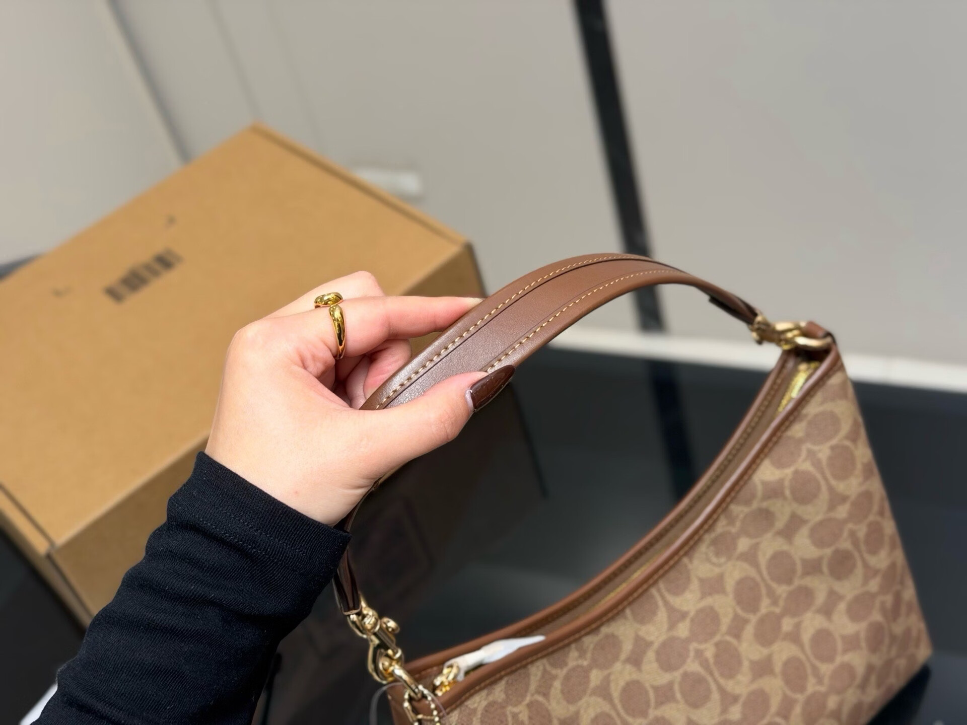 蔻家新款Laurel流浪包经典老花腋下包通勤大容量单肩斜挎托特女包 冰川白31*23*10cm