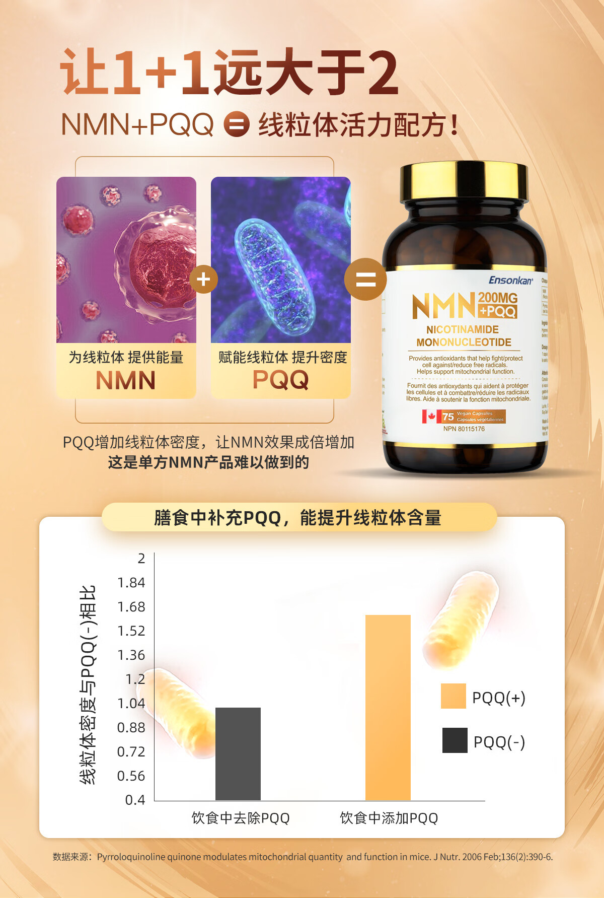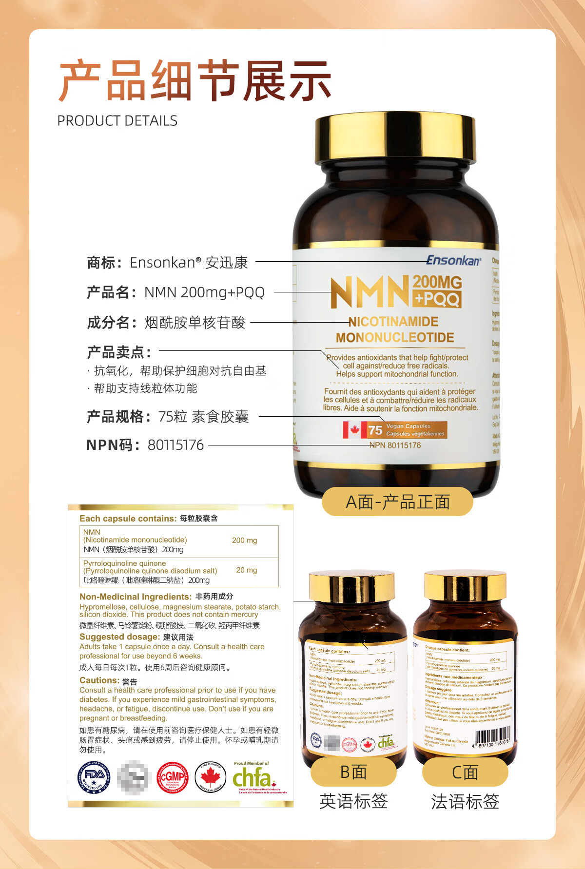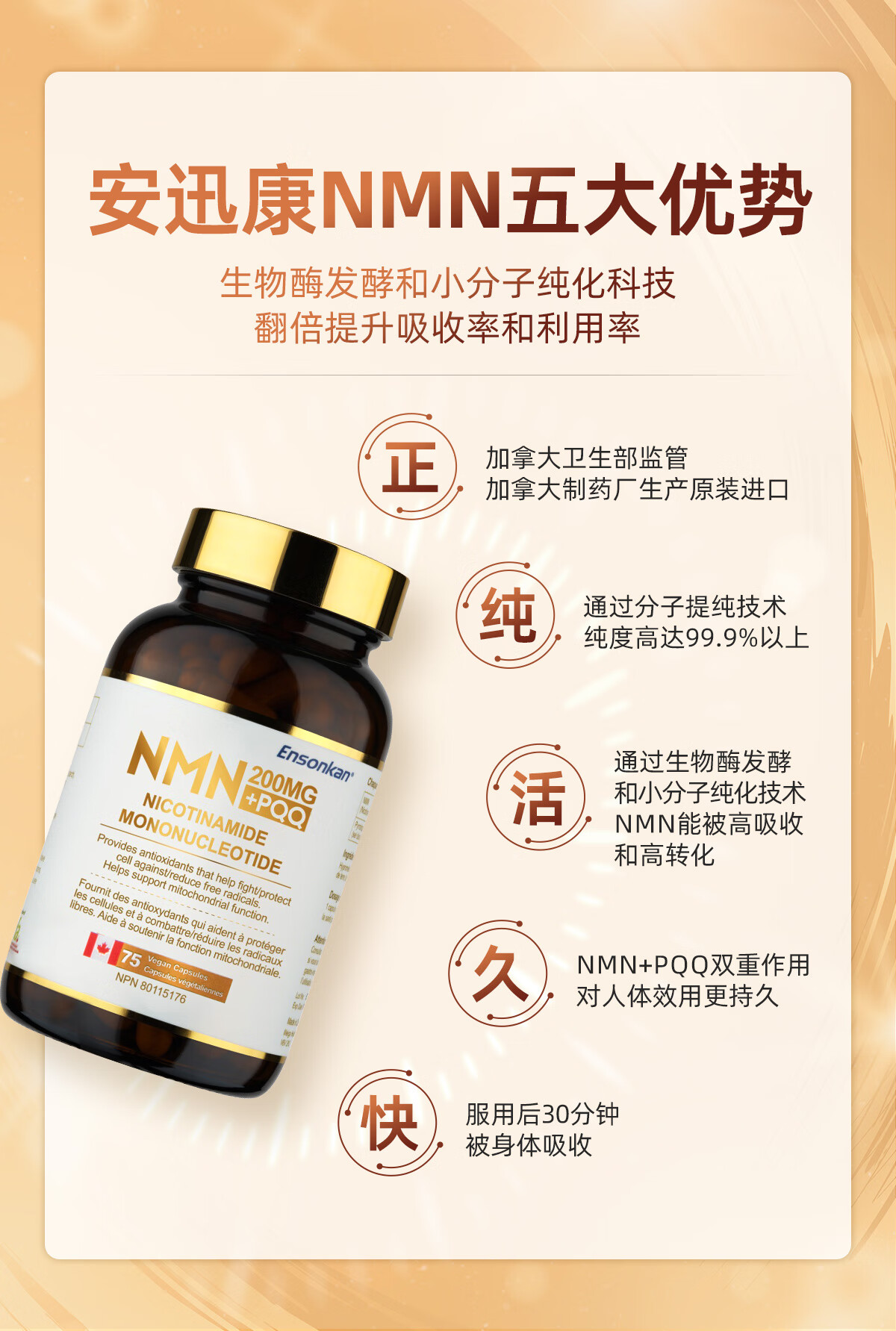 Ensonkan安迅康NMN15000+PQQ胶囊加拿大原装进口β-烟酰胺单核苷酸nad补充 1瓶装【初步调理 日常养护】